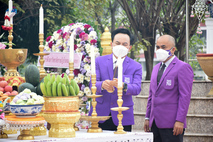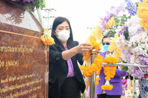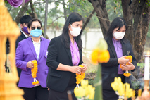 นางกัณณ์อลิน สุอังคะวาทิน ผู้อำนวยการกองกลาง สำนักงานวิทยาเขตสุพรรณบุรี และนางสาวอรทัย อรุโณทัย เจ้าหน้าที่สำนักงานวิทยาเขตสุพรรณบุรี ร่วมวางพวงมาลา ในงานวันคล้ายวันพิราลัยสมเด็จเจ้าพระยาบรมมหาศรีสุริยวงศ์ (ช่วง บุนนาค) ในวันเสาร์ที่ 22 มกราคม 2565 เวลา 08.00-09.30 น. ณ มหาวิทยาลัยราชภัฏบ้านสมเด็จเจ้าพระยา ศูนย์การศึกษาอู่ทองทวารวดี ตำบลสระยายโสม อำเภออู่ทอง จังหวัดสุพรรณบุรี
