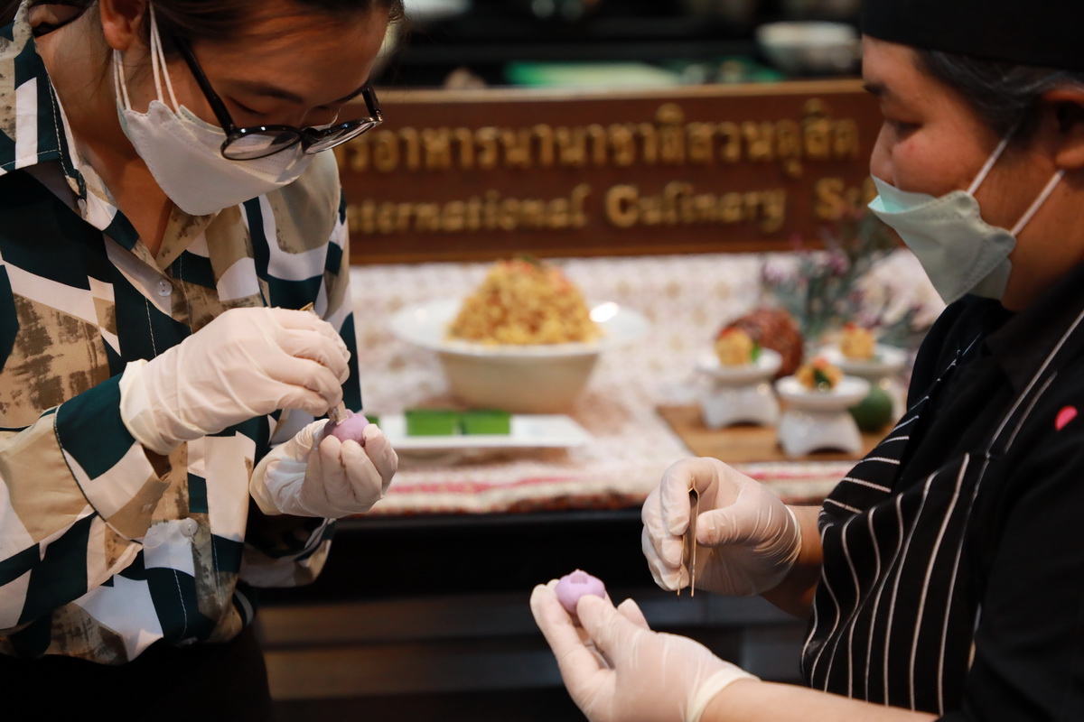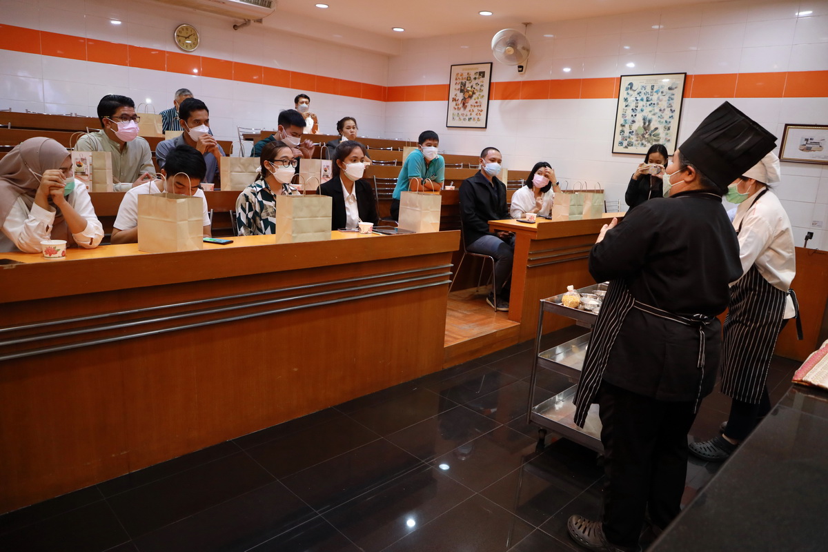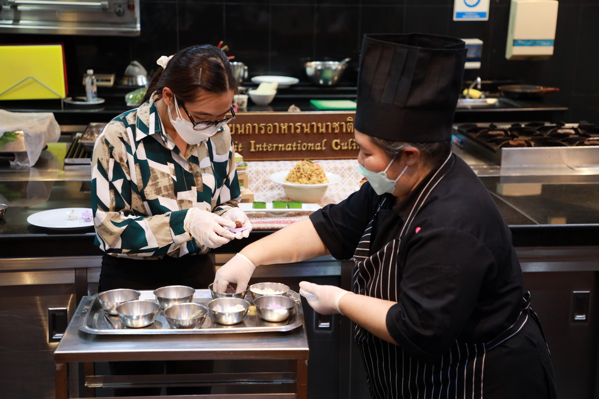 รองศาสตราจารย์ ดร.ชนะศึก นิชานนท์ รองอธิการบดีฝ่ายวิจัยและพัฒนาการศึกษา ว่าที่ร้อยตรี ดร.ธนพัฒน์ แสงรุ่งเรือง คณบดีโรงเรียนการเรือนและดร.จันทร์จนา ศิริพันธ์วัฒนา ผู้จัดการสวนดุสิตโฮมเบเกอรี่  ให้การต้อนรับผู้บริหารจากสำนักงานพัฒนาวิทยาศาสตร์และเทคโนโลยีแห่งชาติ (สวทช.) และคณะทำงานของเมืองนวัตกรรมอาหาร มหาวิทยาลัยสงขลานครินทร์  ในโอกาสเข้ามาศึกษาดูงานและฟังบรรยายเกี่ยวกับการบริหารจัดการทรัพยากรที่เกี่ยวกับการแปรรูปอาหารและการพัฒนาระบบนวัตกรรมสำหรับอุตสาหกรรมอาหารไทย พร้อมทั้งเยี่ยมชมศูนย์ปฏิบัติการอาหารนานาชาติ อาคาร 10,12 สวนดุสิตโฮมเบเกอรี่และเยี่ยมชมร้านกาแฟภายในมหาวิทยาลัยสวนดุสิต วันที่ 24 มกราคม 2565