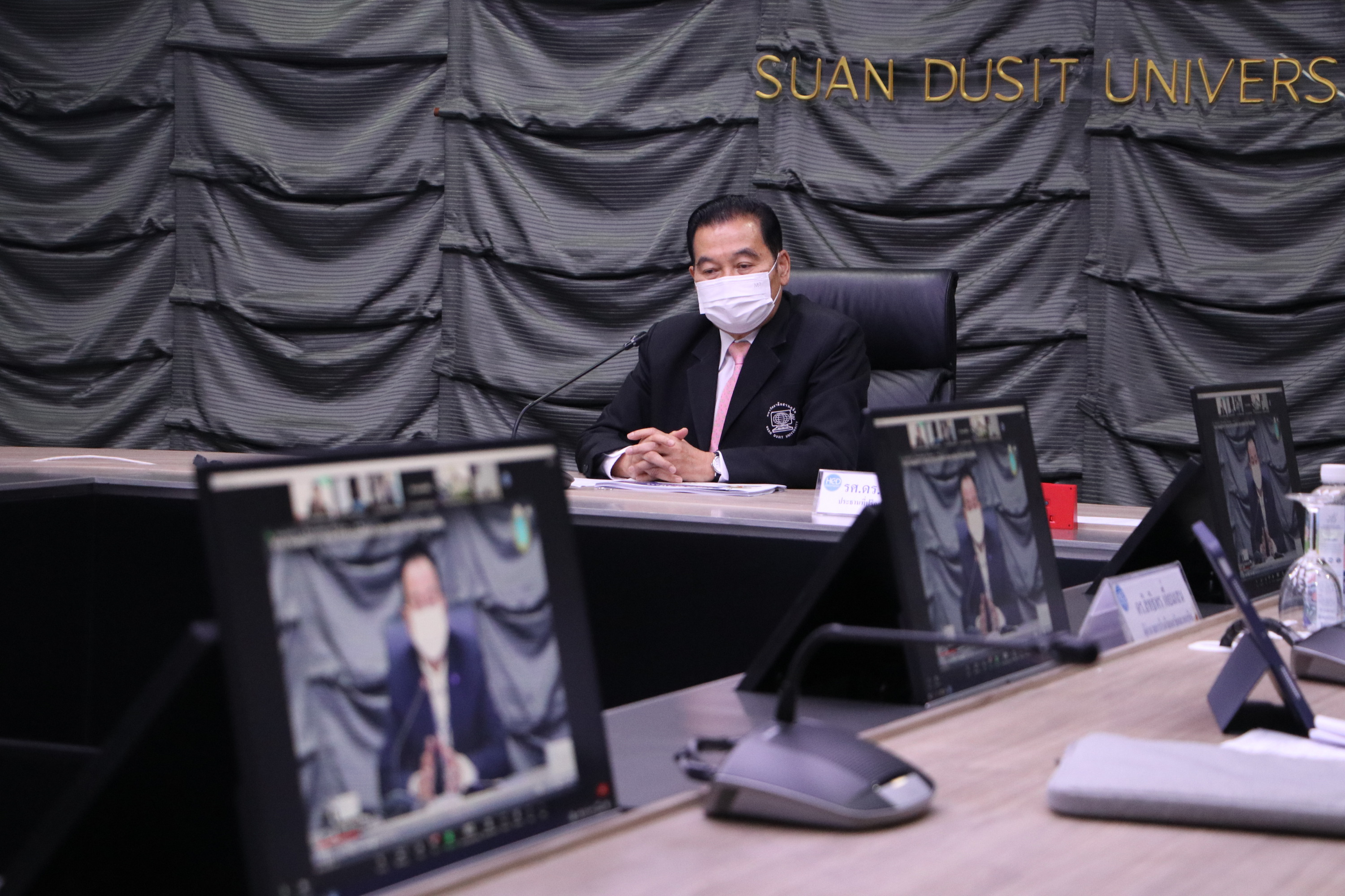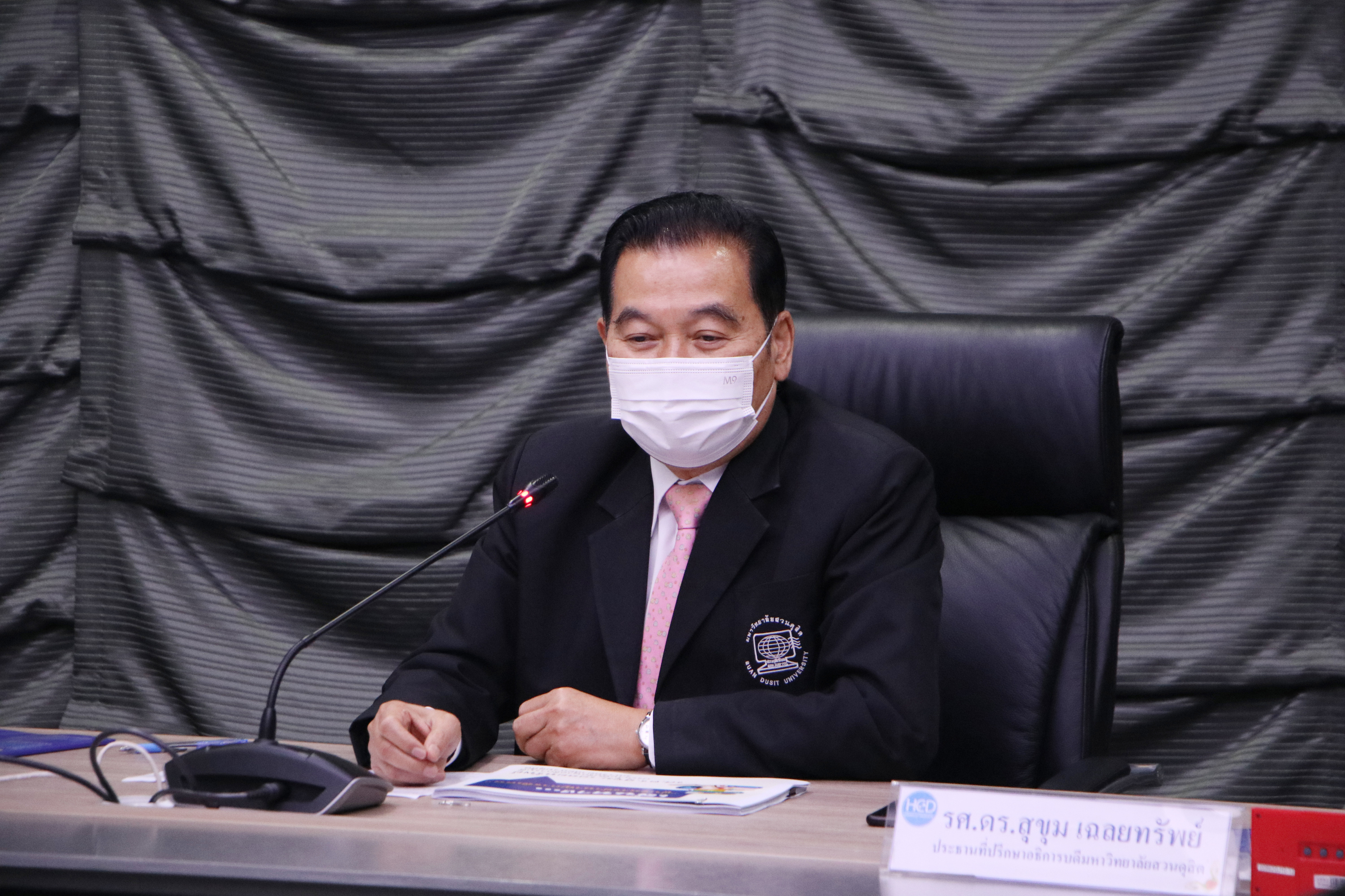 รศ.ดร.ศิโรจน์ ผลพันธิน อธิการบดีมหาวิทยาลัยสวนดุสิต ให้เกียรติเป็นประธานเปิดการอบรมพร้อมบรรยายพิเศษในหัวข้อ  “ภาษากายกับผู้บริหาร” โดยมีความสำคัญตอนหนึ่งว่า การพัฒนาบุคลิกและกิริยามารยาท เป็นการสื่อสารรูปแบบหนึ่งนอกเหนือจากการสื่อสารทั่วไป  ผู้บริหารจึงต้องสื่อสาร ไปยังผู้ปฏิบัติได้อย่าง ถูกต้อง ชัดเจน โดยผู้บริหาร ต้องฝึก 2 ส่วน  คือ