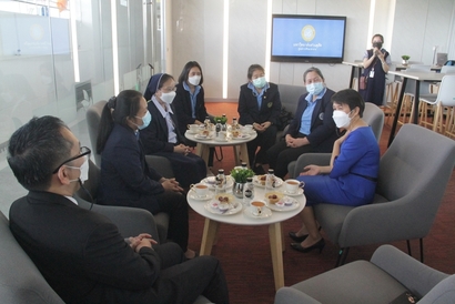 ดร.ขวัญนภา สุขคร พร้อมด้วยคณะผู้บริหาร คณาจารย์และนักศึกษา ร่วมต้อนรับผู้บริหาร คณาจารย์ และนักเรียน โรงเรียนเรยีนาเชลีวิทยาลัย จ.เชียงใหม่ ในโอกาสเข้าศึกษาดูงาน ณ ศูนย์การศึกษา ลำปาง มหาวิทยาลัยสวนดุสิต ณ ห้องเฟื่องฟ้า สกายเลาจ์ ชั้น 5 อาคารธุรกิจการบิน โดยได้พาเยี่ยมชมสถานที่ ห้องปฏิบัติการการบิน (Mock up) ห้องปฏิบัติการวิทยาศาสตร์ ห้องปฏิบัติการคอมพิวเตอร์ ห้อง SDU ONLINE ศูนย์ส่งเสริมการเรียนรู้ทางการศึกษาปฐมวัย ห้องปฏิบัติการอาหารนานาชาติและเบเกอรี่ หอพักนักศึกษา และศูนย์สุขภาพเพื่อส่งเสริมสมรรถนะทางกายสำหรับนักเรียน ประชาชนทั่วไป รวมทั้งหารือการลงนามความร่วมมือ MoU ทางวิชาการในการพัฒนานักเรียนร่วมกันระหว่างผู้บริหารโรงเรียนเรยีนาเชลีวิทยาลัย จ.เชียงใหม่ และผู้บริหาร คณาจารย์จากศูนย์ฯ ลำปาง วันจันทร์ที่ 18 กรกฎาคม 2565