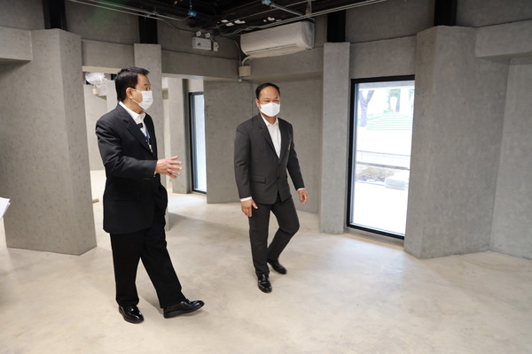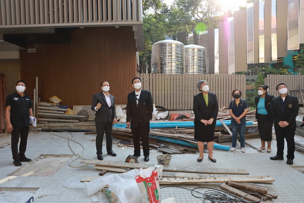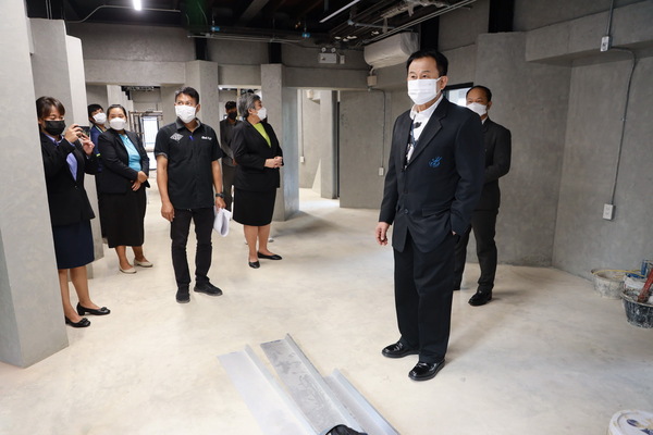 รศ.ดร.ศิโรจน์ ผลพันธิน อธิการบดีมหาวิทยาลัยสวนดุสิต พร้อมด้วย นายพรรษวัชร อุดมเสฏฐ์ชัย ผู้อำนวยการกองอาคารและสถานที่ ตรวจเยี่ยมและติดตามความคืบหน้าการ ปรับปรุงอาคารศูนย์ศิลปวัฒนธรรมให้เป็นพื้นที่จัดการเรียนรู้สำหรับเด็กผ่านกิจกรรมด้านศิลปะ ดนตรี และลีลา วันพุธที่ 22 กุมภาพันธ์ 2566