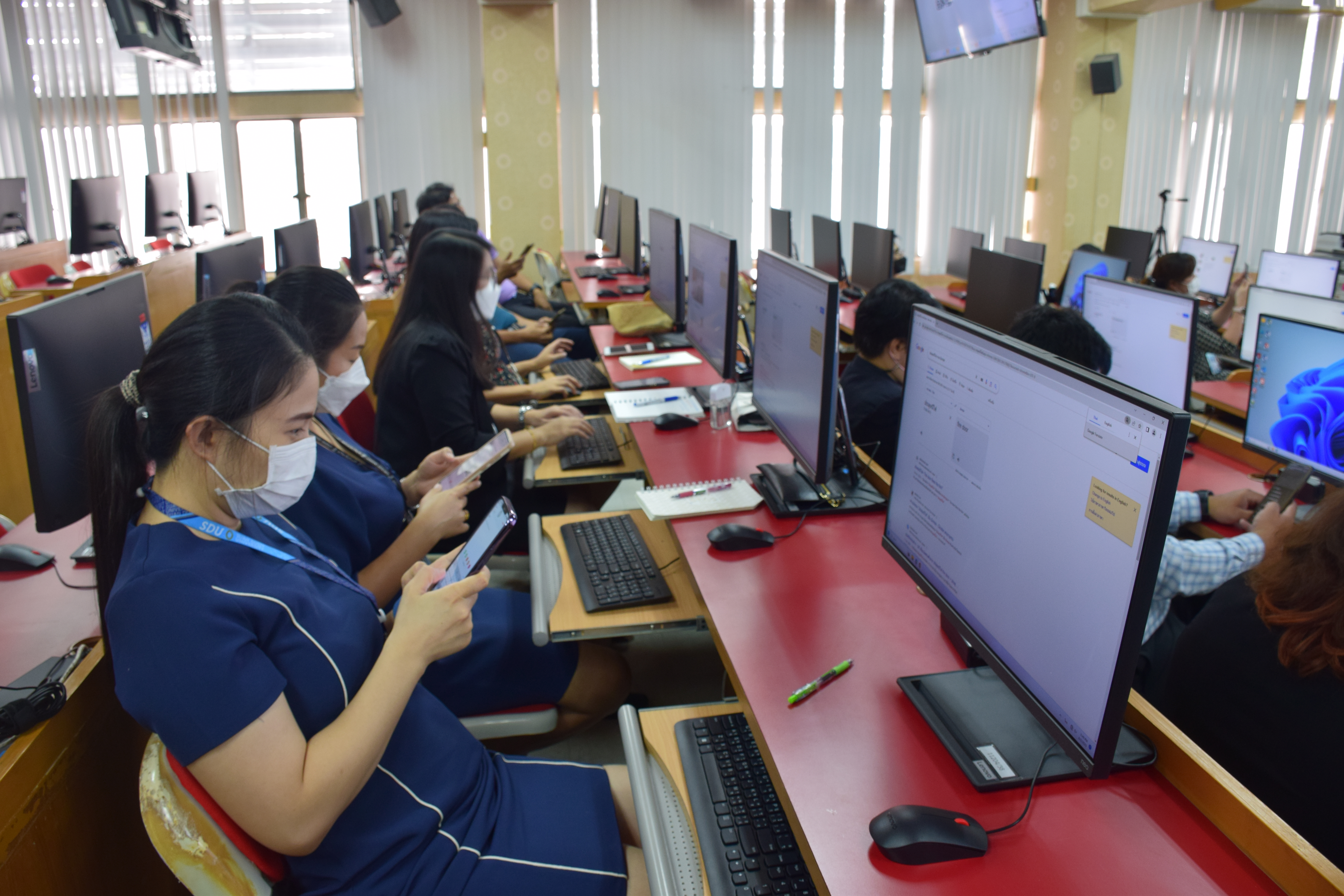 ฝ่ายงานการจัดการความรู้ คณะครุศาสตร์ จัดโครงการการจัดการความรู้ ปี 2566 กิจกรรมที่ 3 “การพัฒนาทักษะภาษาอังกฤษในการปฏิบัติงานโดยใช้แอปพลิเคชัน” จัดอบรมให้กับบุคลากรสายสนันสนุนและบุคลากรที่สนใจ ได้รับเกียรติจาก ผศ.อัษฎา พลอยโสภณ รองคณบดีฝ่ายบริหารและกิจการนักศึกษา โดยมีวิทยากร ผศ.ดร.เอมมิกา วชิระวินท์ ดร.สินชัย จันทร์เสม ผศ.ดร.ชนินทร์ ฐิติเพชรกุล ดร.อนุชา แข่งขัน และทีมงาน เมื่อวันศุกร์ที่ 2 มิถุนายน 2566 เวลา 13.00 – 15.00 น. ณ ห้อง 11204 อาคาร 11 ชั้น 2