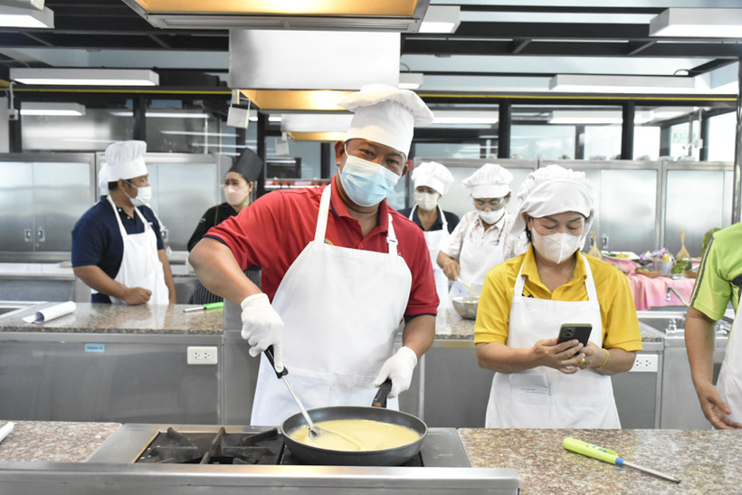 ผู้ช่วยศาสตราจารย์ พรทวี ธนสัมบัณณ์ ผู้ประสานงานหลักสูตรวิทยาศาสตรบัณฑิต สาขาวิชาเทคโนโลยีการประกอบอาหารและการบริการ มหาวิทยาลัยสวนดุสิต วิทยาเขตสุพรรณบุรี กล่าวต้อนรับผู้เข้าร่วมการอบรมโครงการ การพัฒนาผลิตภัณฑ์แปรรูปสินค้าเกษตรจากพืชเศรษฐกิจสำคัญจังหวัดสุพรรณบุรี” ในกิจกรรมที่ 4 การพัฒนาผลิตภัณฑ์แปรรูปสินค้าเกษตรจากพืชเศรษฐกิจสำคัญจังหวัดสุพรรณบุรี ประกอบด้วยกลุ่มเกษตรกร วิสาหกิจชุมชน และผู้ประกอบการในพื้นที่จังหวัดสุพรรณบุรี และผู้ที่สนใจ โดยผู้ช่วยศาสตราจารย์ บุญญาพร เชื่อมสมพงษ์ อาจารย์ผู้รับผิดชอบหลักสูตร  เป็นผู้สาธิตและแบ่งกลุ่มผู้เข้าร่วมโครงการ ได้ปฏิบัติการจริงในการแปรรูปมะม่วงสุกเป็นเมนู อาลัวมะม่วง ในวันศุกร์ที่ 7 กรกฎาคม 2566 เวลา 09.00-12.00 น. ณ ห้องปฏิบัติการอาหาร ห้อง 5405 ชั้น 4 อาคารแววเที่ยงธรรม มหาวิทยาลัยสวนดุสิต วิทยาเขตสุพรรณบุรี