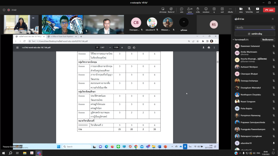 ผู้ช่วยศาสตราจารย์ ดร.กัลยา ชนะภัย ประธานหลักสูตรศึกษาศาสตรบัณฑิต สาขาวิชาการประถมศึกษา เป็นประธานการประชุม หลักสูตรฯ ประจำเดือนกรกฎาคม 2566 ครั้งที่ 7/2566 โดยมีคณาจารย์หลักสูตรศึกษาศาสตรบันทิต สาขาวิชาการประถมศึกษา ในมหาวิทยาลัย วิทยาเขตสุพรรณบุรี ศูนย์การศึกษา นครนายก และศูนย์การศึกษา ลำปาง เข้าร่วมประชุม เมื่อวันพฤหัสบดีที่ 20 กรกฎาคม 2566 เวลา 09.30 – 12.00 น. ณ ห้องประชุม Online Learning 10 อาคาร 4 ชั้น 3 คณะครุศาสตร์ และผ่านระบบ Microsoft Teams