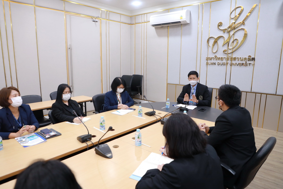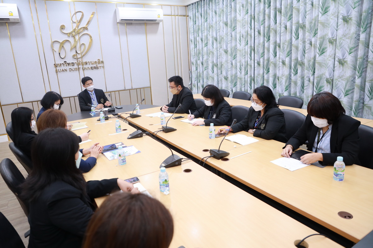 ดร.สุทัน มุมแดง ผู้อำนวยการสำนักกิจการพิเศษ ประชุมเชื่อมโยงการดำเนินงาน ร่วมกับ ดร.ณัฐพล แย้มฉิม ประธานดำเนินงานสวนดุสิตโพล มหาวิทยาลัยสวนดุสิต และผู้เกี่ยวข้อง เพื่อหารือในประเด็นเรื่องการจัดทำแบบสำรวจความคิดเห็น และความพึงพอใจของผู้รับบริการหน่วยงานในกำกับสำนักกิจการพิเศษ รวมถึงการวิเคราะห์ข้อมูลเพื่อการตัดสินใจสำหรับการบริหารจัดการหน่วยงาน ณ ห้องประชุม 1119 อาคาร 1 มหาวิทยาลัยสวนดุสิต เมื่อวันที่ 1 กันยายน 2566
