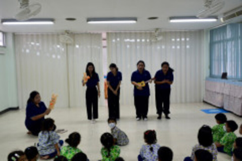 หลักสูตรศึกษาศาสตรบัณฑิต สาขาวิชาการศึกษาปฐมวัย จัดโครงการบูรณาการ “ร้องและเล่านิทานสำหรับเด็กปฐมวัย” จากการบูรณาการรายวิชานิทานและวรรณกรรมภาษาอังกฤษสำหรับเด็กปฐมวัย และรายวิชาดนตรีสำหรับครูปฐมวัย โดยมี ผู้ช่วยศาสตราจารย์นิศารัตน์ อิสระมโนรส และผู้ช่วยศาสตราจารย์อัษฎา พลอยโสภณ เป็นอาจารย์ผู้สอนและนำนักศึกษาระดับชั้นปีที่ 2 เข้าจัดโครงการ เพื่อให้นักศึกษาได้ฝึกปฎิบัติการเล่นดนตรี และการเล่านิทานสำหรับเด็กปฐมวัย ณ ศูนย์พัฒนาเด็กก่อนวัยเรียนพิทักษา เมื่อวันศุกร์ที่ 6 ตุลาคม 2566