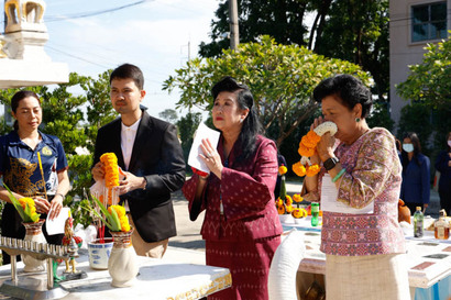 มหาวิทยาลัยสวนดุสิต วิทยาเขตสุพรรณบุรี นำโดย ดร.วรานี เวสสุนทรเทพ รองอธิการบดีฝ่ายวิทยาเขตสุพรรณบุรี ร่วมกับ รองศาสตราจารย์พัชรี สวนแก้ว รองอธิการบดีฝ่ายกิจการนักศึกษา รองศาสตราจารย์ ดร.ชนะศึก นิชานนท์ รองอธิการบดีฝ่ายวิจัยและพัฒนาการศึกษา พร้อมทั้งผู้บริหาร คณาจารย์ และเจ้าหน้าที่วิทยาเขตสุพรรณบุรี ร่วมกิจกรรมไหว้ศาลหลวงปู่ชัยมงคล เพื่อความเป็นสิริมงคลในการดำเนินงานในด้านต่าง ๆ ในอังคารที่ 7 พฤศจิกายน 2566 เวลา 09.09 น. ณ ศาลหลวงปู่ชัยมงคล มหาวิทยาลัยสวนดุสิต วิทยาเขตสุพรรณบุรี