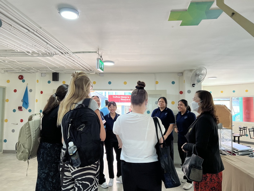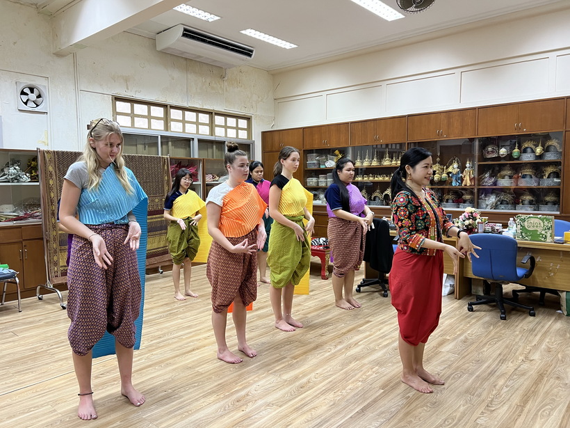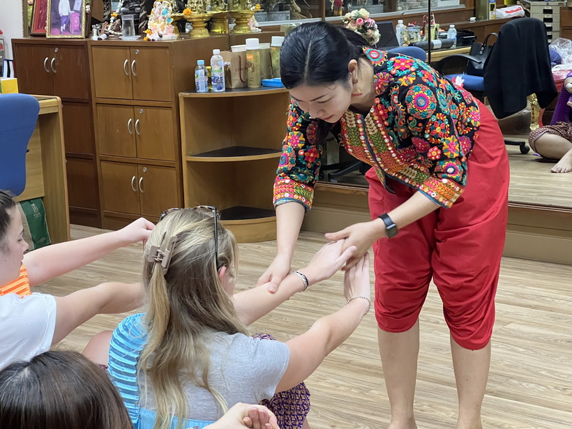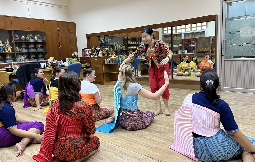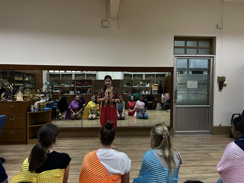 เมื่อวันพุธที่ 17 มกราคม 2567 เวลา 13.00 – 15.00 น. ผศ.นิศารัตน์ อิสระมโนรส รองคณบดีฝ่ายวิชาการและการประกันคุณภาพ และดร.ปุณยวีร์ จิโรภาสวรพงศ์ ผู้ช่วยคณบดี คณะครุศาสตร์ ได้นำนักศึกษาสาขาวิชาการศึกษาปฐมวัย ในโครงการแลกเปลี่ยนจาก Liverpool John Moores University ซึ่งมาฝึกสอนอยู่ที่โรงเรียนสาธิตละอออุทิศ ไปเรียนรู้ศิลปวัฒนธรรมไทยในกิจกรรมรำไทย ร่วมกับนักศึกษาหลักสูตรศึกษาศาสตรบัณฑิต สาขาวิชาการศึกษาปฐมวัย โดยมี ผศ.ดร.วรกมล วงษ์สถาปนาเลิศ อาจารย์ประจำหลักสูตรภาษาและการสื่อสาร คณะมนุษยศาสตร์และสังคมศาสตร์ เป็นวิทยากร ในการนี้ ผศ.อัษฎา พลอยโสภณ รองคณบดีฝ่ายบริหารและกิจการนักศึกษา คณะครุศาสตร์ให้เกียรติมอบของที่ระลึกให้วิทยากร