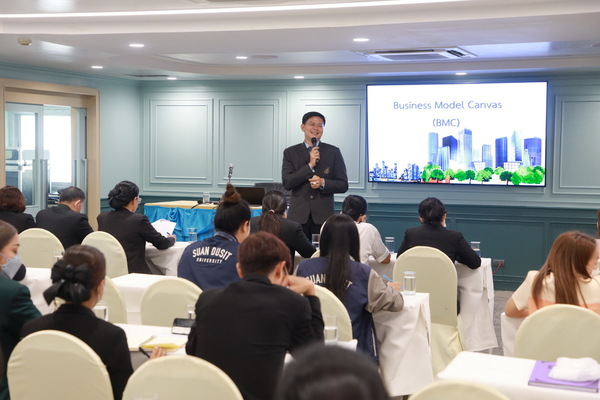 สำนักกิจการพิเศษ มหาวิทยาลัยสวนดุสิต จัดประชุมเชิงปฏิบัติการการจัดทำแผนกลยุทธ์ด้วย Business Model Canvas (BMC) โดยมี ดร.สุทัน มุมแดง ผู้อำนวยการสำนักกิจการพิเศษ เป็นวิทยากรบรรยาย และฝึกปฏิบัติ “แนวทางการใช้ BMC กับธุรกิจวิชาการ” ให้กับหน่วยงานในกำกับสำนักกิจการพิเศษ และบุคลากรสำนักงานมหาวิทยาลัย ในการนี้ ผศ.ดร.พิทักษ์ จันทร์เจริญ รองอธิการบดีฝ่ายบริหาร พร้อมด้วย ว่าที่ร้อยตรี ดร.วราธร อภิรัตน์ ผู้อำนวยการสำนักงานมหาวิทยาลัย เข้าร่วมสังเกตการณ์ ณ ห้องประชุมกาหลา โรงแรม สวนดุสิต เพลส วันที่ 26 มีนาคม 2567