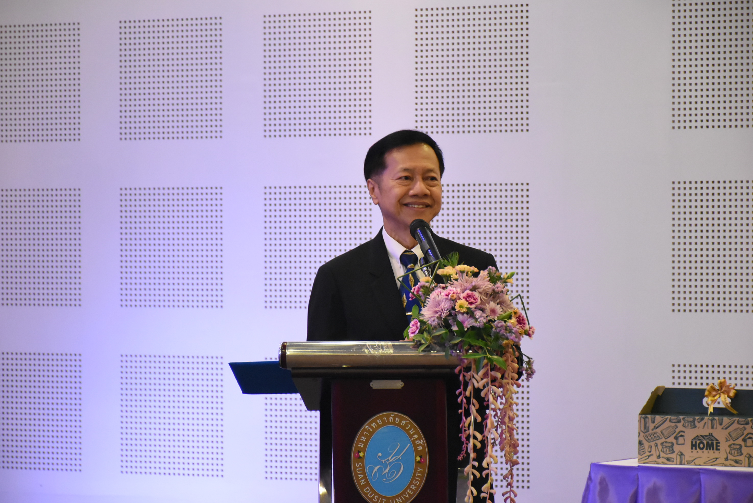 วันศุกร์ที่ 21 มิถุนายน 2567 เวลา 08.30 – 15.00 น. ณ ห้องประชุมพวงเงิน อาคารจันทร์เจริญ ชั้น 2 มหาวิทยาลัยสวนดุสิต วิทยาเขตสุพรรณบุรี โดย รองศาสตราจารย์ ดร.ชนะศึก นิชานนท์ รองอธิการบดีฝ่ายวิจัยและพัฒนาการศึกษา ในฐานะผู้อำนวยการศูนย์ประสานงาน อพ.สธ. – มหาวิทยาลัยสวนดุสิต กล่าวรายงาน ซึ่งได้รับเกียรติจาก ผู้ช่วยศาสตราจารย์ ดร.พิทักษ์ จันทร์เจริญ รองอธิการบดีฝ่ายบริหาร มหาวิทยาลัยสวนดุสิต กล่าวถึงความสำคัญของการขับเคลื่อนโครงการอนุรักษ์พันธุกรรมพืชอันเนื่องมาจากพระราชดำริฯ มหาวิทยาลัยสวนดุสิต และดร.ธีร์ ภวังคนันท์ รองเลขาธิการคณะกรรมการการศึกษาขั้นพื้นฐาน เป็นประธานและบรรยายพิเศษ หัวข้อ บทบาทของโรงเรียนเพื่อสนองพระราชดำริโครงการอนุรักษ์พันธุกรรมพืชอันเนื่องมาจากพระราชดำริฯ (อพ.สธ.) : งานสวนพฤกษศาสตร์โรงเรียน และได้รับเกียรติจาก ดร.ปิยรัษฎ์ ปริญญาพงษ์ เจริญทรัพย์ ผู้ช่วยผู้อำนวยการ อพ.สธ. บรรยายใน หัวข้อ แนวทางการดำเนินงานสวนพฤกษศาสตร์โรงเรียน สนองพระราชดำริโครงการอนุรักษ์พันธุกรรมพืชอันเนื่องมาจากพระราชดำริฯ (อพ.สธ.) และดำเนินรายการเสวนา การดำเนินงานของสวนพฤกษ์ศาสตร์โรงเรียน โดยมี ผู้เข้าร่วมสัมมนาได้แก่ โรงเรียนสาธิตละอออุทิศ และโรงเรียนปรีดาวิทย์ ซึ่งมีแขกผู้มีเกียรติเข้าร่วมงาน ได้แก่ ดร.วราณี เวสสุนทรเทพ รองอธิการบดีฝ่ายวิทยาเขตสุพรรณบุรี มหาวิทยาลัยสวนดุสิต ดร.สรชัด สุจิตต์ สมาชิกสภาผู้แทนราษฎรจังหวัดสุพรรณบุรี คุณเขมกร นิ่มดิษฐ์ รองศึกษาธิการจังหวัดสุพรรณบุรี คุณยรรยง อรรถีโภค รองผู้อำนวยการเขตพื้นที่การศึกษาประถมศึกษาสุพรรณบุรี เขต 1 ผู้แทนจากสำนักงานเขตพื้นที่การศึกษาประถมศึกษา และมัธยมศึกษาสุพรรณบุรี และมีผู้บริหารจากสถานศึกษาและครู ในจังหวัดสุพรรณบุรี เข้าร่วมสัมมนา กว่า 70 โรงเรียน ทั้งนี้ภายในงานยังการจัดแสดงผลการดำเนินงานสวนพฤกษศาสตร์โรงเรียน โครงการอนุรักษ์พันธุกรรมพืชอันเนื่องมาจากพระราชดำริ สมเด็จพระเทพรัตนราชสุดาฯ สยามบรมราชกุมารี จากโรงเรียนสาธิตละอออุทิศ ทั้ง 4 พื้นที่ ได้แก่ ลำปาง สุพรรณบุรี นครนายก กทม. และ โรงเรียนปรีดาวิทย์ จังหวัดสุพรรณบุรี