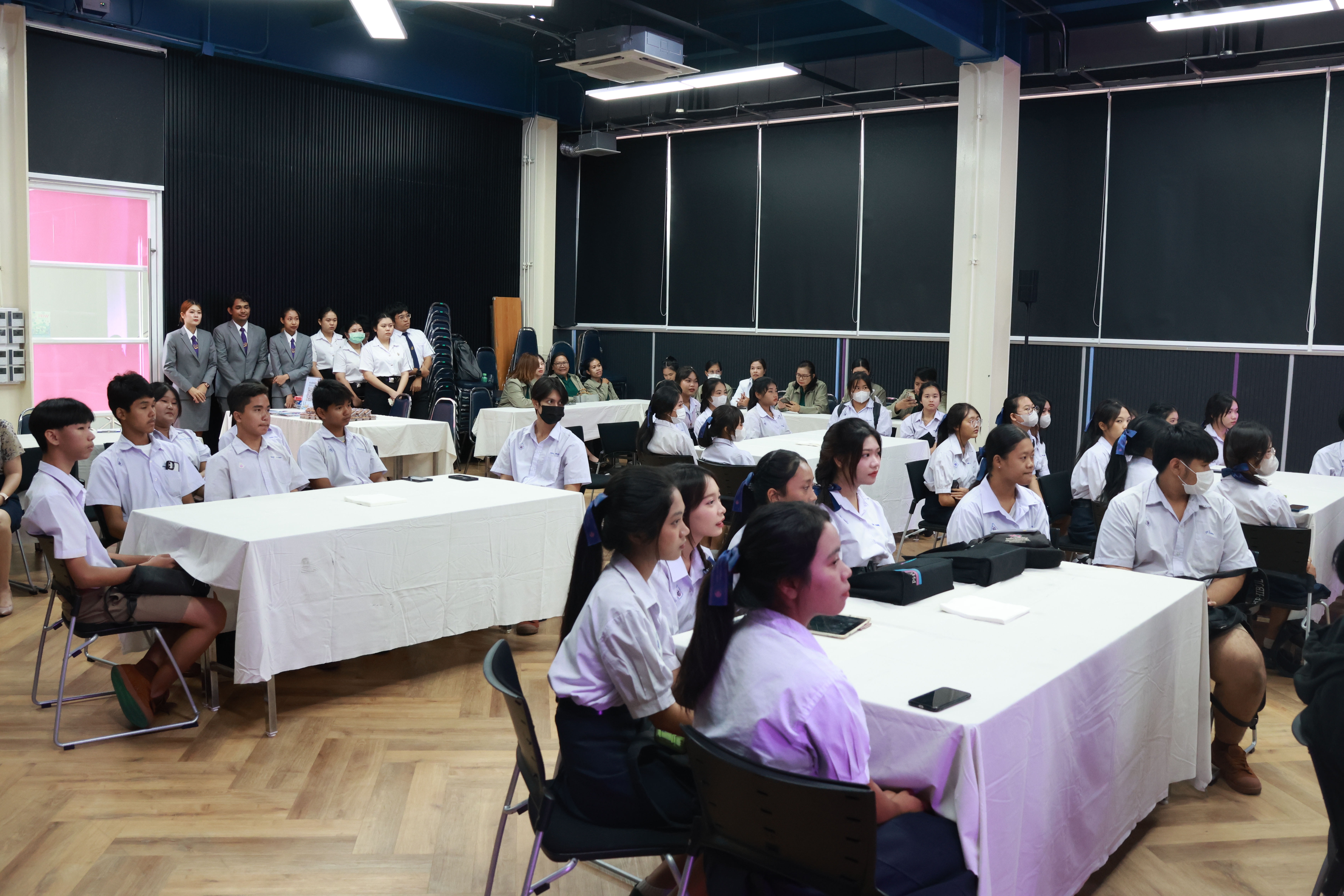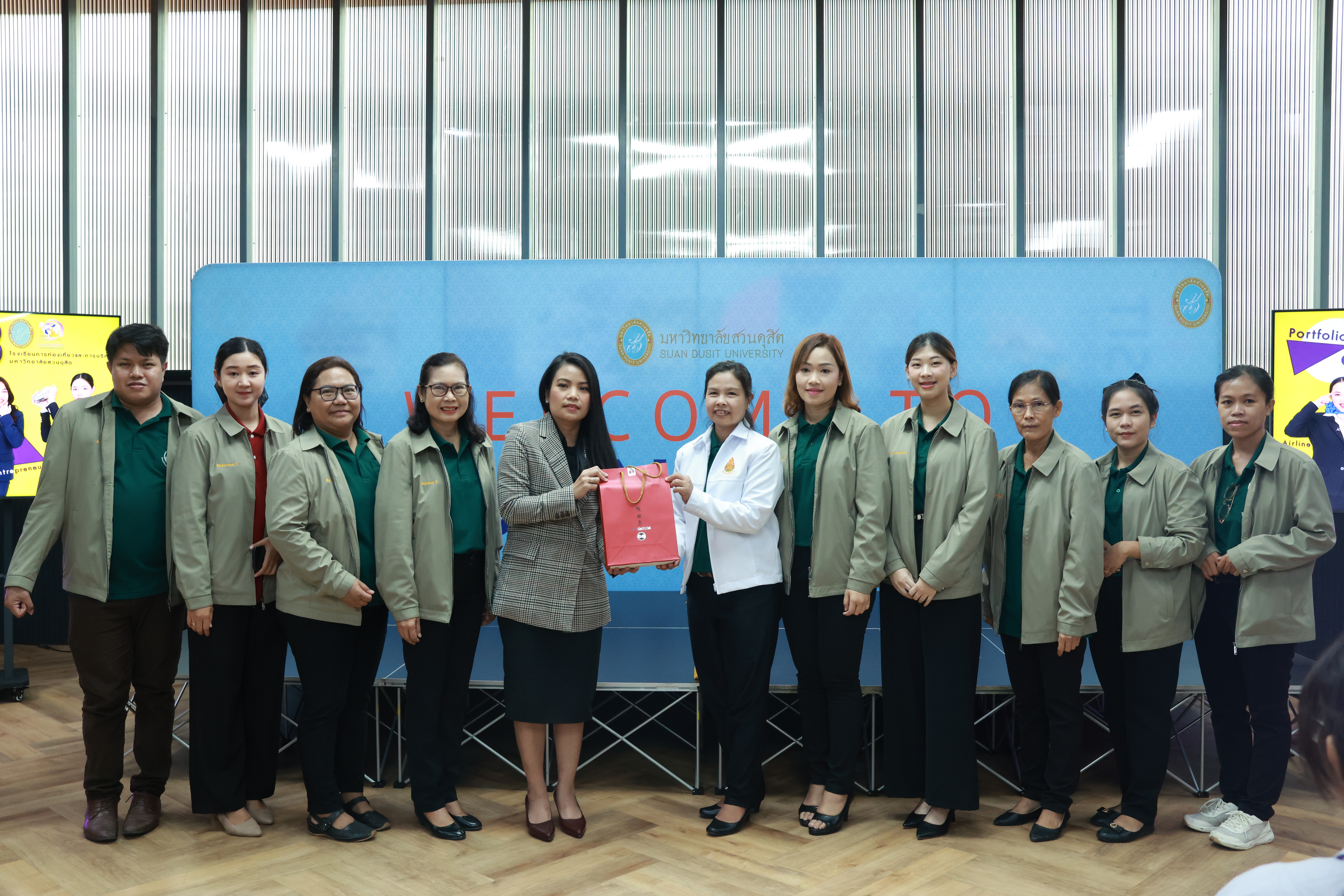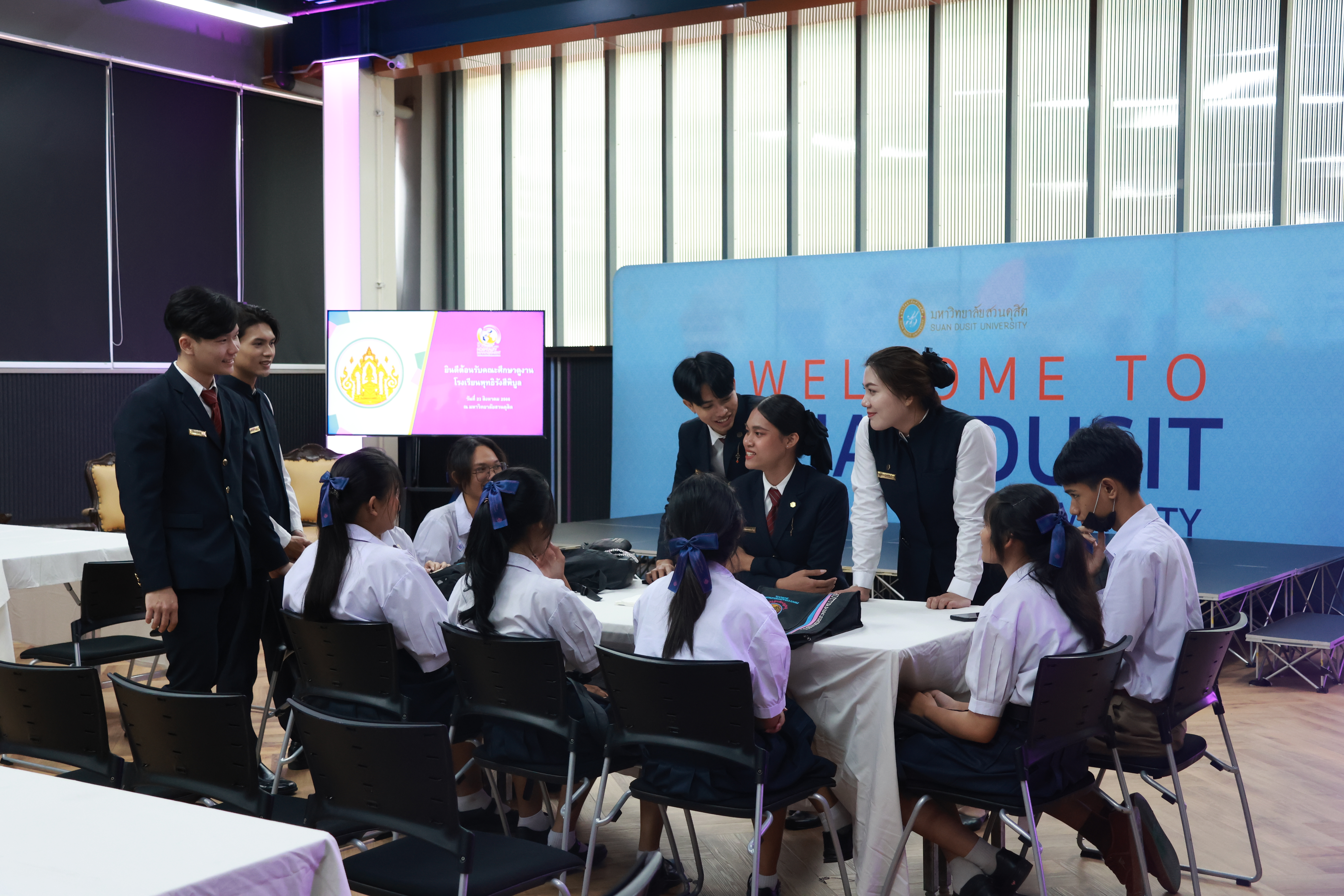 อาจารย์ ดร.ปาริฉัตร พรหมสวัสดิ์ รองคณบดีโรงเรียนการท่องเที่ยวและการบริการ มหาวิทยาลัยสวนดุสิต ให้การต้อนรับคณะศึกษาดูงานจากโรงเรียนพุทธิรังสีพิบูล จ.ฉะเชิงเทรา โดยคณะศึกษาดูงานได้เข้าร่วมกิจกรรมแนะนำหลักสูตรต่างๆ กิจกรรมแนะแนวการเรียนการสอน และปฏิบัติการทางวิชาชีพด้านธุรกิจการโรงแรม ณ ห้อง Online 19-20 และห้อง Mock-up ในโอกาสนี้ คณะศึกษาดูงานยังได้เข้าเยี่ยมชม One World Library (OWL) และสวนดุสิตโฮมเบเกอรี่ มหาวิทยาลัยสวนดุสิต เมื่อวันที่ 23 สิงหาคม 2567