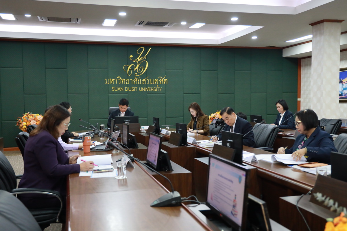 บัณฑิตวิทยาลัย มหาวิทยาลัยสวนดุสิต จัดสอบโครงร่างดุษฎีนิพนธ์ นักศึกษาระดับปริญญาเอก สาขาวิชาภาวะผู้นำทางการศึกษา ได้แก่