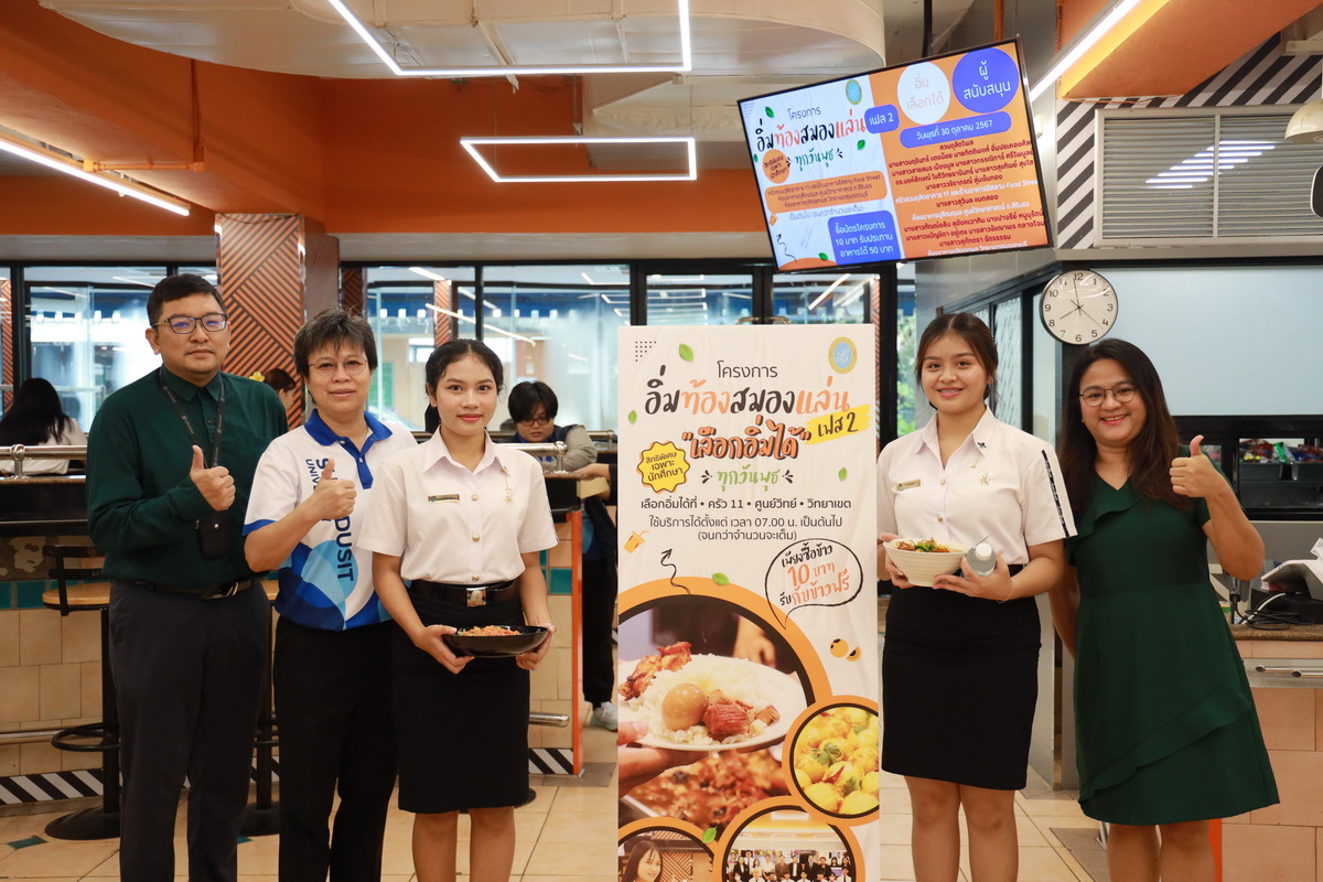 มหาวิทยาลัยสวนดุสิต โดยสำนักวิทยบริการและเทคโนโลยีสารสนเทศ ร่วมกับ สำนักกิจการพิเศษ ครัวสวนดุสิต สวนดุสิตโพล กองพัฒนานักศึกษา ศูนย์สนเทศแนะแนวการศึกษาและอาชีพ และโรงเรียนการเรือน จัดโครงการอิ่มท้องสมองแล่น เฟส 2 อิ่มเลือกได้ ครั้งที่ 10 เพื่อนักศึกษา โดย สวนดุสิตโพล นางสาวมฤรินทร์ แตงน้อย นายกิตติพงศ์ อิ่มประคอง นางสาวสายสมร เมืองมูล นางสาวกรรณิการ์ ศรีไพบูลย์ ดร.นงค์ลักษณ์ โชติวิทยธานินทร์ นางสาววชิราภรณ์ สุ่มเข็มทอง นางสาวสุขทิพย์ เป็นผู้สนับสนุน ณ ครัวสวนดุสิต อาคาร 11 และร้านอาหารอิสลาม Food Street นางสาวสุวิมล แมตสอง เป็นผู้สนับสนุน ณ ห้องอาหารดุสิตนฤมล ศูนย์วิทยาศาสตร์ ถ.สิริธร และนางสาวกัณณ์อลิน สุอังคะวาทิน นางปาจรีย์ หนูนุรัตน์ นางสาวชัชฌาพร กลางโฉม และนางสาวสุภัทตรา ฉัตรธรรม เป็นผู้สนับสนุน และมีนักศึกษาให้ความสนใจเข้าร่วมโครงการ ในวันที่ 30 ตุลาคม 2567 โดยโครงการอิ่มท้องสมองแล่นเพื่อนักศึกษา จัดขึ้นเพื่อให้บริการอาหารเพิ่มเติมแก่นักศึกษาให้ได้รับประทานอาหารที่เหมาะสม เพียงพอกับความต้องการของร่างกาย เป็นสวัสดิการ และช่วยลดค่าครองชีพให้แก่นักศึกษา รวมถึงเป็นกิจกรรมที่สร้างการมีส่วนร่วม และการแบ่งปันของผู้บริหาร อาจารย์ และบุคลากร ในการร่วมเป็นผู้สนับสนุนค่าอาหารในโครงการอิ่มท้องสมองแล่น