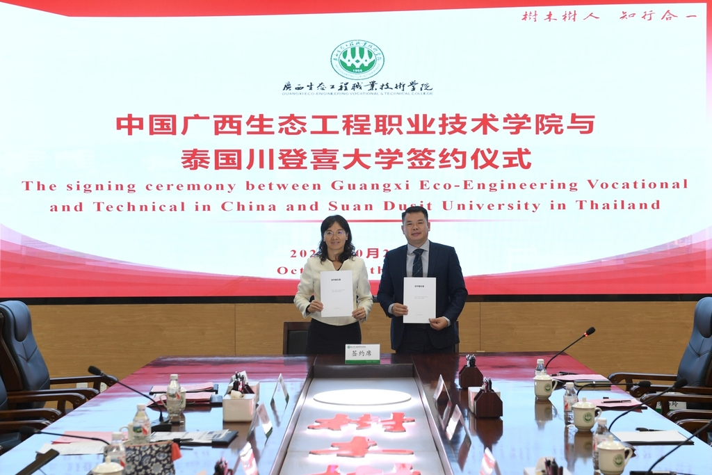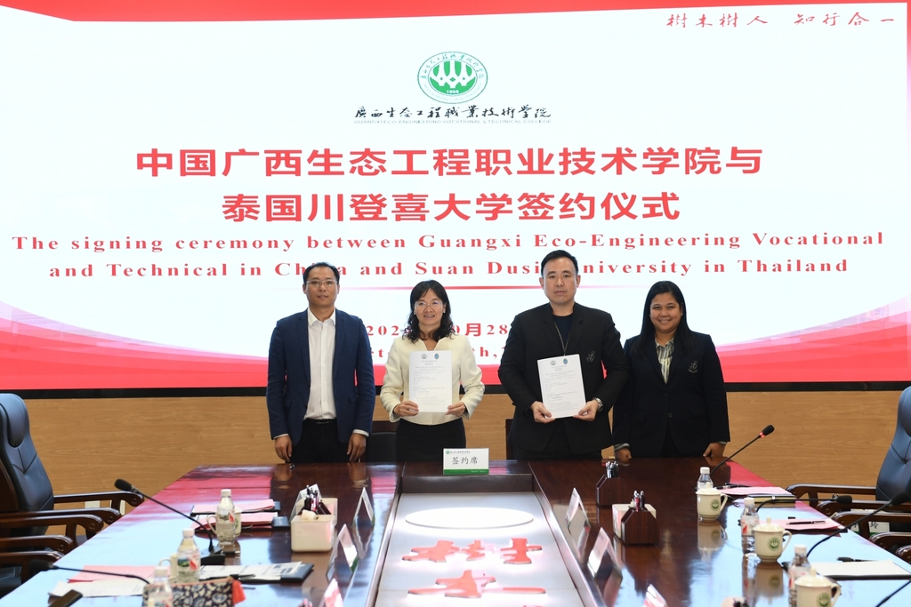 ผู้ช่วยศาสตราจารย์ ว่าที่ร้อยตรี ดร.ธนพัฒน์ แสงรุ่งเรือง คณบดีโรงเรียนการเรือน และผู้จัดการศูนย์ฝึกปฏิบัติการอาหารนานาชาติ นำทีมผู้บริหาร ได้แก่ อาจารย์ธิติมา แก้วมณี รองคณบดีฝ่ายวิชาการและการวางแผน นางสาวรณิดา ศรีธนาวรุณ หัวหน้าสำนักงานโรงเรียนการเรือน นางสาวปิยาณี ชดช้อย หัวหน้าฝ่ายประชาสัมพันธ์ ศูนย์ฝึกปฏิบัติการอาหารนานาชาติ และนางสาวยุพยง วงค์ชัย เลขานุการ ศูนย์ฝึกปฏิบัติการอาหารนานาติ เข้าศึกษาดูงานวิทยาลัยอาชีวศึกษาและเทคนิคเชิงนิเวศกว่างซี (Guangxi Eco-Engineering Vocational and Technical College) โดยเยี่ยมชมการเรียนการสอน การฝึกอบรมด้านการประกอบอาหาร และห้องปฏิบัติการด้านอาหาร เยี่ยมชมห้องนิทรรศการฐานวิจัยด้านป่าไม้ของวิทยาลัย และประชุมหารือแนวทางการดำเนินงานความร่วมมือทางด้านวิชาการระหว่างโรงเรียนการเรือน และวิทยาลัยอาชีวศึกษาและเทคนิคเชิงนิเวศกว่างซี นำทีมโดย Miss Wei Lin ท่านอธิการบดี วิทยาลัยอาชีวศึกษาและเทคนิคเชิงนิเวศกว่างซี และทีมผู้บริหาร โดยมีแนวทางการความร่วมมือในการจัดทำหลักสูตรอบรมอาหารไทย อาหารจีน ระยะสั้นทั้งออนไลน์และออฟไลน์รวมทั้งการรับรองใบประกาศนียบัตร การพัฒนารูปแบบการศึกษาร่วมกัน ในด้านการแลกเปลี่ยนบุคลากร การแลกเปลี่ยนนักศึกษา การส่งนักศึกษาฝึกงาน รวมถึงทางวิทยาลัยอาชีวศึกษาและเทคนิคเชิงนิเวศกว่างซี มีความสนใจหลักสูตรระดับปริญญาตรีซึ่งมีโอกาสพัฒนาจัดทำหลักสูตร 2+2 ปี ร่วมกัน จัดขึ้นเมื่อวันที่ 28 ตุลาคม 2567 ณ วิทยาลัยอาชีวศึกษาและเทคนิคเชิงนิเวศกว่างซี นครหนานหนิง สาธารณรัฐประชาชนจีน