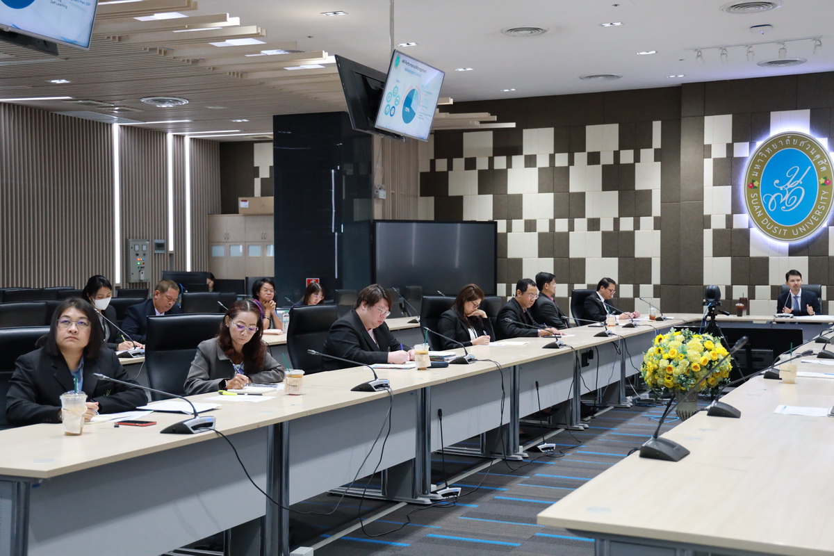 รศ.ดร.ชนะศึก นิชานนท์ รองอธิการบดีฝ่ายบริหาร วิจัย และนวัตกรรม เป็นประธานการประชุมการจัดทำ Key result ของหน่วยงาน ในการทำความเข้าใจเรื่องของ Power of Academic Excellence : Excellence toward International Level ซึ่งมีวัตถุประสงค์เพื่อ พัฒนา 5 อัตลักษณ์ให้เข้มแข็งและอยู่ในมาตรฐานสากล สร้างบัณฑิตที่พึงประสงค์ ตามมาตรฐานสังคม พัฒนาผู้เรียนและบุคลากรสู่ความเป็นสากล พัฒนาหลักสูตรที่มีผลกระทบสูง ยกระดับคุณภาพชีวิตด้วยงานวิจัยและนวัตกรรม ส่งเสริมธุรกิจนวัตกรรม ผลักดันคุณภาพงานวิจัยสู่มาตรฐานสากล ฯลฯ ในวันที่ 19 พฤศจิกายน 2567 ณ ห้องประชุมใหญ่ ชั้น 5 สำนักงานมหาวิทยาลัย มหาวิทยาลัยสวนดุสิต