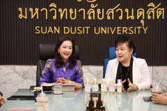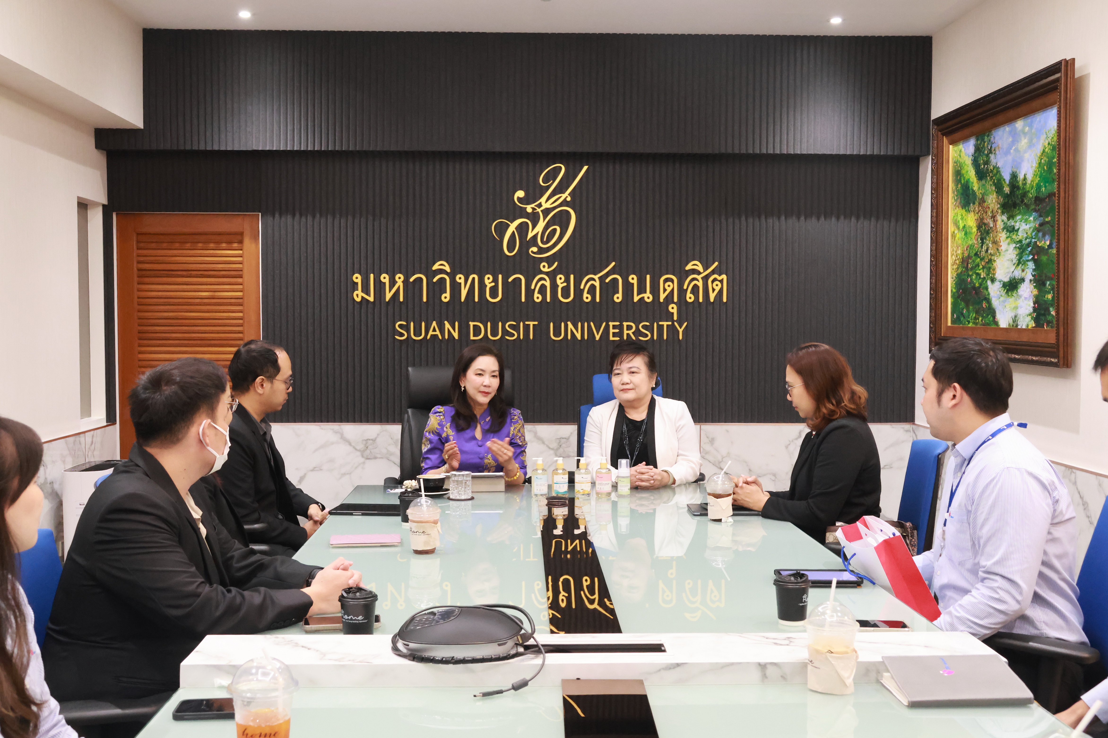 ผศ.ดร.พรชณิตว์ แก้วเนตร รองอธิการบดีฝ่ายวิชาการ และกิจการต่างประเทศ มหาวิทยาลัยสวนดุสิต พร้อมด้วย ผศ.ดร.ฐิตินาถ สุคนเขตร์ คณบดีคณะวิทยาศาสตร์และเทคโนโลยี และอาจารย์สาขาวิชาวิทยาศาสตร์เครื่องสำอาง ร่วมประชุมกับคุณดวงพร ธีรภาพไพสิฐ Head of Innovation, Research & Development And High Value Business และคณะนักวิจัย บริษัท ไทยออยล์ จำกัด (มหาชน) เกี่ยวกับผลิตภัณฑ์ที่เกิดจากโครงการความร่วมมือด้านวิชาการ ณ ห้องประชุมคาเฟ่บายโฮม วันที่ 13 ธันวาคม 2567 ในการนี้ คุณดวงฤดี อรุณเลิศรัศมี ผู้จัดการแผนกพัฒนาธุรกิจมูลค่าสูง บริษัท ไทยออยล์ จำกัด (มหาชน) เข้าพบ รศ.ดร.สุขุม เฉลยทรัพย์ ประธานที่ปรึกษาอธิการบดี และรศ.ดร.ศิโรจน์ ผลพันธิน ที่ปรึกษาอธิการบดีด้านบริหาร ในโอกาสวันขึ้นปีใหม่ พ.ศ.2568