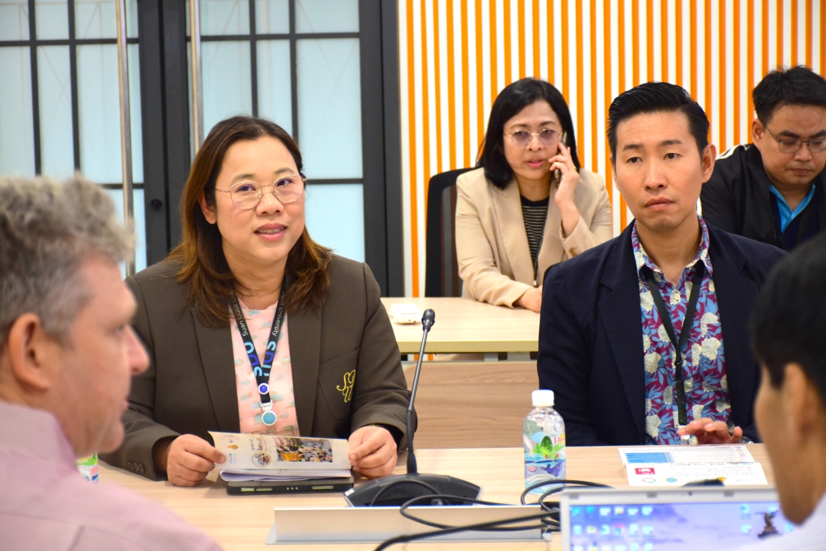ผศ.ดร.วีณัฐ สกุลหอม คณบดีคณะครุศาสตร์ มหาวิทยาลัยสวนดุสิต พร้อมด้วยผู้บริหารและคณาจารย์คณะครุศาสตร์ ให้การต้อนรับ Mr. Kenzo Yoneda ตัวแทนจากกระทรวงการศึกษา วัฒนธรรม กีฬา วิทยาศาสตร์และเทคโนโลยี ประเทศญี่ปุ่น Mr. Julian Charles Warden ผู้จัดการทั่วไป บริษัท mangoSTEEMS จำกัด ประเทศสิงคโปร์ และคุณกิตติภัฎ เฉลยทรัพย์ ผู้จัดการ บริษัท mangoSTEEMS (ประเทศไทย)จำกัด ในโอกาสเข้าศึกษาดูงานการจัดการเรียนการสอนตามแนวทางสหกิจศึกษา มหาวิทยาลัยสวนดุสิต และทักษะดิจิทัล โดยคณะดูงานได้เข้าชมการเรียนการสอนในหลักสูตรสาขาวิชาการศึกษาปฐมวัย และการพูดคุยสัมภาษณ์ผู้บริหารและคณาจารย์คณะครุศาสตร์ ในวันอังคารที่ 14 มกราคม 2568 เวลา 9:00 – 12:00 น. ณ อาคาร 32 และห้องประชุมคณะครุศาสตร์ (434) อาคาร 4