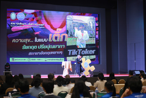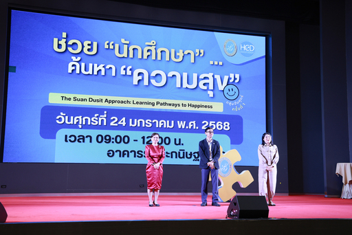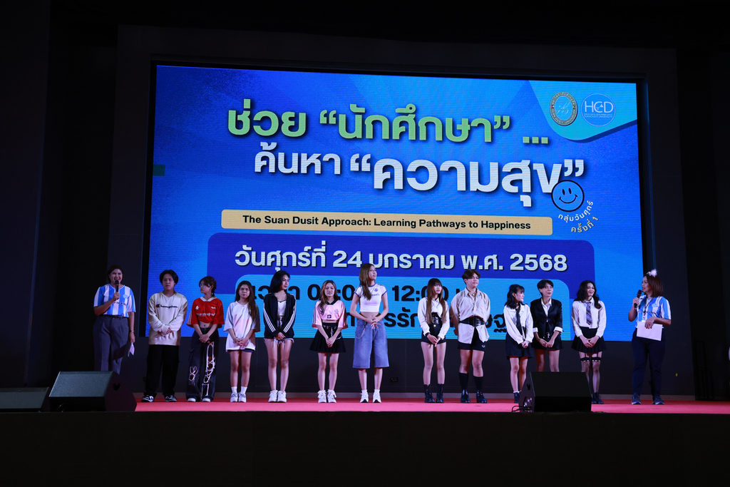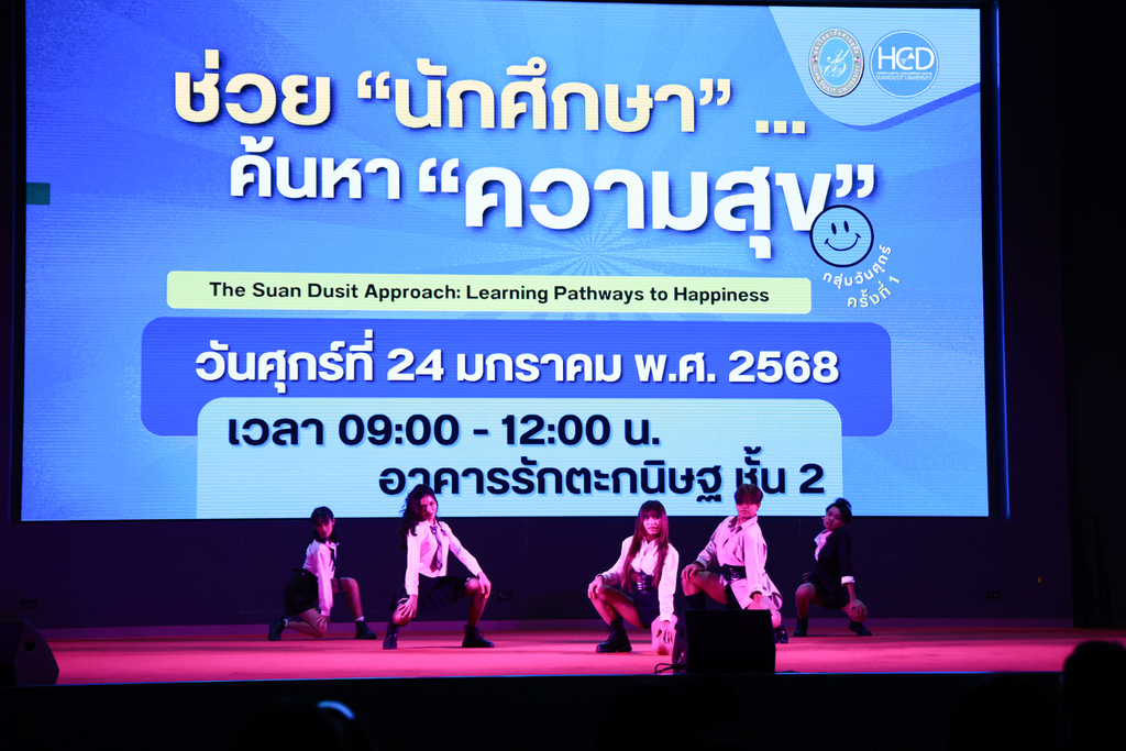 ศูนย์พัฒนาทุนมนุษย์ มหาวิทยาลัยสวนดุสิต จัดโครงการการจัดการเรียนการสอนเชิงประสบการณ์ รายวิชา คุณค่าของความสุข ภาคเรียนที่ 2/2567 กลุ่มที่ 3 ช่วย “นักศึกษา”… ค้นหา “ความสุข” The Suan Dusit Approach Learning Pathways to Happiness โดยมี รศ.ดร.สุขุม เฉลยทรัพย์ ประธานที่ปรึกษาอธิการบดี เป็นผู้จัดการรายวิชา กิจกรรมแรกเปิดตัว ความสุขอย่างสร้างสรรค์ (Cover dance) โดย ทีมทวาย “ความสุขในแบบคุณเติ๊ก” จากเพจภาษาอังกฤษหยาบๆ โดย คุณรัชกฤต ปริยปุณยาภา (พิธีกร/influencer) และช่วงท้ายแนะนำกิจกรรม 3 ฐาน พร้อมด้วยกิจกรรมเล่นเกมฝึกประสบการณ์ความรู้ พร้อมรับของรางวัล ณ หอประชุมรักตะกนิษฐ ชั้น 2 มหาวิทยาลัยสวนดุสิต วันจันทร์ที่ 24 มกราคม 2568