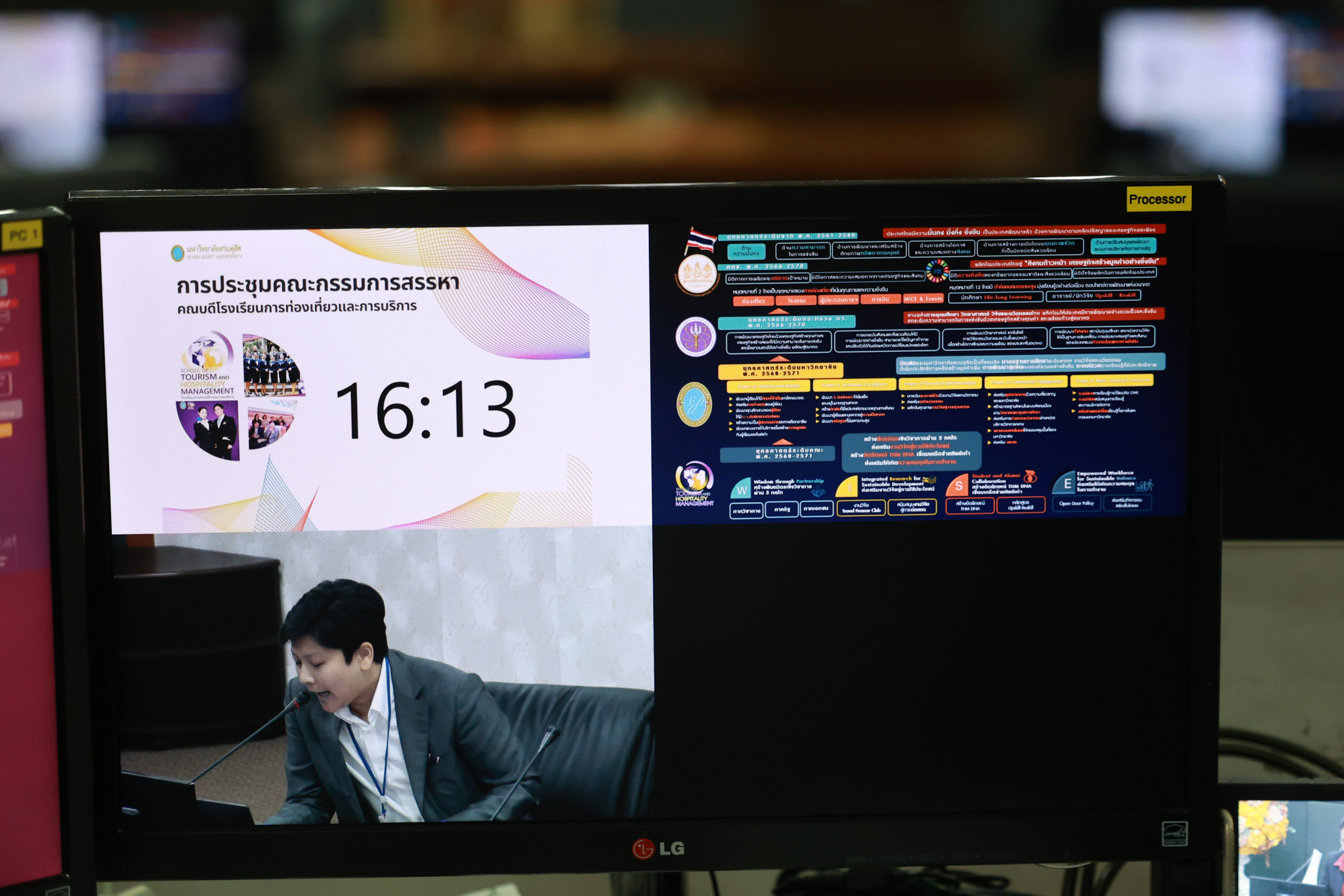 ผู้ช่วยศาสตราจารย์ ดร.พรชณิตว์ แก้วเนตร รองอธิการบดีฝ่ายวิชาการและกิจการต่างประเทศ เป็นประธานการประชุมคณะกรรมการสรรหาคณบดีโรงเรียนการท่องเที่ยวและการบริการ ครั้งที่ 3/2568 โดยมีวาระเรื่อง รับฟังการแสดงวิสัยทัศน์ของผู้มีสิทธิ์เข้ารับการสรรหาคณบดีโรงเรียนการท่องเที่ยวและการบริการ พิจารณาคัดเลือกบุคคลผู้มีสิทธิ์เข้ารับการสรรหาเป็นคณบดีโรงเรียนการท่องเที่ยวและการบริการ ตามประกาศคณะกรรมการสรรหาคณบดีโรงเรียนการท่องเที่ยวและการบริการ เรื่อง หลักเกณฑ์ ขั้นตอน และวิธีการสรรหาผู้สมควรดำรงตำแหน่งคณบดีโรงเรียนการท่องเที่ยวและการบริการ พ.ศ. 2568 เพื่อนำเสนอสภามหาวิทยาลัยพิจารณาและแต่งตั้งเป็นคณบดีโรงเรียนการท่องเที่ยวและการบริการต่อไป เมื่อวันพุธที่ 29 มกราคม 2568 ณ ห้องประชุมลำพอง 2