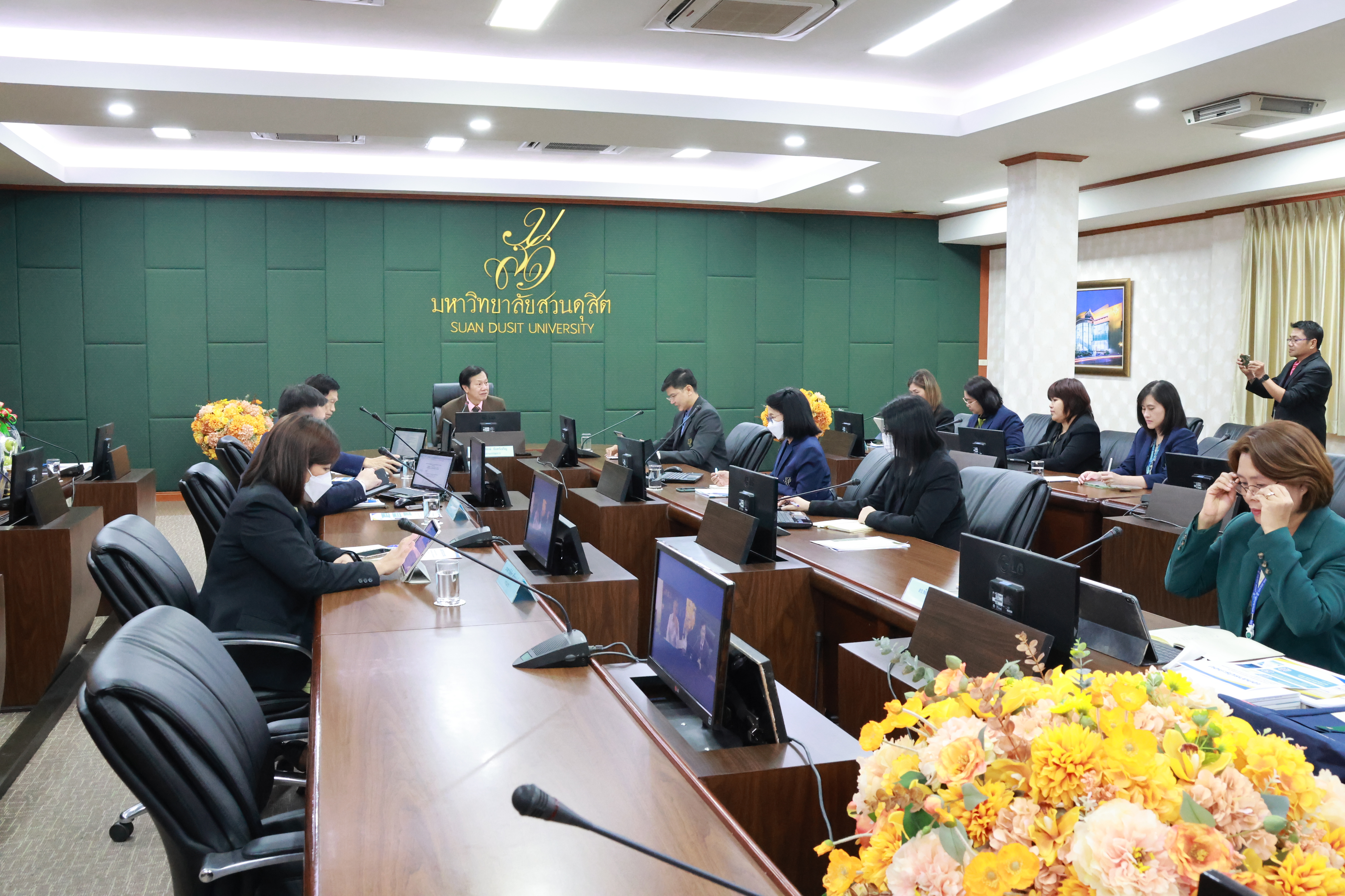 ผศ.ดร.พิทักษ์ จันทร์เจริญ รักษาการแทนอธิการบดีมหาวิทยาลัยสวนดุสิต ในฐานะประธานกรรมการบริหารสำนักกิจการพิเศษ เป็นประธานการประชุมคณะกรรมการบริหารสำนักกิจการพิเศษ ครั้งที่ 2(4)/2568 โดยคณะ กรรมการฯ ได้ร่วมกันพิจารณา และมีมติเห็นชอบเรื่อง Power of Community Engagement: ส่งเสริมธุรกิจวิชาการด้วยความเชี่ยวชาญของมหาวิทยาลัย การพัฒนาบุคลากรสำนักกิจการพิเศษ และรายงานผลการดำเนินงาน (ด้านการเงิน และด้านการดำเนินงาน) ไตรมาสที่ 1 (ตุลาคม-ธันวาคม 2567) ประจำปีงบประมาณ 2568 รวมถึงรับทราบการดำเนินงานด้านต่าง ๆ ของสำนักกิจการพิเศษ ณ ห้องประชุมลำพอง 2 มหาวิทยาลัยสวนดุสิต และผ่านระบบออนไลน์ Zoom เมื่อวันที่ 30 มกราคม 2568