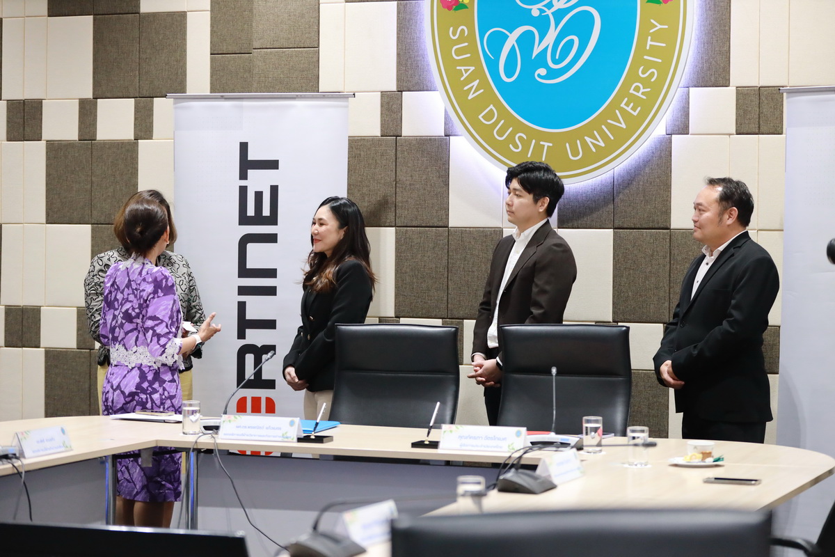 หลักสูตรวิทยาศาสตรบัณฑิต สาขาวิชาความมั่นคงปลอดภัยไซเบอร์ คณะวิทยาศาสตร์และเทคโนโลยี มหาวิทยาลัยสวนดุสิต จัดพิธีลงนามความมือทางวิชาการกับ บริษัท ฟอร์ทิเนท ซีเคียวริตี้ เน็ทเวิร์ค (ประเทศไทย) จำกัด โดย ผศ.ดร.ฐิตินาถ สุคนเขตร์ คณบดีคณะวิทยาศาสตร์และเทคโนโลยี มหาวิทยาลัยสวนดุสิต กล่าวรายงานถึงบันทึกความร่วมมือทางวิชาการ จากนั้น ผศ.ดร.พรชณิตว์ แก้วเนตร รองอธิการบดีฝ่ายวิชาการและกิจการต่างประเทศ มหาวิทยาลัยสวนดุสิต และคุณภัคธภา ฉัตรโกเมศ ผู้จัดการประจำประเทศไทย บริษัท ฟอร์ทิเนท ซีเคียวริตี้ เน็ทเวิร์ค (ประเทศไทย) จำกัด กล่าวถึงความร่วมมือทางวิชาการ และลงนามความร่วมมือ