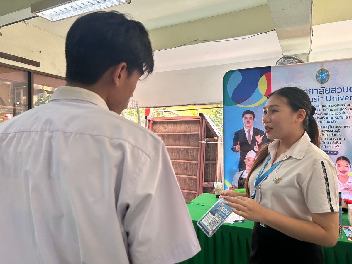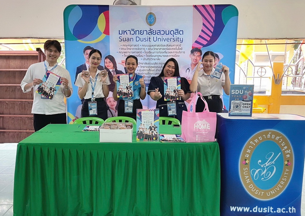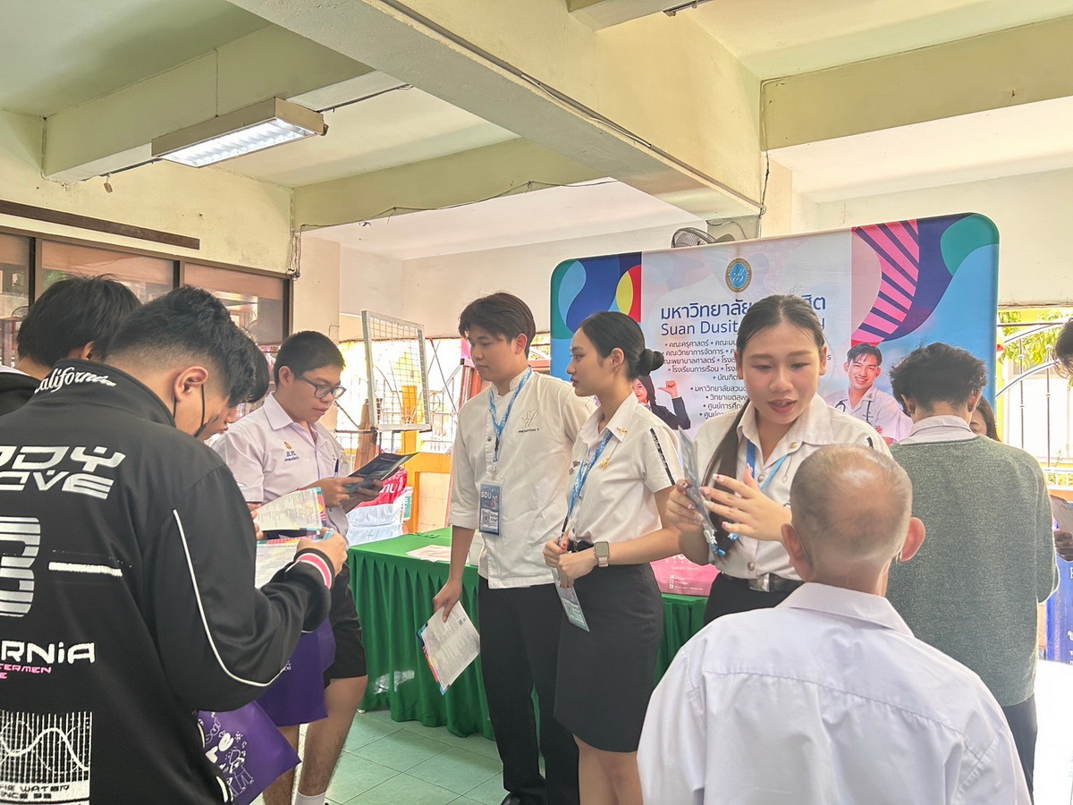 มหาวิทยาลัยสวนดุสิต นำโดย กองประชาสัมพันธ์ และนักศึกษาจาก โรงเรียนการท่องเที่ยวและการบริการ โรงเรียนการเรือน และคณะมนุษยศาสตร์และสังคมศาสตร์ เข้าร่วมกิจกรรมนิทรรศการแนะแนวการศึกษานักเรียนชั้นมัธยมศึกษาปีที่ 6 โดยในกิจกรรมมีการแนะนำข้อมูลของมหาวิทยาลัยสวนดุสิต ข้อมูลของหลักสูตรการเรียนการสอน พร้อมทั้งมี Toffee Cake จากสวนดุสิต Home Bakery มาให้นักเรียนได้ชิมกัน สร้างความประทับใจให้แก่นักเรียนเป็นอย่างมาก ในวันที่ 20 กุมภาพันธ์ 2568 ณ ห้องประชุมฉัฏฐีวัสส์ธาตุทอง โรงเรียนมัธยมวัดธาตุทอง