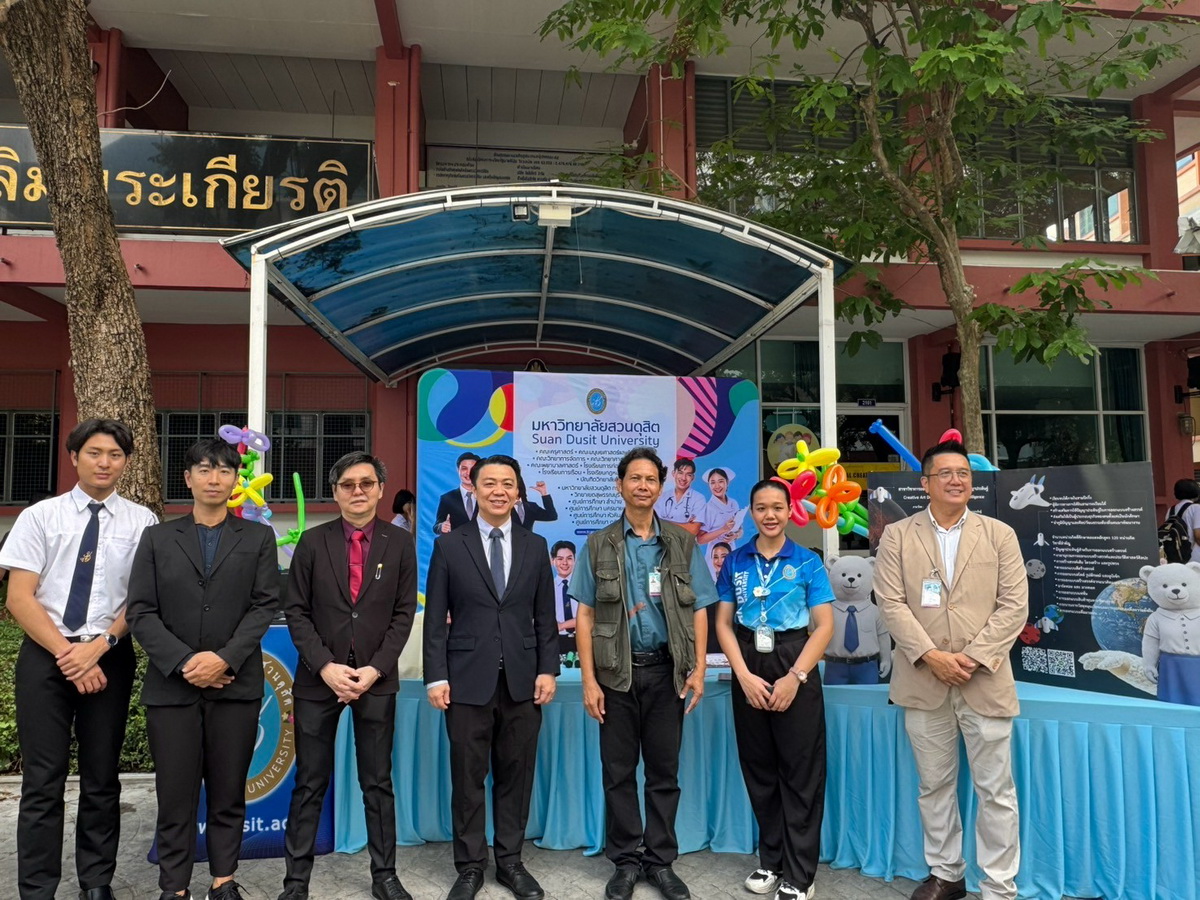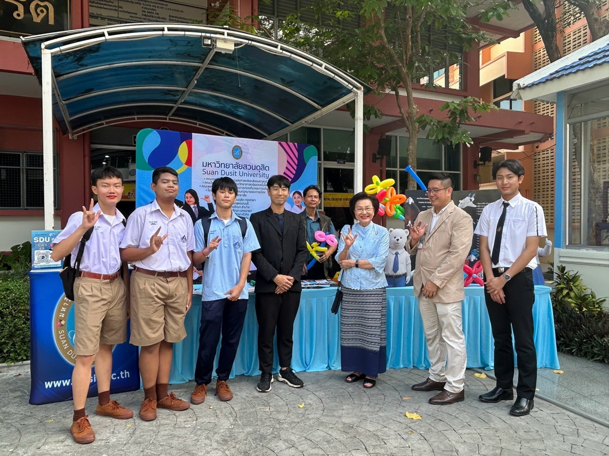 คณะมนุษยศาสตร์และสังคมศาสตร์ สาขาการออกแบบศิลปะสร้างสรรค์ด้วยปัญญาประดิษฐ์ ได้รับเกียรติ เข้าจัดบูธประชาสัมพันธ์รับสมัครนักศึกษาใหม่ ประจำปีการศึกษา 2568 ณ โรงเรียนเศรษฐเสถียร ในพระราชูปถัมภ์ ในวันศุกร์ที่ 14 มีนาคม 2568 นำทีมโดย รองศาสตรารย์ ดร.ยุทธพงษ์ ลีลากิจไพศาล คณบดีคณะมนุษยศาสตร์และสังคมศาสตร์ พร้อมด้วยอาจารย์ประจำหลักสูตรศิลปศาสตรบัณฑิต สาขาการออกแบบศิลปะสร้างสรรค์ด้วยปัญญาประดิษฐ์ บุคลากรฝ่ายประชาสัมพันธ์และนักศึกษา ร่วมจัดบูธประชาสัมพันธ์ ทั้งนี้มีลูกโป่งมาให้นักเรียน สร้างความประทับใจให้แก่นักเรียนเป็นอย่างมาก