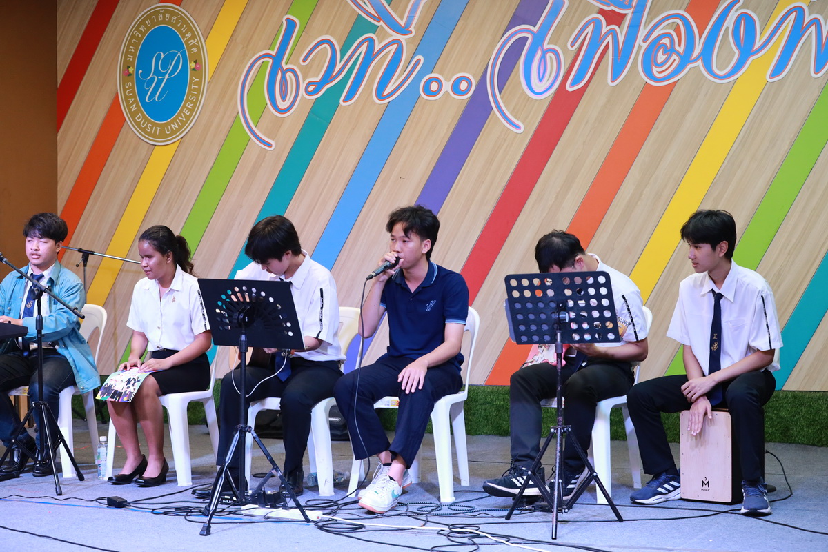 กองพัฒนานักศึกษา จัดกิจกรรม “ร้อง เต้น เล่น เรียนรู้” ครั้งที่ 4 การแสดงดนตรีวง “คนดีย์” ซึ่งได้รับรางวัลรองชนะเลิศ อันดับ 1 ในการประกวดวงดนตรีต่อต้านการทุจริต ประจำปี 2567 ชิงถ้วยพระราชทานสมเด็จพระกนิษฐาธิราชเจ้า กรมสมเด็จพระเทพรัตนราชสุดาฯ สยามบรมราชกุมารี โดยมีแขกรับเชิญพิเศษจากนักศึกษาวง Beyond Sight ร่วมสร้างบรรยากาศแห่งความสุขจากบทเพลงไพเราะหลายบทเพลง นับเป็นเวทีที่ได้แสดงความสามารถของนักศึกษา ณ เวทีเฟื่องฟ้า อาคาร 32 วันที่ 26 มีนาคม 2568