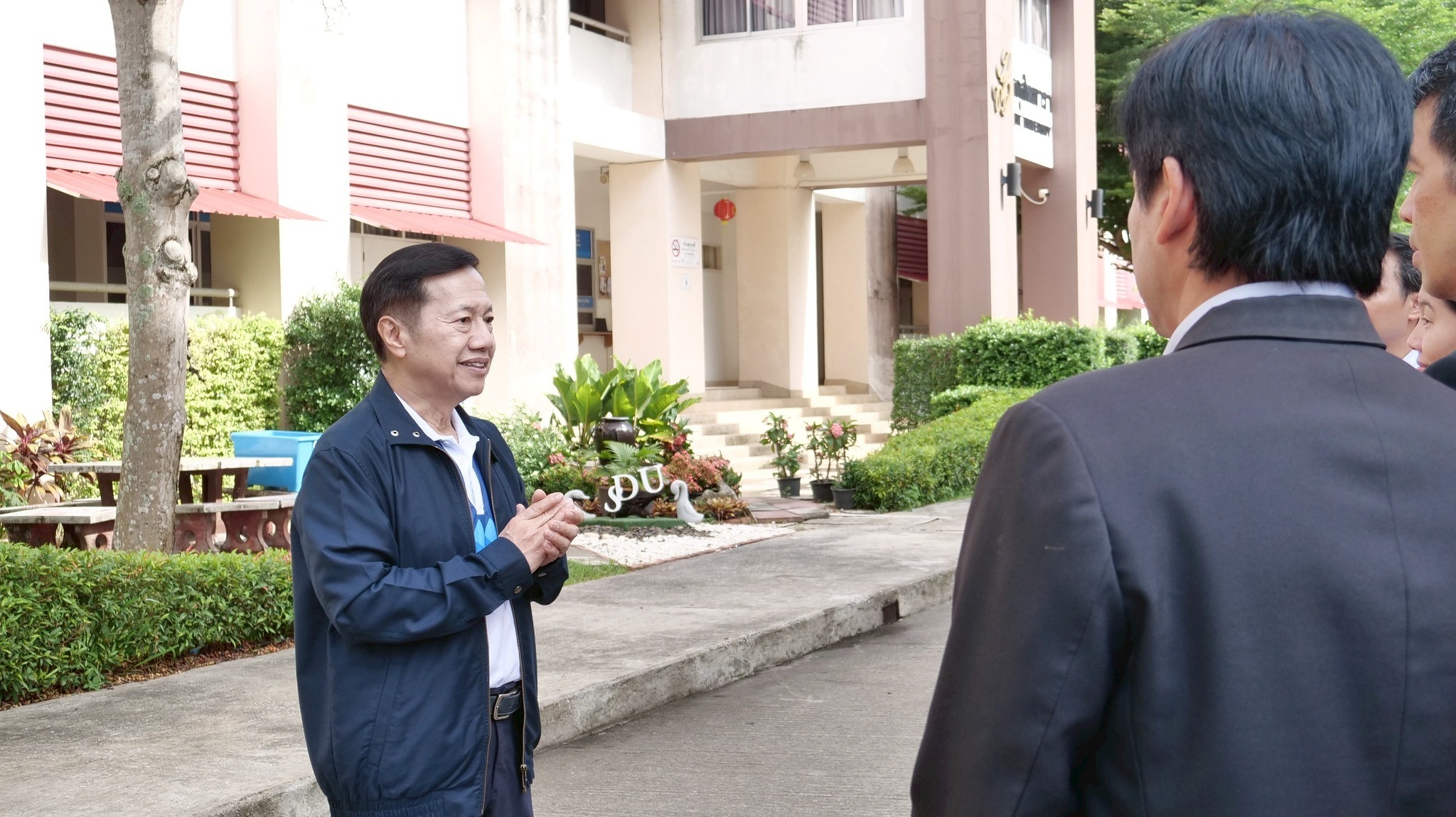 ผู้ช่วยศาสตราจารย์ ดร.พิทักษ์ จันทร์เจริญ อธิการบดีมหาวิทยาลัยสวนดุสิต ว่าที่ร้อยตรี ดร.วราธร อภิรัตน์ ผู้อำนวยการสำนักงานงานมหาวิทยาลัย นายพรรษวัชร อุดมเสฏฐ์ชัย ผู้อำนวยการกองอาคารและสถานที่ และนางสาวปิยะดา ปุรัษกาญจน์ หัวหน้างานพัสดุ ลงพื้นที่ตรวจเยี่ยมศูนย์การศึกษา ตรัง ในส่วนของการซ่อมบำรุงอาคารสถานที่ วางแผนการดำเนินงานในการเพิ่มสิ่งอำนวยความสะดวกให้กับนักศึกษา  โดย ดร.ทรงศักดา ชยานุเคราะห์ ผู้อำนวยการศูนย์การศึกษา ตรัง คณะผู้บริหาร พร้อมบุคลากร  ให้การต้อนรับและรับฟังคำแนะนำในการปฏิบัติงานตามแนวทางของมหาวิทยาลัย และร่วมแสดงความยินดี ในโอกาสอันเป็นสิริมงคลในการรับสนองพระบรมราชโองการแต่งตั้งอธิการบดีมหาวิทยาลัยสวนดุสิต แสดงความพร้อมในการร่วมสนับสนุนการบริหารงานของมหาวิทยาลัยภายใต้การนำของท่านอธิการบดี พร้อมทั้งร่วมสักการะศาลพระภูมิและสิ่งศักดิ์สิทธิ์ ประจำมหาวิทยาลัยสวนดุสิต ศูนย์การศึกษา ตรัง เพื่อความเป็นสิริมงคล ในวันเสาร์ที่ 3 พฤษภาคม 2568 ณ มหาวิทยาลัยสวนดุสิต ศูนย์การศึกษา ตรัง