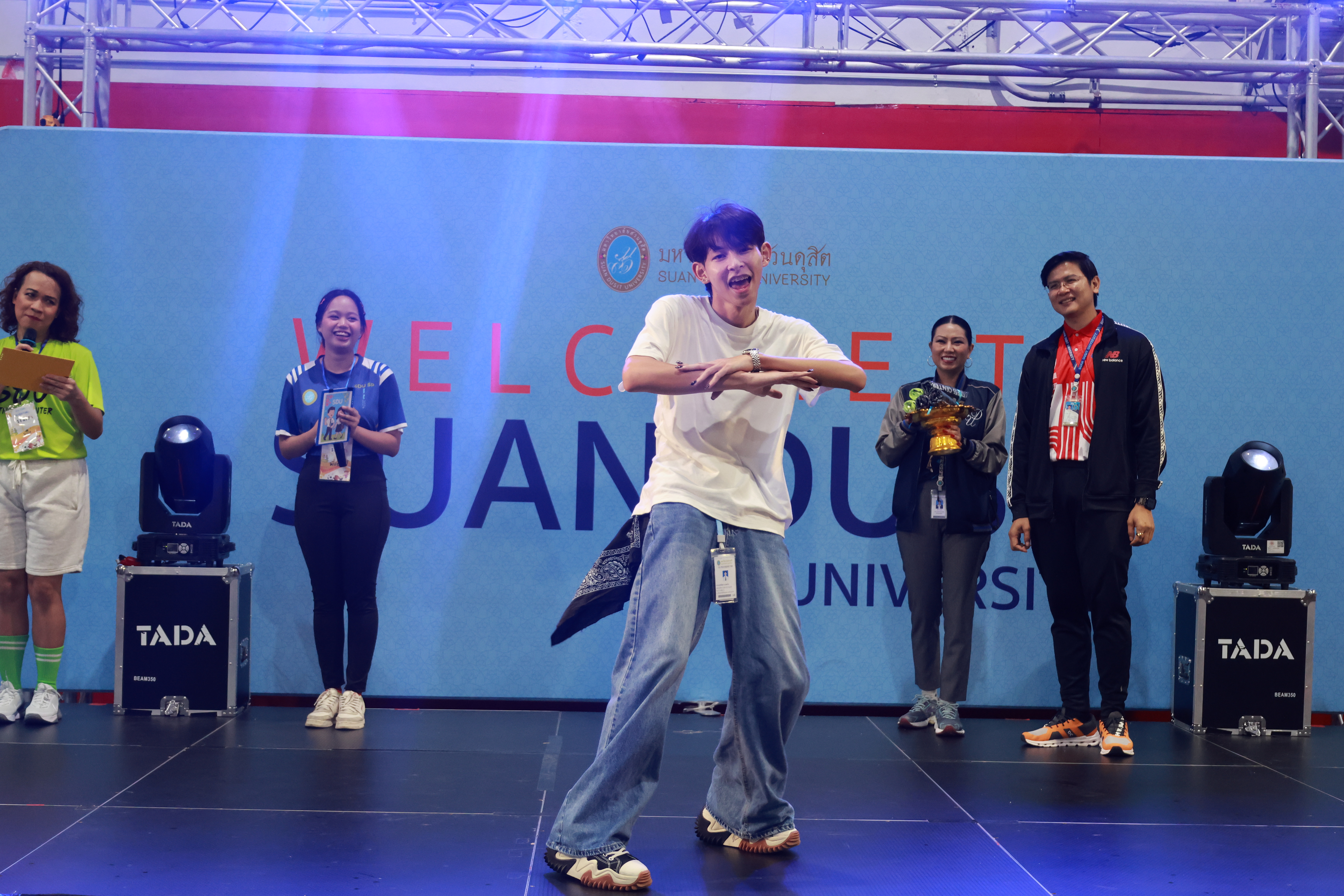 กิจกรรมก่อนเปิดภาคการศึกษาใหม่ ปีการศึกษา 2568 “SDU 2025 Freshers’ Times ” : BOOST YOUR ENERGY ครั้งที่ 9 โดยได้รับเกียรติจาก ผู้ช่วยศาสตราจารย์ ดร.พิทักษ์ จันทร์เจริญ อธิการบดีมหาวิทยาลัยสวนดุสิต เป็นประธานเปิดงานและนำกิจกรรม ร่วมกับ ผู้บริหาร บุคลากร และนักศึกษา จัดโดย โครงการศูนย์บริหารกายเพื่อสุขภาพ สำนักกิจการพิเศษ เมื่อวันที่ 30 พฤษภาคม 2568 ณ อาคารพละศึกษา ชั้น 2 มหาวิทยาลัยสวนดุสิต