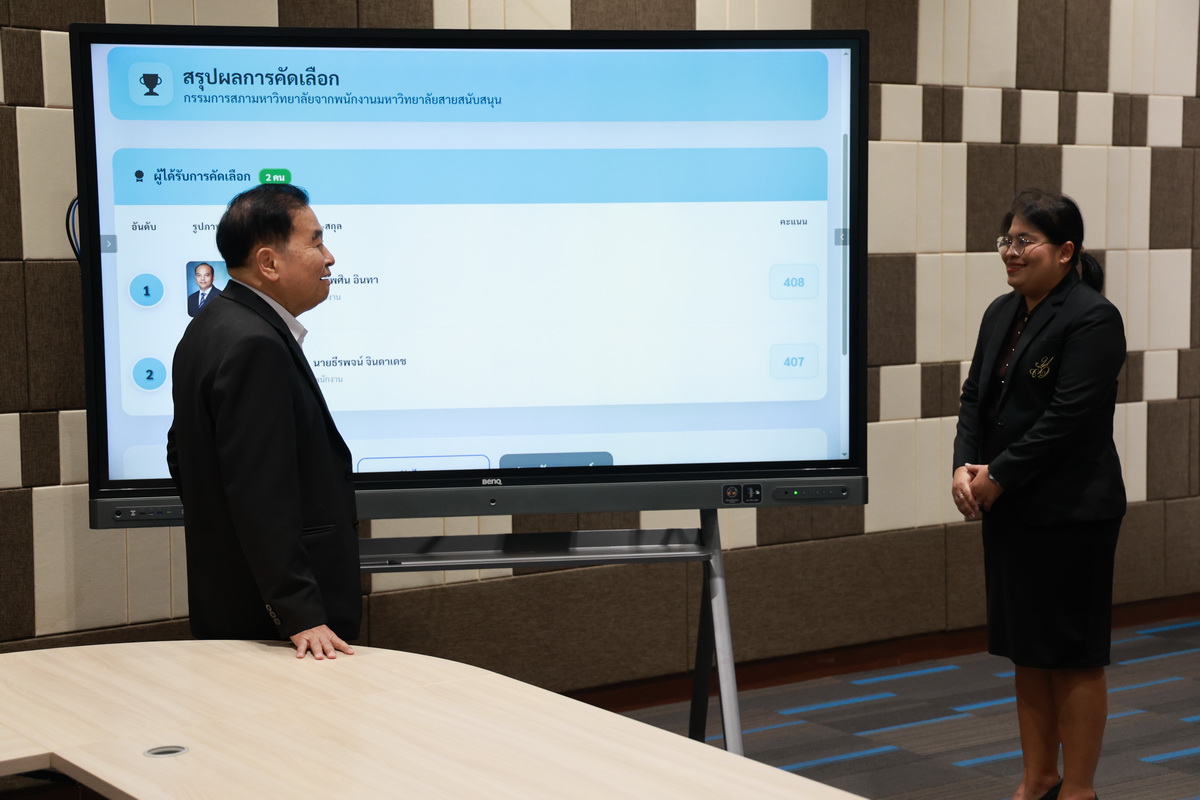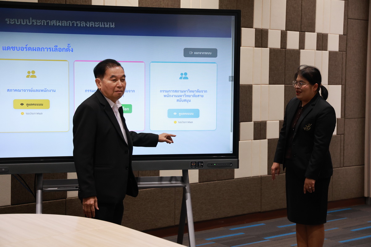 วันที่ 27 สิงหาคม 2568 มหาวิทยาลัยสวนดุสิต จัดการเลือกตั้งกรรมการสภามหาวิทยาลัยจากคณาจารย์ประจำ กรรมการสภามหาวิทยาลัยจากพนักงานมหาวิทยาลัยสายสนับสนุน และสภาคณาจารย์และพนักงาน ปี 2568 ผ่านระบบอนไลน์ (SDUeVOTE) โดยภายในมหาวิทยาลัยฯ สำนักวิทยบริการและเทคโนโลยีสารสนเทศ อำนวยความสะดวกให้อาจารย์และบุคลากรสามารถลงคะแนนได้ที่ห้อง Service Center อาคารสำนักงานมหาวิทยาลัย ชั้น 1 โดยการเลือกตั้งในครั้งนี้ ได้รับเกียรติจาก รศ.ดร.สุขุม เฉลยทรัพย์ ประธานที่ปรึกษาอธิการบดี เป็นประธานการประกาศผลการลงคะแนนเลือกตั้ง โดยมีผู้บริหาร อาจารย์ และบุคลากร จากหน่วยงานต่าง ๆ ร่วมเป็นสักขีพยาน ณ ห้องประชุมชั้น 5 อาคารสำนักงานมหาวิทยาลัย