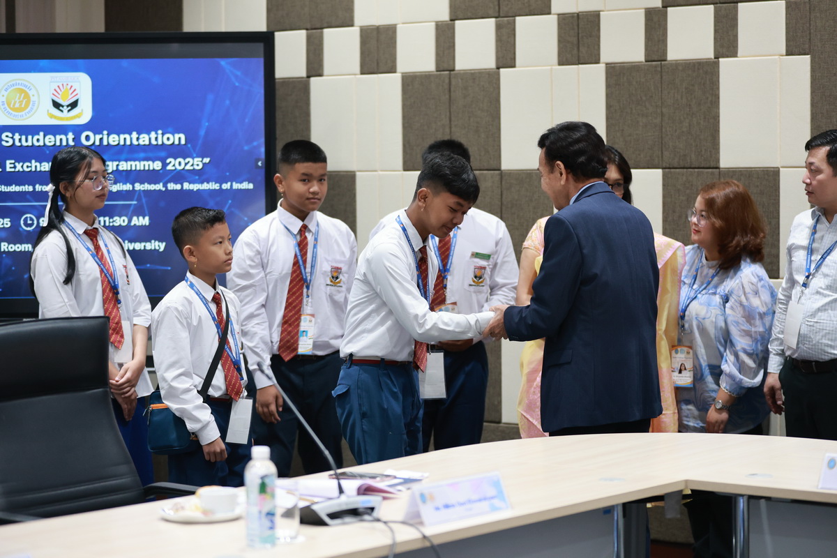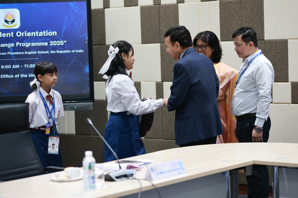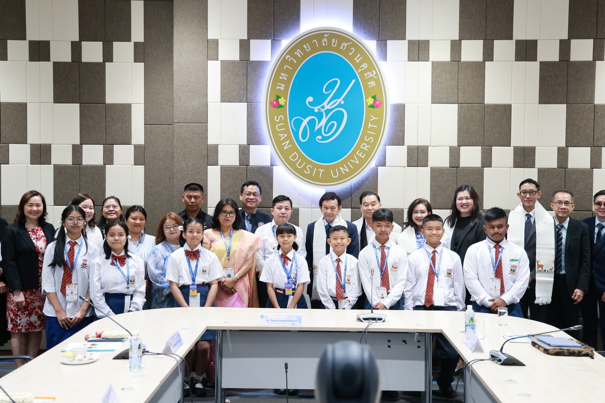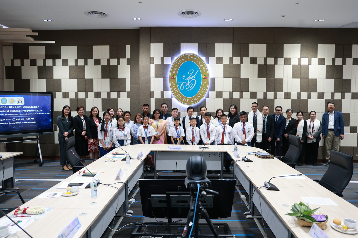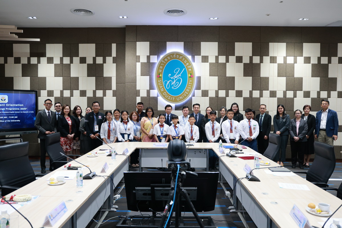 ศูนย์ประสานงานนักศึกษานานาชาติ คณะมนุษยศาสตร์และสังคมศาสตร์ จัดกิจกรรมปฐมนิเทศให้แก่คณะผู้บริหาร ครู และนักเรียนจาก Pitambara English School รัฐมณีปุระ สาธารณรัฐอินเดีย ในวันที่ 28 สิงหาคม 2568 ณ ห้องประชุมชั้น 5 สำนักงานมหาวิทยาลัย ซึ่งเป็นกิจกรรมหนึ่งของโครงการมหาวิทยาลัยสวนดุสิต โครงการ “Language and Cultural Exchange Programme 2025” โดยคณะครุศาสตร์ คณะมนุษยศาสตร์และสังคมศาสตร์ และโรงเรียนสาธิตละอออุทิศ กิจกรรมปฐมนิเทศนี้ได้รับเกียรติจาก ดร. ถนอม อินทรกำเนิด นายกสภามหาวิทยาลัยสวนดุสิตเป็นประธานกล่าวเปิดงาน และรองศาสตราจารย์ ดร. สุขุม เฉลยทรัพย์ ประธานที่ปรึกษาอธิการบดี มหาวิทยาลัยสวนดุสิต ผู้ช่วยศาสตราจารย์ ดร. พรชณิตว์ แก้วเนตร รองอธิการบดีฝ่ายวิชาการและกิจการต่างประเทศ ดร. พันธรักษ์ ผูกพันธุ์ ผู้ช่วยอธิการบดี พร้อมด้วยรองศาสตราจารย์ ดร. ยุทธพงษ์ ลีลากิจไพศาล คณบดีคณะมนุษยศาสตร์และสังคมศาสตร์ ผู้ช่วยศาสตราจารย์ ดร.วีณัฐ สกุลหอม คณบดีคณะครุศาสตร์ รวมทั้งคณาจารย์และนักศึกษาให้การต้อนรับ