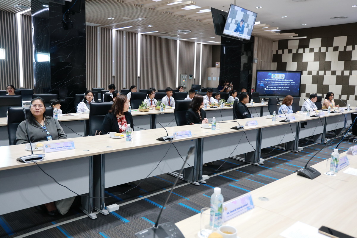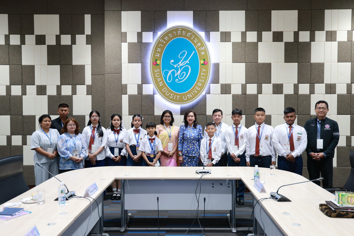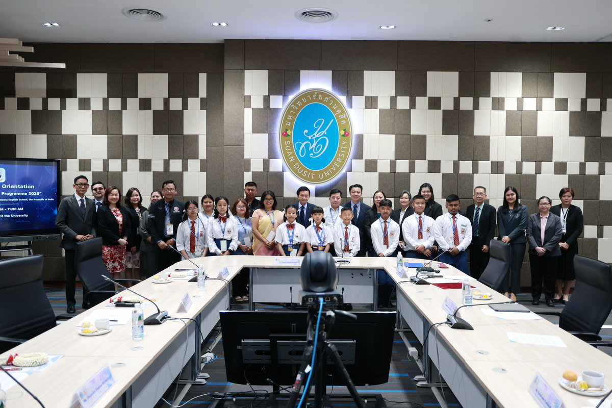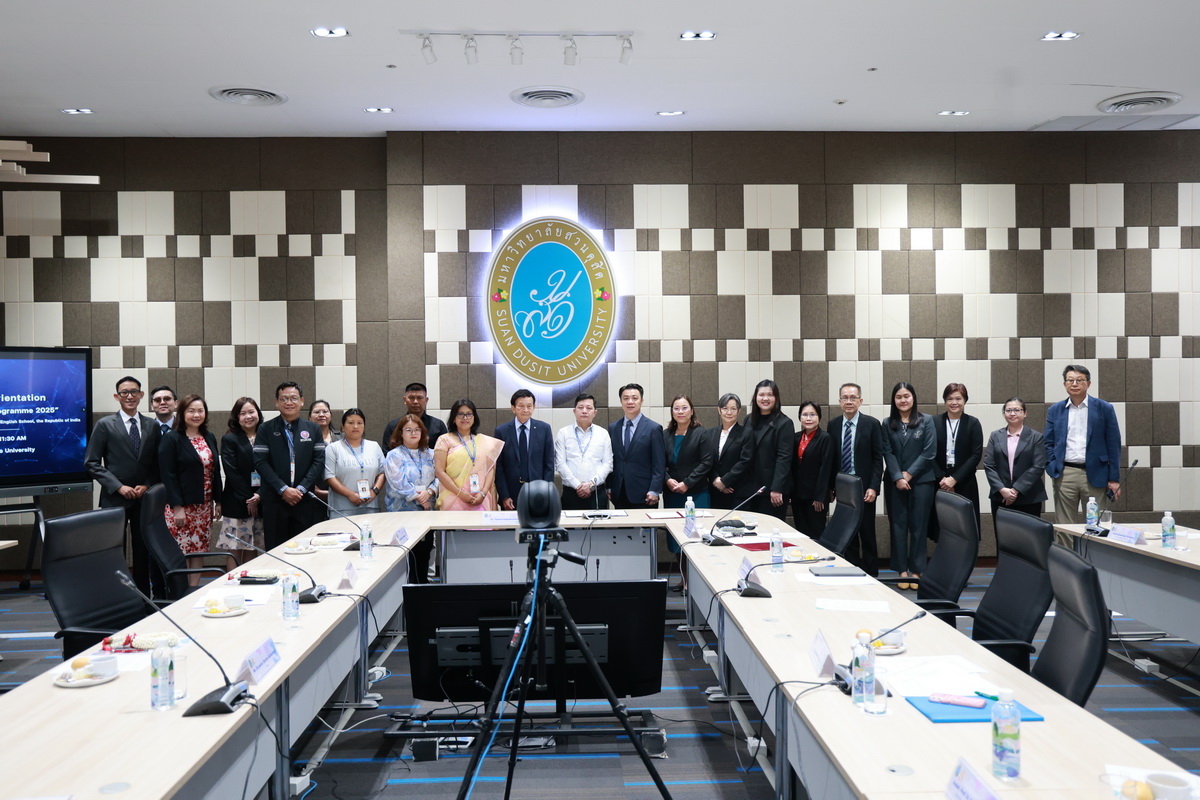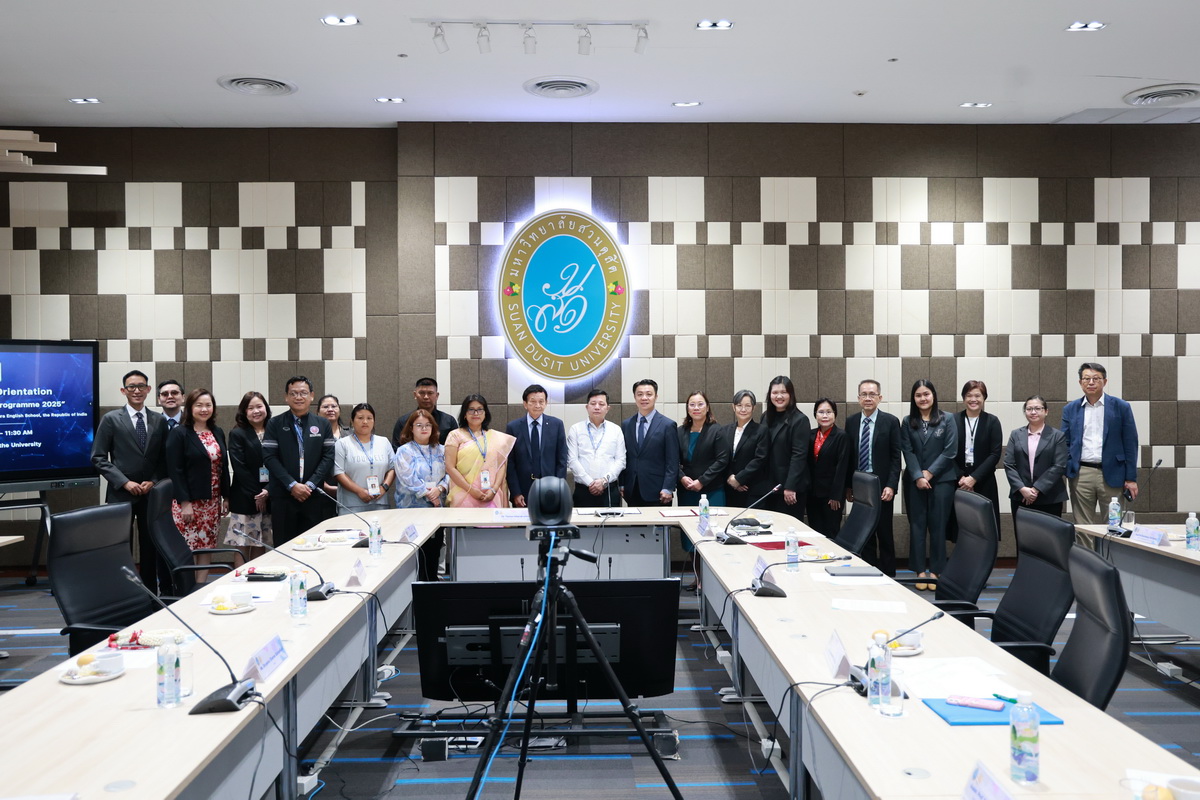 ศูนย์ประสานงานนักศึกษานานาชาติ คณะมนุษยศาสตร์และสังคมศาสตร์ จัดกิจกรรมปฐมนิเทศให้แก่คณะผู้บริหาร ครู และนักเรียนจาก Pitambara English School รัฐมณีปุระ สาธารณรัฐอินเดีย ในวันที่ 28 สิงหาคม 2568 ณ ห้องประชุมชั้น 5 สำนักงานมหาวิทยาลัย ซึ่งเป็นกิจกรรมหนึ่งของโครงการมหาวิทยาลัยสวนดุสิต โครงการ “Language and Cultural Exchange Programme 2025” โดยคณะครุศาสตร์ คณะมนุษยศาสตร์และสังคมศาสตร์ และโรงเรียนสาธิตละอออุทิศ กิจกรรมปฐมนิเทศนี้ได้รับเกียรติจาก ดร. ถนอม อินทรกำเนิด นายกสภามหาวิทยาลัยสวนดุสิตเป็นประธานกล่าวเปิดงาน และรองศาสตราจารย์ ดร. สุขุม เฉลยทรัพย์ ประธานที่ปรึกษาอธิการบดี มหาวิทยาลัยสวนดุสิต ผู้ช่วยศาสตราจารย์ ดร. พรชณิตว์ แก้วเนตร รองอธิการบดีฝ่ายวิชาการและกิจการต่างประเทศ ดร. พันธรักษ์ ผูกพันธุ์ ผู้ช่วยอธิการบดี พร้อมด้วยรองศาสตราจารย์ ดร. ยุทธพงษ์ ลีลากิจไพศาล คณบดีคณะมนุษยศาสตร์และสังคมศาสตร์ ผู้ช่วยศาสตราจารย์ ดร.วีณัฐ สกุลหอม คณบดีคณะครุศาสตร์ รวมทั้งคณาจารย์และนักศึกษาให้การต้อนรับ