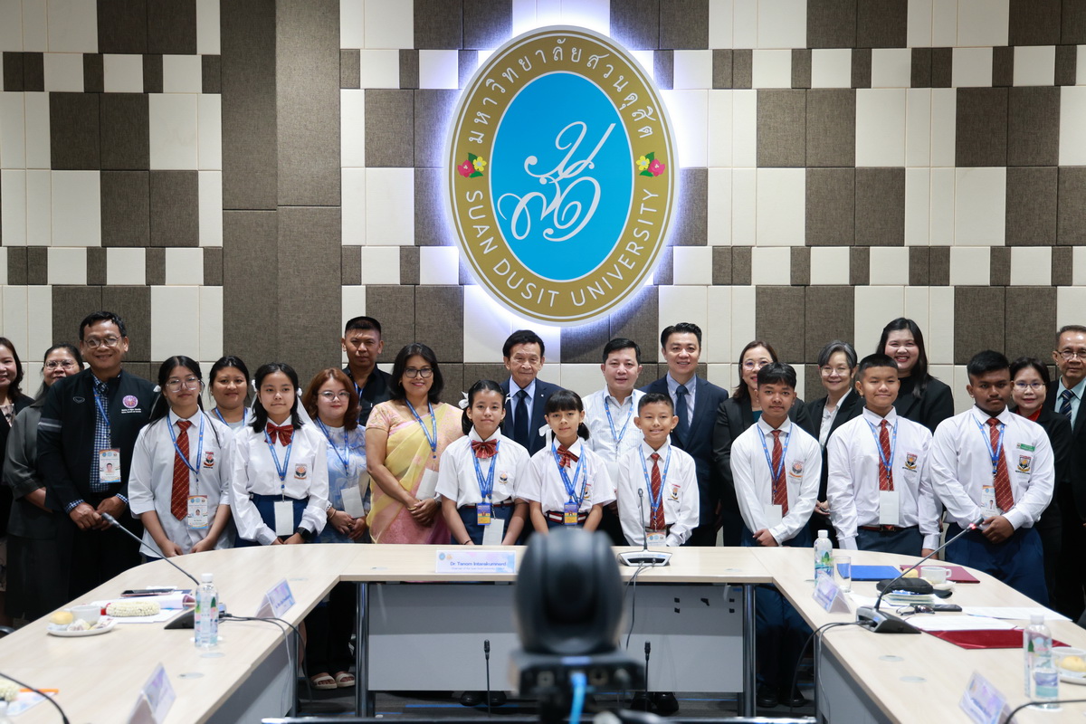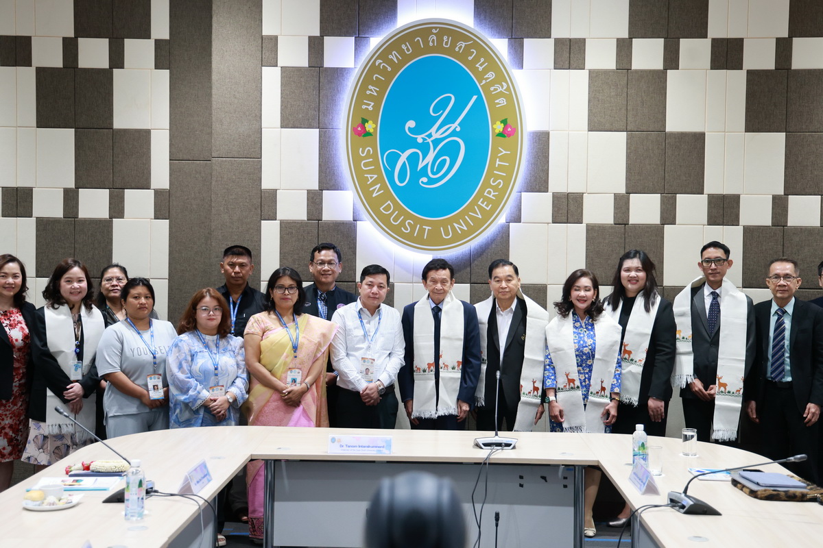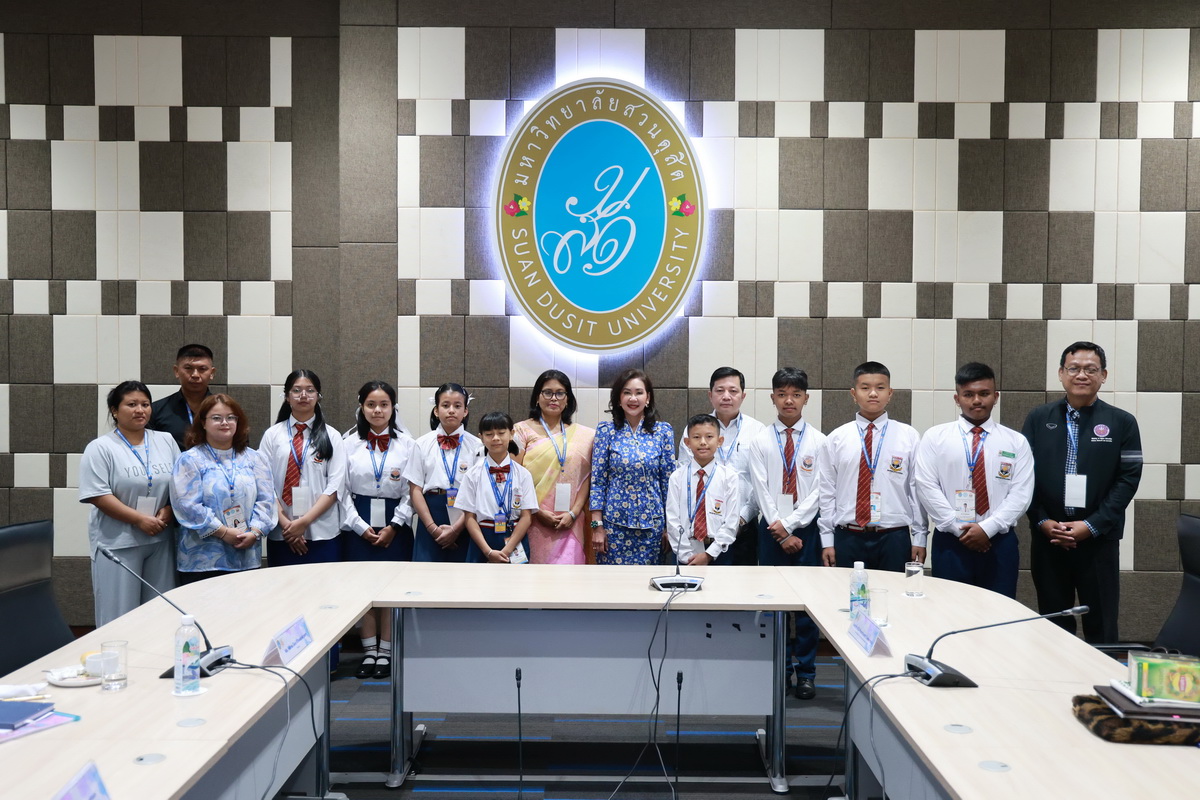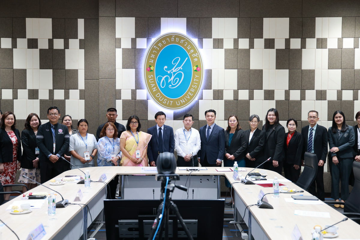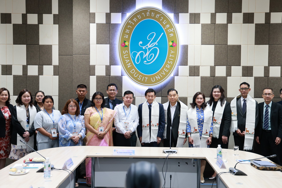 ศูนย์ประสานงานนักศึกษานานาชาติ คณะมนุษยศาสตร์และสังคมศาสตร์ จัดกิจกรรมปฐมนิเทศให้แก่คณะผู้บริหาร ครู และนักเรียนจาก Pitambara English School รัฐมณีปุระ สาธารณรัฐอินเดีย ในวันที่ 28 สิงหาคม 2568 ณ ห้องประชุมชั้น 5 สำนักงานมหาวิทยาลัย ซึ่งเป็นกิจกรรมหนึ่งของโครงการมหาวิทยาลัยสวนดุสิต โครงการ “Language and Cultural Exchange Programme 2025” โดยคณะครุศาสตร์ คณะมนุษยศาสตร์และสังคมศาสตร์ และโรงเรียนสาธิตละอออุทิศ กิจกรรมปฐมนิเทศนี้ได้รับเกียรติจาก ดร. ถนอม อินทรกำเนิด นายกสภามหาวิทยาลัยสวนดุสิตเป็นประธานกล่าวเปิดงาน และรองศาสตราจารย์ ดร. สุขุม เฉลยทรัพย์ ประธานที่ปรึกษาอธิการบดี มหาวิทยาลัยสวนดุสิต ผู้ช่วยศาสตราจารย์ ดร. พรชณิตว์ แก้วเนตร รองอธิการบดีฝ่ายวิชาการและกิจการต่างประเทศ ดร. พันธรักษ์ ผูกพันธุ์ ผู้ช่วยอธิการบดี พร้อมด้วยรองศาสตราจารย์ ดร. ยุทธพงษ์ ลีลากิจไพศาล คณบดีคณะมนุษยศาสตร์และสังคมศาสตร์ ผู้ช่วยศาสตราจารย์ ดร.วีณัฐ สกุลหอม คณบดีคณะครุศาสตร์ รวมทั้งคณาจารย์และนักศึกษาให้การต้อนรับ