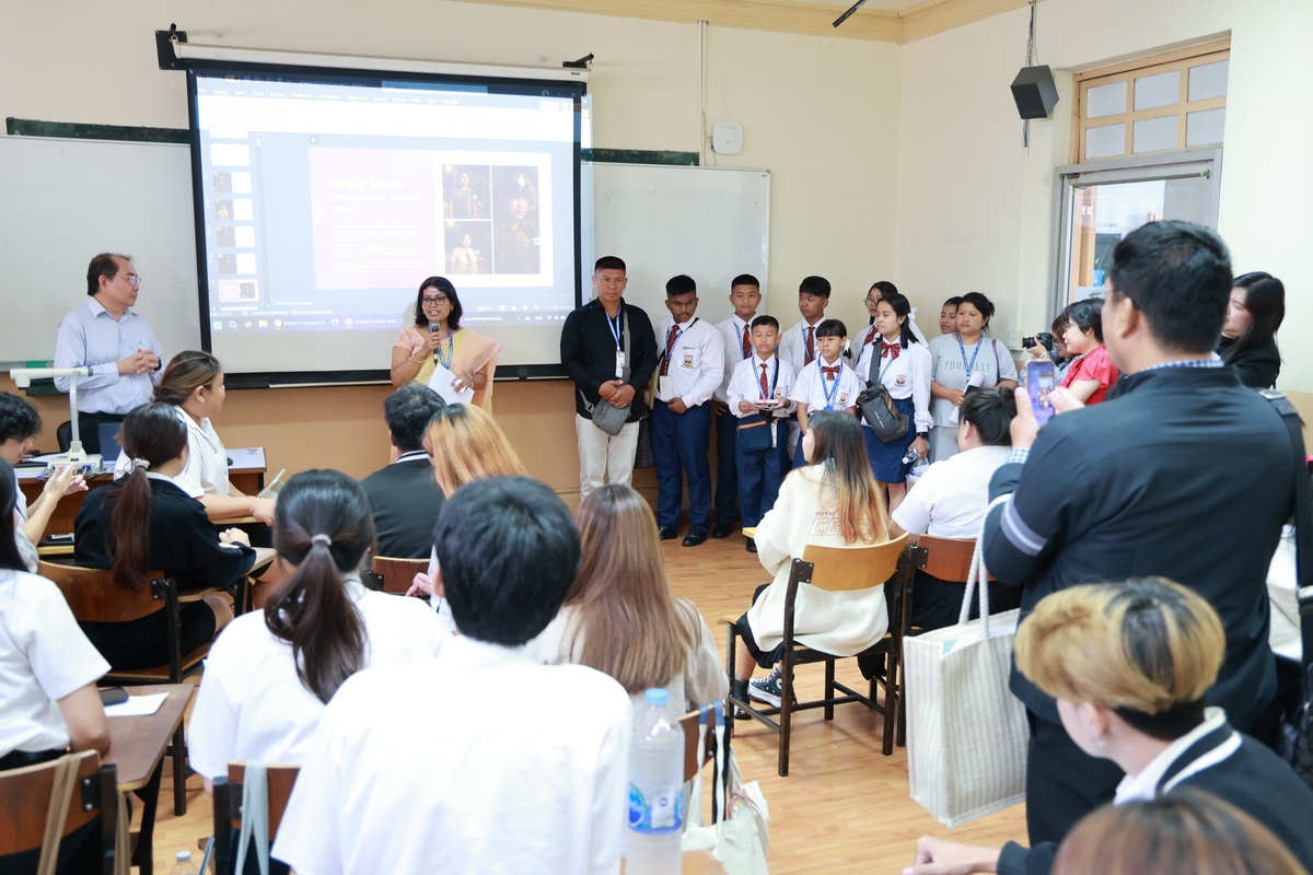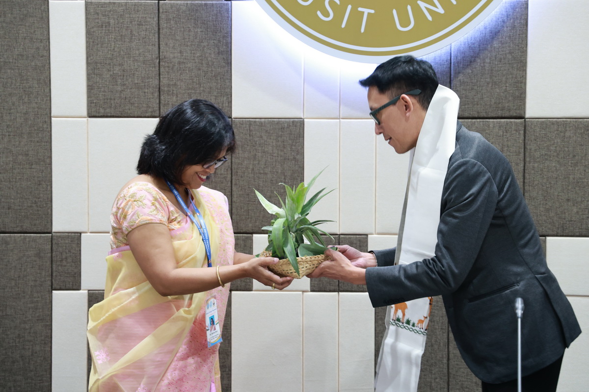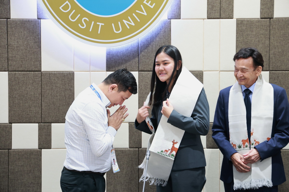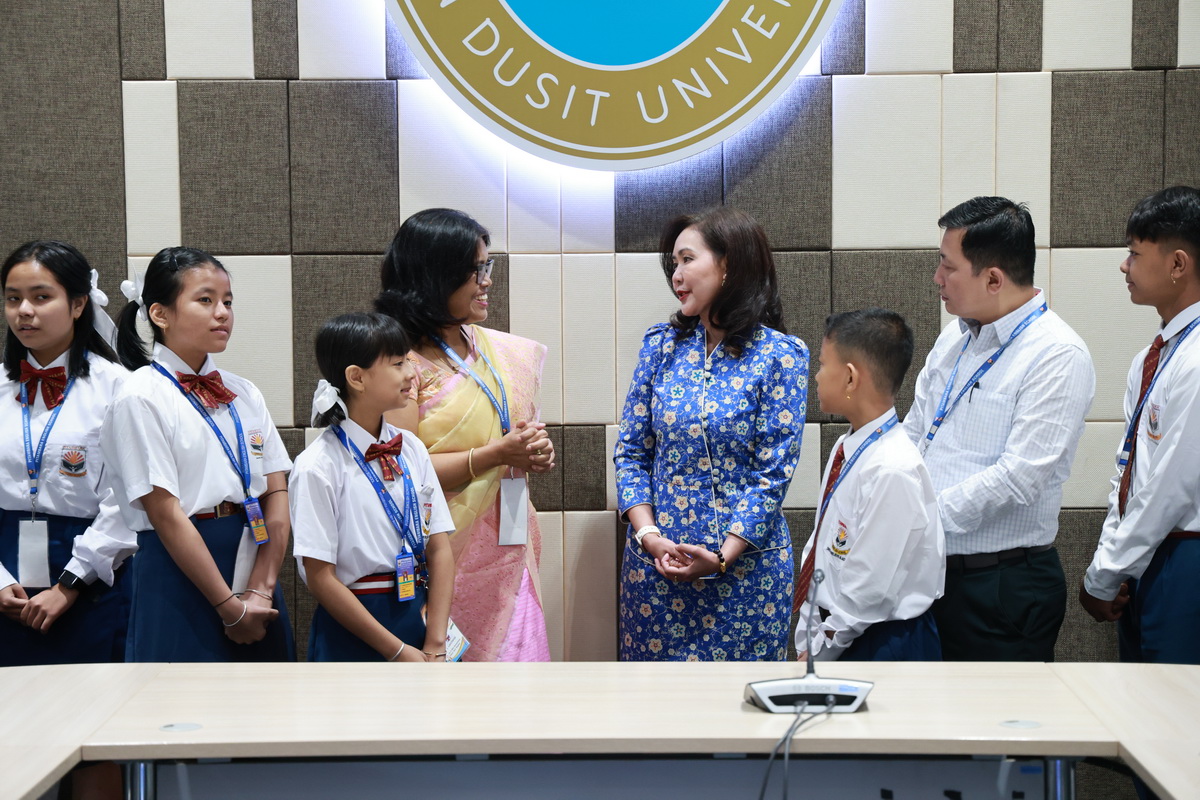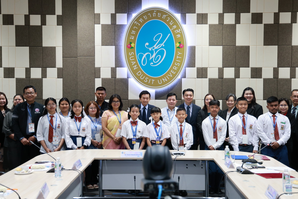 ศูนย์ประสานงานนักศึกษานานาชาติ คณะมนุษยศาสตร์และสังคมศาสตร์ จัดกิจกรรมปฐมนิเทศให้แก่คณะผู้บริหาร ครู และนักเรียนจาก Pitambara English School รัฐมณีปุระ สาธารณรัฐอินเดีย ในวันที่ 28 สิงหาคม 2568 ณ ห้องประชุมชั้น 5 สำนักงานมหาวิทยาลัย ซึ่งเป็นกิจกรรมหนึ่งของโครงการมหาวิทยาลัยสวนดุสิต โครงการ “Language and Cultural Exchange Programme 2025” โดยคณะครุศาสตร์ คณะมนุษยศาสตร์และสังคมศาสตร์ และโรงเรียนสาธิตละอออุทิศ กิจกรรมปฐมนิเทศนี้ได้รับเกียรติจาก ดร. ถนอม อินทรกำเนิด นายกสภามหาวิทยาลัยสวนดุสิตเป็นประธานกล่าวเปิดงาน และรองศาสตราจารย์ ดร. สุขุม เฉลยทรัพย์ ประธานที่ปรึกษาอธิการบดี มหาวิทยาลัยสวนดุสิต ผู้ช่วยศาสตราจารย์ ดร. พรชณิตว์ แก้วเนตร รองอธิการบดีฝ่ายวิชาการและกิจการต่างประเทศ ดร. พันธรักษ์ ผูกพันธุ์ ผู้ช่วยอธิการบดี พร้อมด้วยรองศาสตราจารย์ ดร. ยุทธพงษ์ ลีลากิจไพศาล คณบดีคณะมนุษยศาสตร์และสังคมศาสตร์ ผู้ช่วยศาสตราจารย์ ดร.วีณัฐ สกุลหอม คณบดีคณะครุศาสตร์ รวมทั้งคณาจารย์และนักศึกษาให้การต้อนรับ