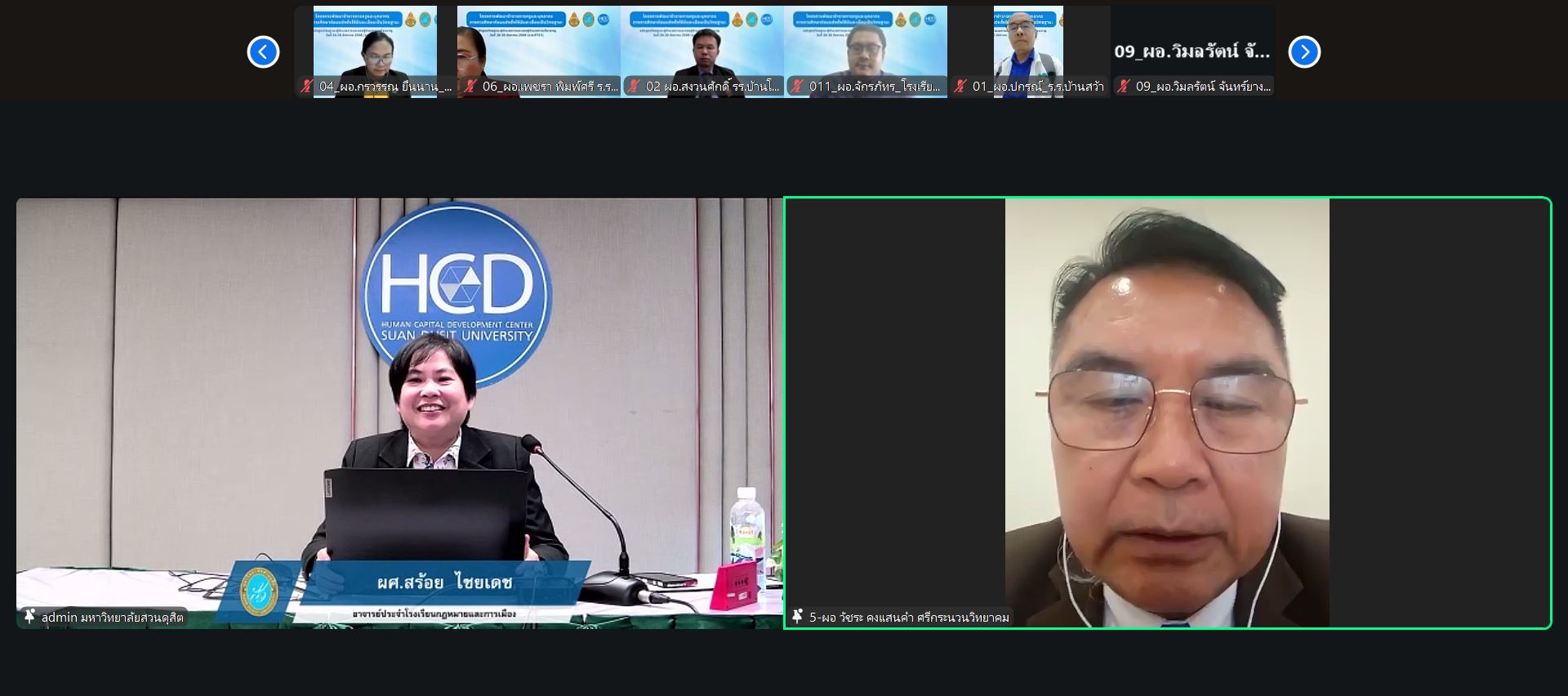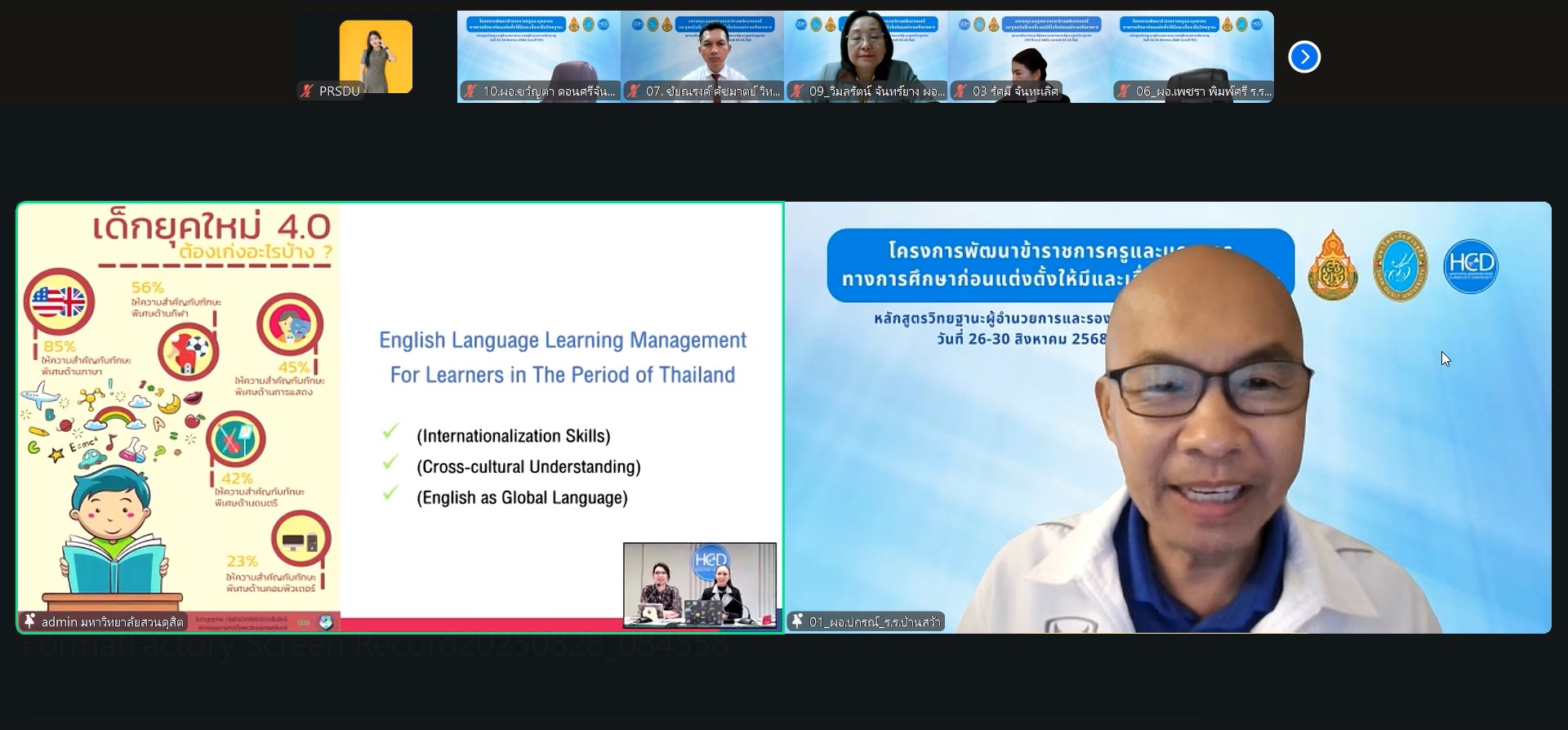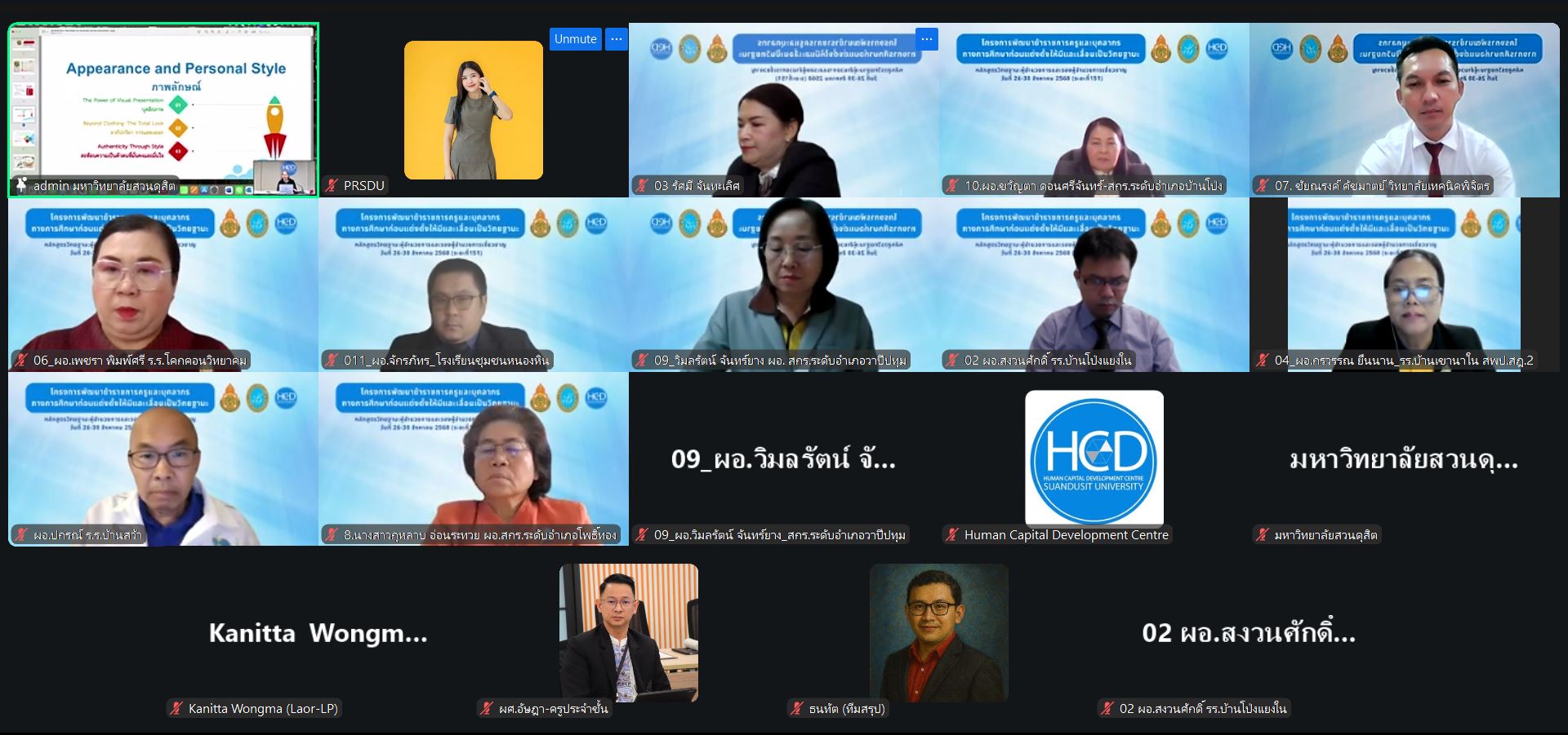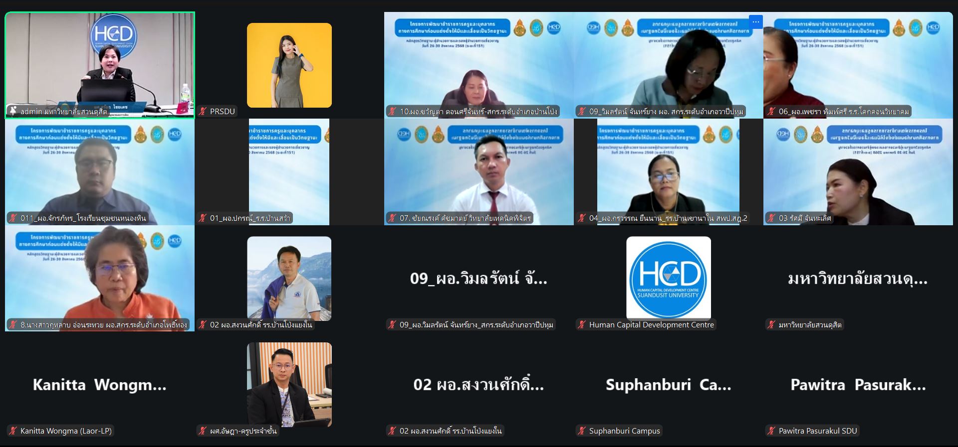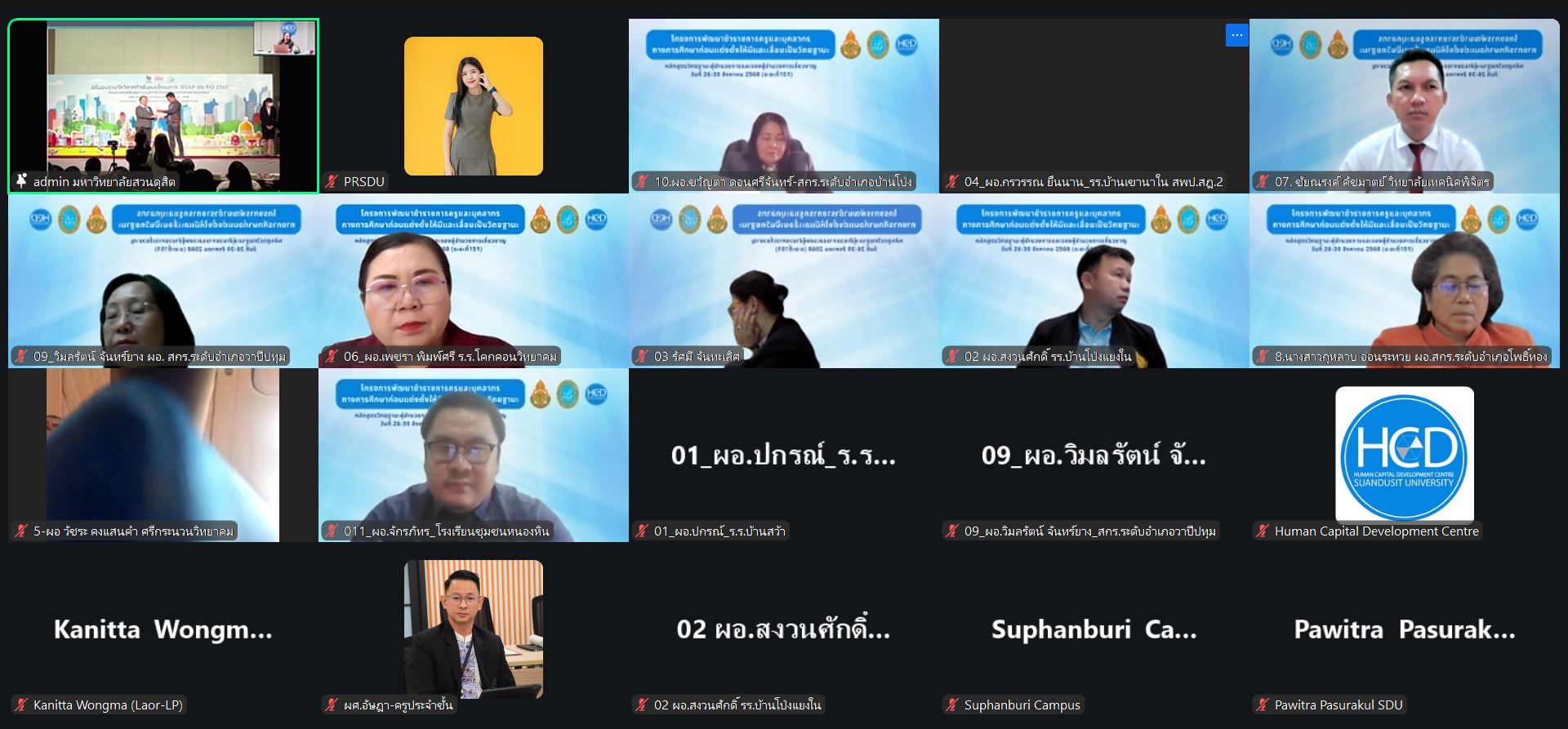 ศูนย์พัฒนาทุนมนุษย์ มหาวิทยาลัยสวนดุสิต อบรมหลักสูตรพัฒนาข้าราชการครูและบุคลากรทางการศึกษาก่อนแต่งตั้งให้มีและเลื่อนเป็นวิทยฐานะผู้อำนวยการและรองผู้อำนวยการเชี่ยวชาญ (ระยะที่ 151) ระหว่างวันที่ 26-30 สิงหาคม 2568 โดยการอบรมวันที่ 3 ได้รับเกียรติจากวิทยากรผู้ถ่ายทอดองค์ความรู้ของมหาวิทยาลัยสวนดุสิต ดังนี้
