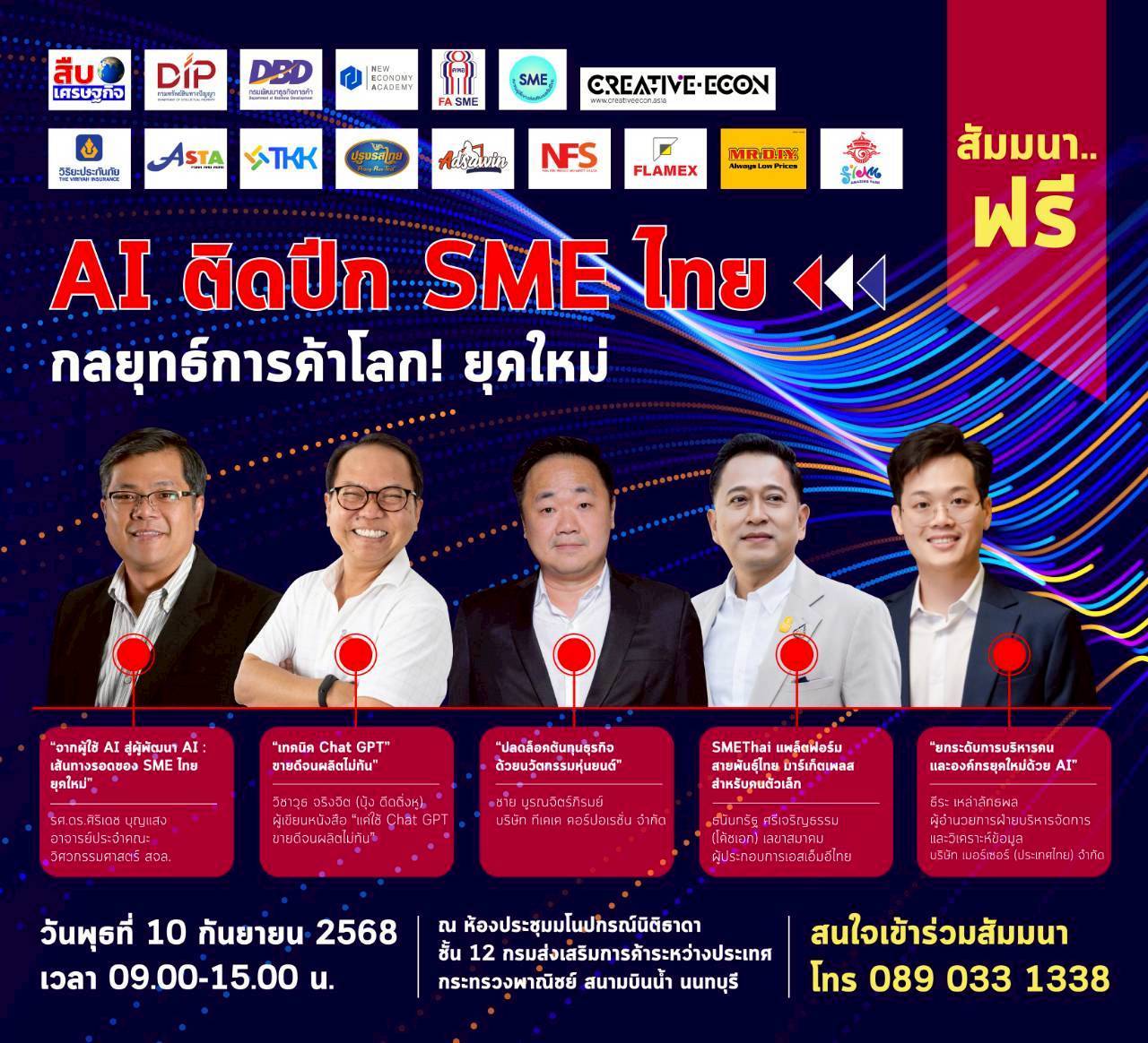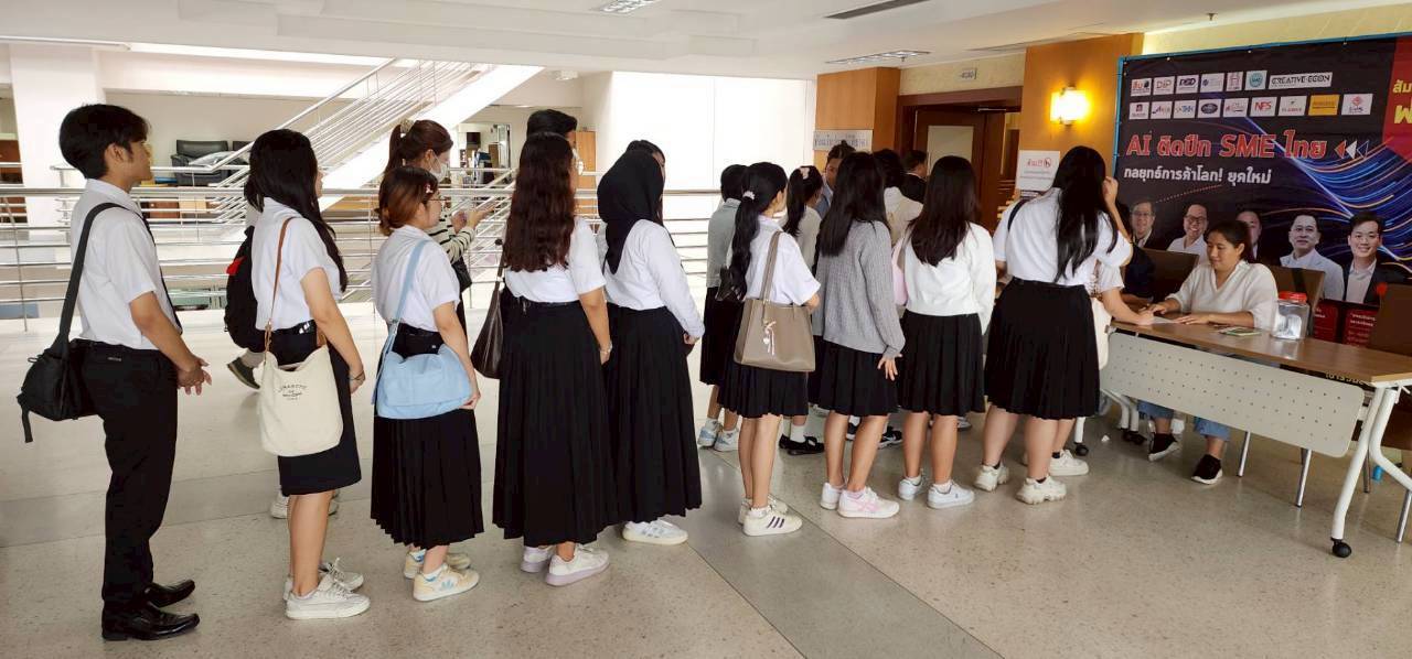 วันที่ 10 กันยายน 2568 — ศูนย์สนเทศแนะแนวการศึกษาและอาชีพ มหาวิทยาลัยสวนดุสิต นำนักศึกษาจำนวน 30 คน เข้าร่วมสัมมนาวิชาการระดับประเทศ “AI ติดปีก SME ไทย กลยุทธ์การค้าโลก! ยุคใหม่” จัดโดย CREATIVE ECON สำนักข่าวเศรษฐกิจสร้างสรรค์ และรายการ “สืบเศรษฐกิจ” ร่วมกับหน่วยงานพันธมิตรหลายภาคส่วน อาทิ กรมทรัพย์สินทางปัญญา กรมพัฒนาธุรกิจการค้า และกรมส่งเสริมการค้าระหว่างประเทศ กระทรวงพาณิชย์ ณ ห้องประชุมมโนปกรณ์นิติธาดา ชั้น ๑๒ สนามบินน้ำ จ.นนทบุรี