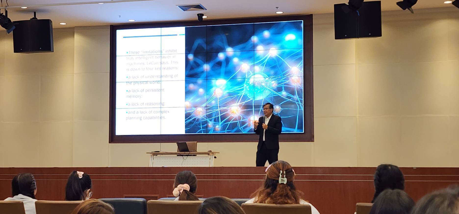 ภายในงานสัมมนาครั้งนี้ นักศึกษาได้รับโอกาสเรียนรู้เกี่ยวกับ บทบาทของ AI กับการพัฒนาผู้ประกอบการ SME ไทย และ กลยุทธ์การค้าในยุคดิจิทัล ผ่านหัวข้อบรรยายที่เข้มข้นจากผู้เชี่ยวชาญ 4 ท่าน ได้แก่ จากผู้ใช้ AI สู่ผู้พัฒนา AI : เส้นทางรอดของ SME ไทยยุคใหม่ โดย รศ.ดร.ศิริเดช บุญแสง คณะวิศวกรรมศาสตร์ สจล.