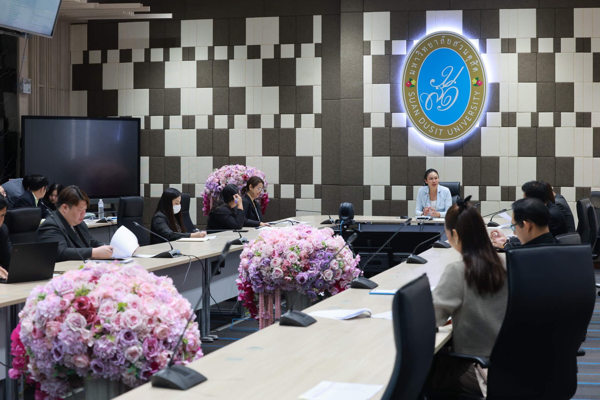 ดร.สุวิชชา เนียมสอน ผู้ช่วยอธิการบดีฝ่ายการพัฒนาคุณภาพสู่ความเป็นเลิศ มหาวิทยาลัยสวนดุสิต เป็นประธานการประชุมเตรียมความพร้อมร่วมกับคณะทำงาน การตรวจประเมินคุณภาพการศึกษาภายใน ระดับมหาวิทยาลัย มหาวิทยาลัยสวนดุสิต ประจำปีการศึกษา 2567 ในวันที่ 6-8 ตุลาคม 2568 ณ มหาวิทยาลัยสวนดุสิต กรุงเทพมหานคร และวิทยาเขตสุพรรณบุรี เมื่อวันพุธที่ 17 กันยายน 2568 ณ ห้องประชุมชั้น 5 อาคารสำนักงานมหาวิทยาลัย