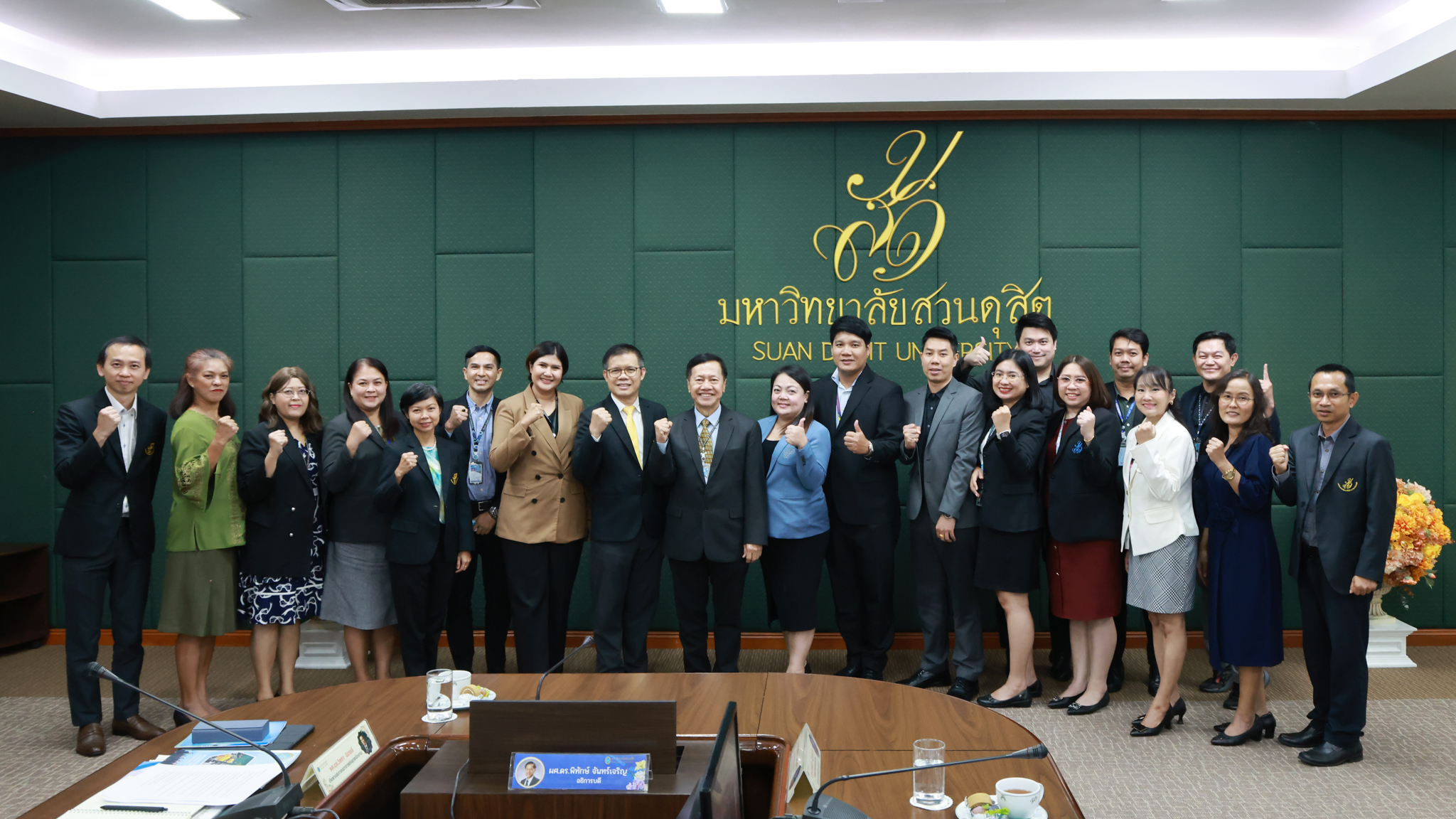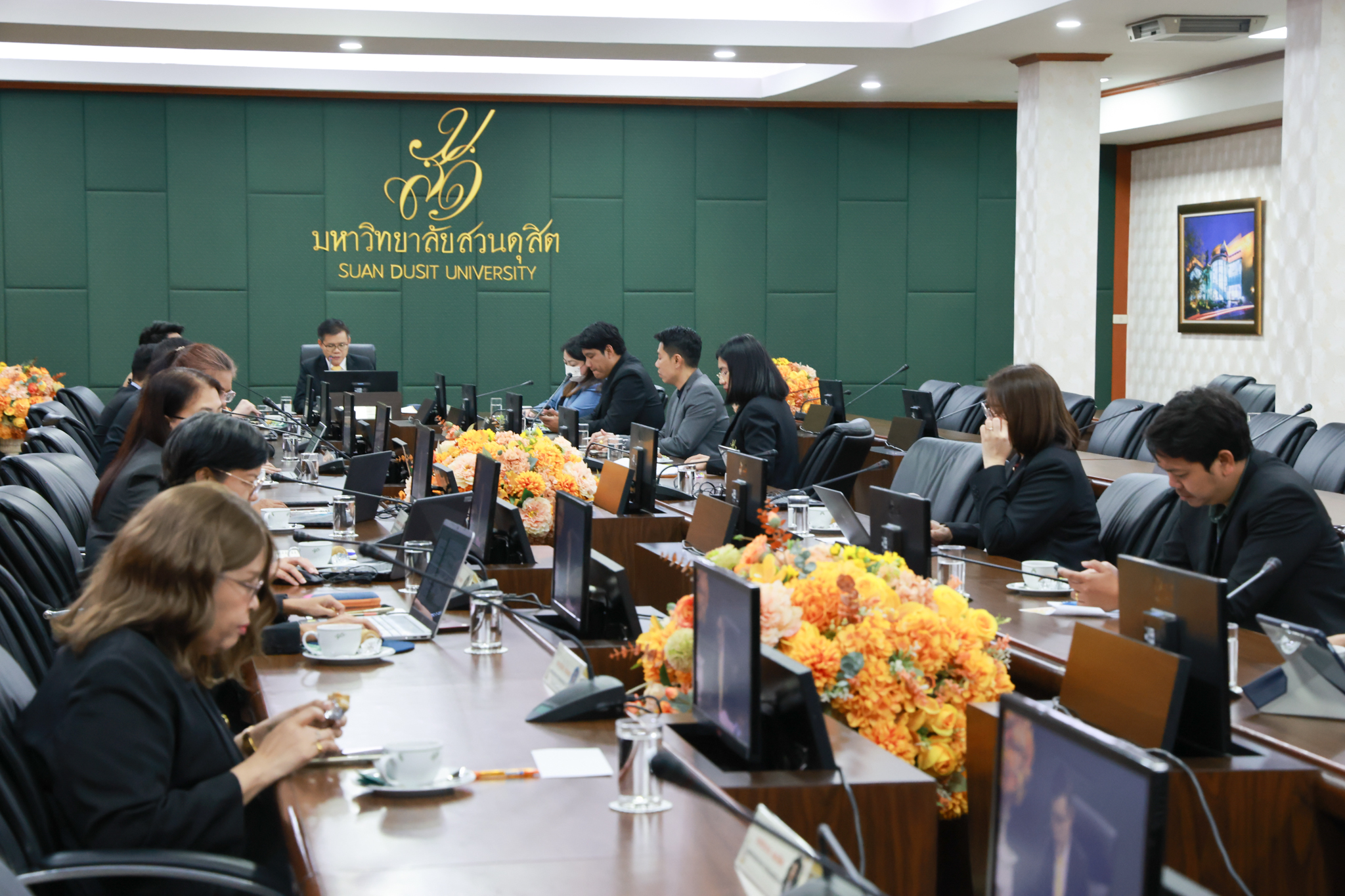รองศาสตราจารย์.ดร.วิชชา ฉิมพลี ประธานสภาคณาจารย์และพนักงาน มหาวิทยาลัยสวนดุสิต เป็นประธานในการประชุมสภาคณาจารย์และพนักงาน มหาวิทยาลัยสวนดุสิต ครั้งที่ 2/2568 โดยมีเรื่องเสนอเพื่อพิจารณา การพิจารณาเลือกผู้แทนสภาคณาจารย์และพนักงาน เป็นกรรมการในคณะกรรมการอุทธรณ์และร้องทุกข์การบริหารงานบุคคล (ร่าง) แผนการดำเนินงานของสภาคณาจารย์และพนักงาน ประจำปีงบประมาณ พ.ศ. 2568 – 2571 การหารือประเด็นกิจกรรม “สภาคณาจารย์และพนักงาน ชุดใหม่… กับความตั้งใจเพื่อบุคลากร มสด.” ฯลฯ ในการนี้ ผู้ช่วยศาสตราจารย์ ดร.พิทักษ์ จันทร์เจริญ อธิการบดีมหาวิทยาลัยสวนดุสิต มอบนโยบายและแนวทางการดำเนินงานของสภาคณาจารย์และพนักงานด้วย เมื่อวันพุธที่ 17 กันยายน 2568 ณ ห้องประชุมลำพอง 2 มหาวิทยาลัยสวนดุสิต