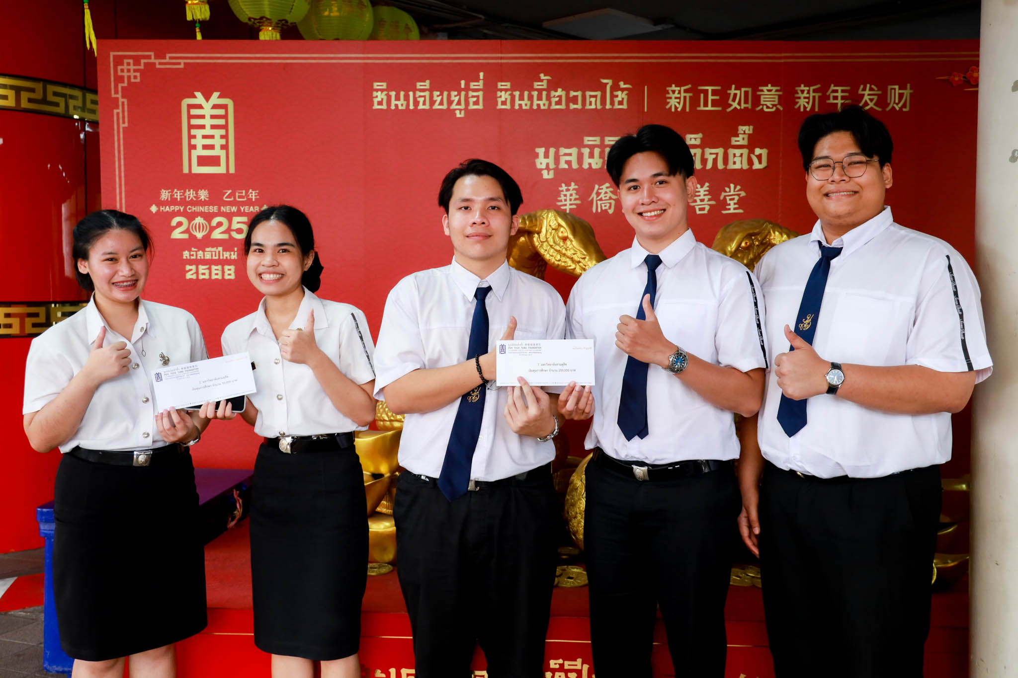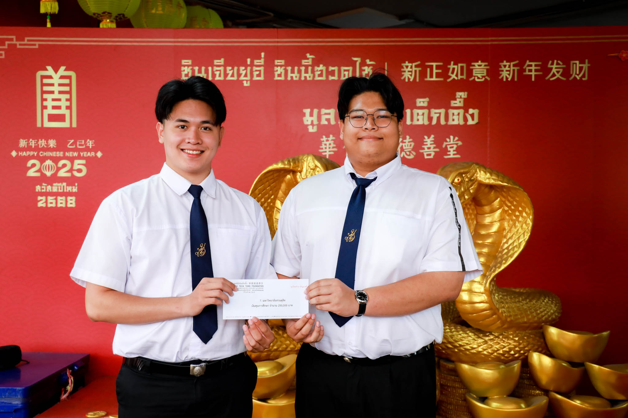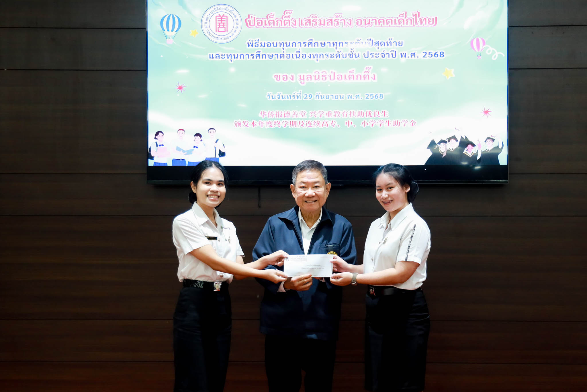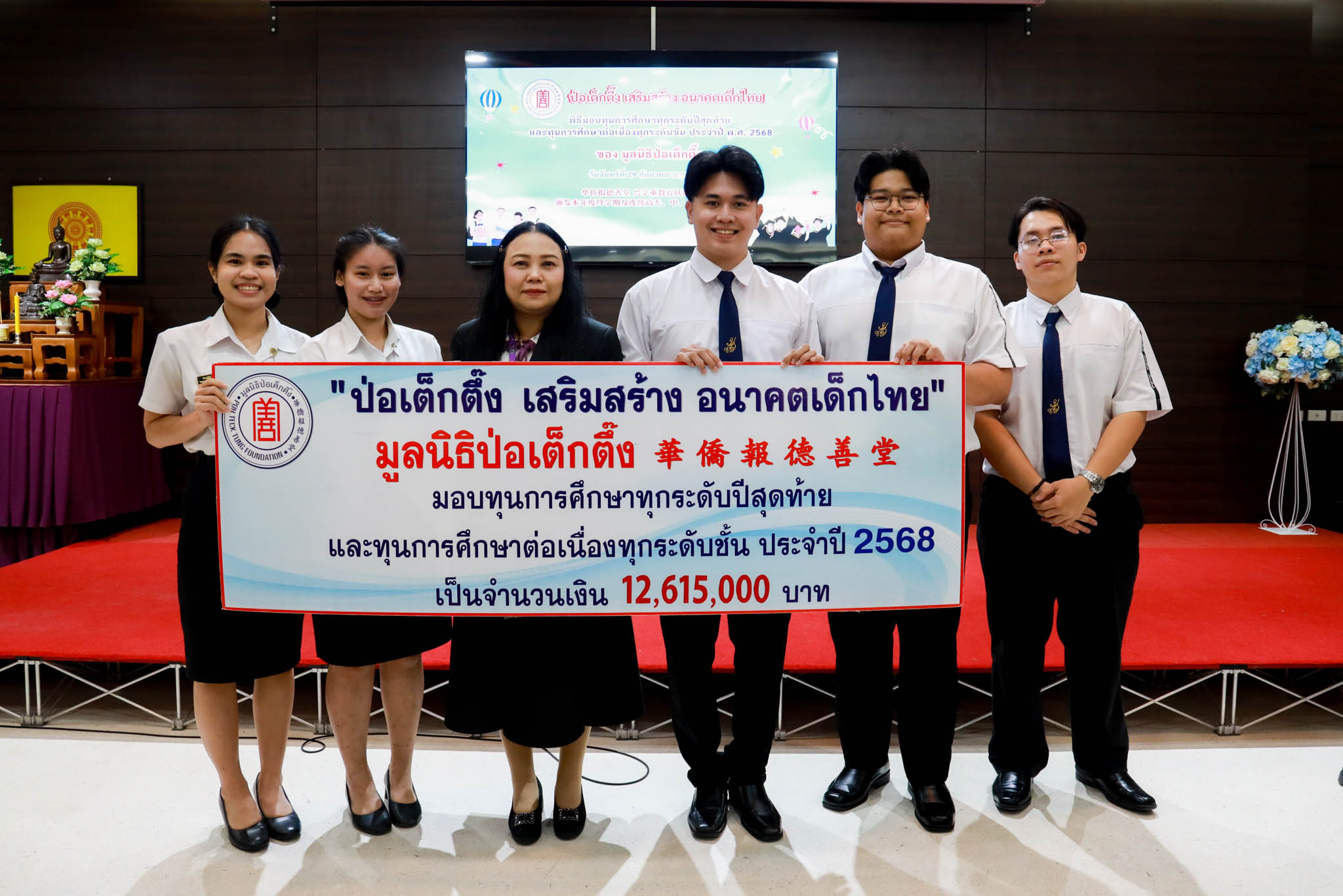 เมื่อวันที่ 29 กันยายน 2568 ศูนย์สนเทศแนะแนวการศึกษาและอาชีพ มหาวิทยาลัยสวนดุสิต ได้นำนักศึกษาตัวแทน 4 คน เข้าร่วมพิธีมอบทุนการศึกษา (ทุนต่อเนื่อง) และทุนการศึกษาปีสุดท้าย ประจำปี 2568 ของ มูลนิธิป่อเต็กตึ๊ง ณ ห้องประชุมชั้น 2 อาคาร 2 มูลนิธิป่อเต็กตึ๊ง ถนนพลับพลาไชย เขตป้อมปราบฯ กรุงเทพมหานคร ทั้งนี้ นักศึกษามหาวิทยาลัยสวนดุสิต ได้รับทุนการศึกษาทั้งหมด 12 คน โดยมีนักศึกษาตัวแทนเดินทางไปร่วมพิธีรับมอบทุนในครั้งนี้ พร้อมด้วย ผู้อำนวยการศูนย์สนเทศแนะแนวการศึกษาและอาชีพ เพื่อร่วมเป็นกำลังใจให้แก่นักศึกษา โดยกิจกรรมดังกล่าวสะท้อนถึงความมุ่งมั่นของมหาวิทยาลัยในการสนับสนุนโอกาสทางการศึกษาและช่วยเสริมสร้างคุณภาพชีวิตแก่นักศึกษา พร้อมสร้างเครือข่ายความร่วมมือกับภาคีภายนอกเพื่อการพัฒนานักศึกษาอย่างยั่งยืน
