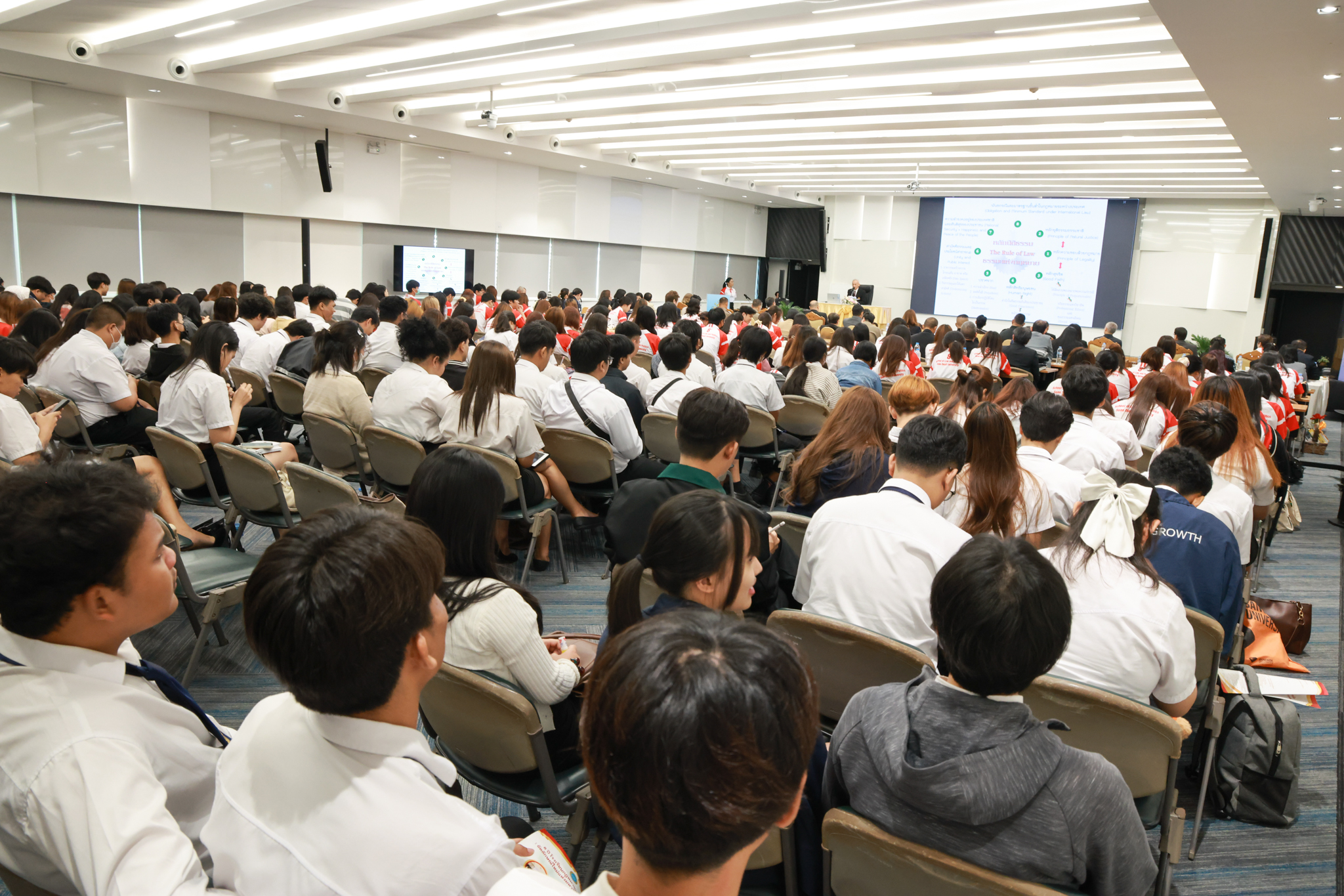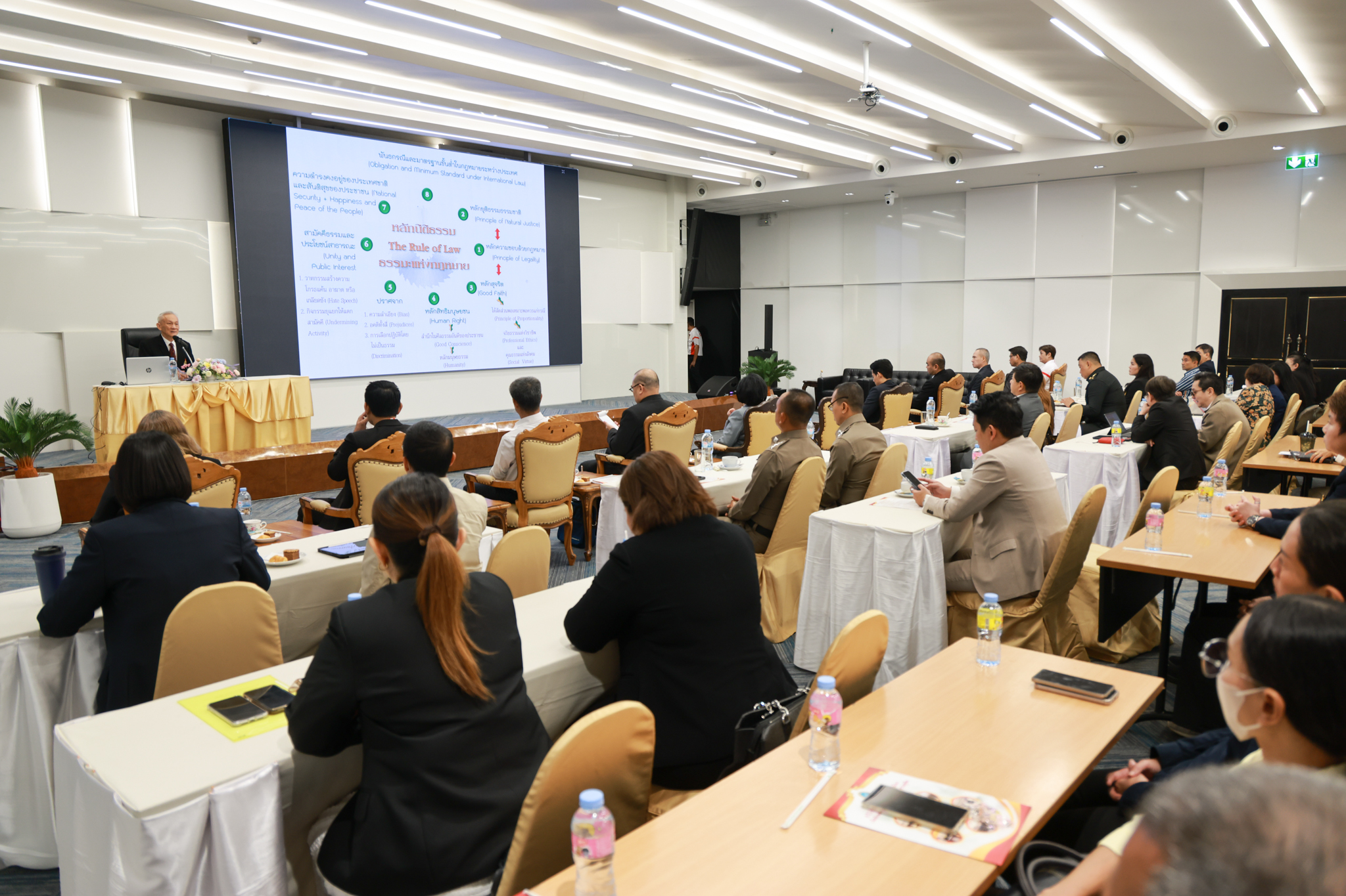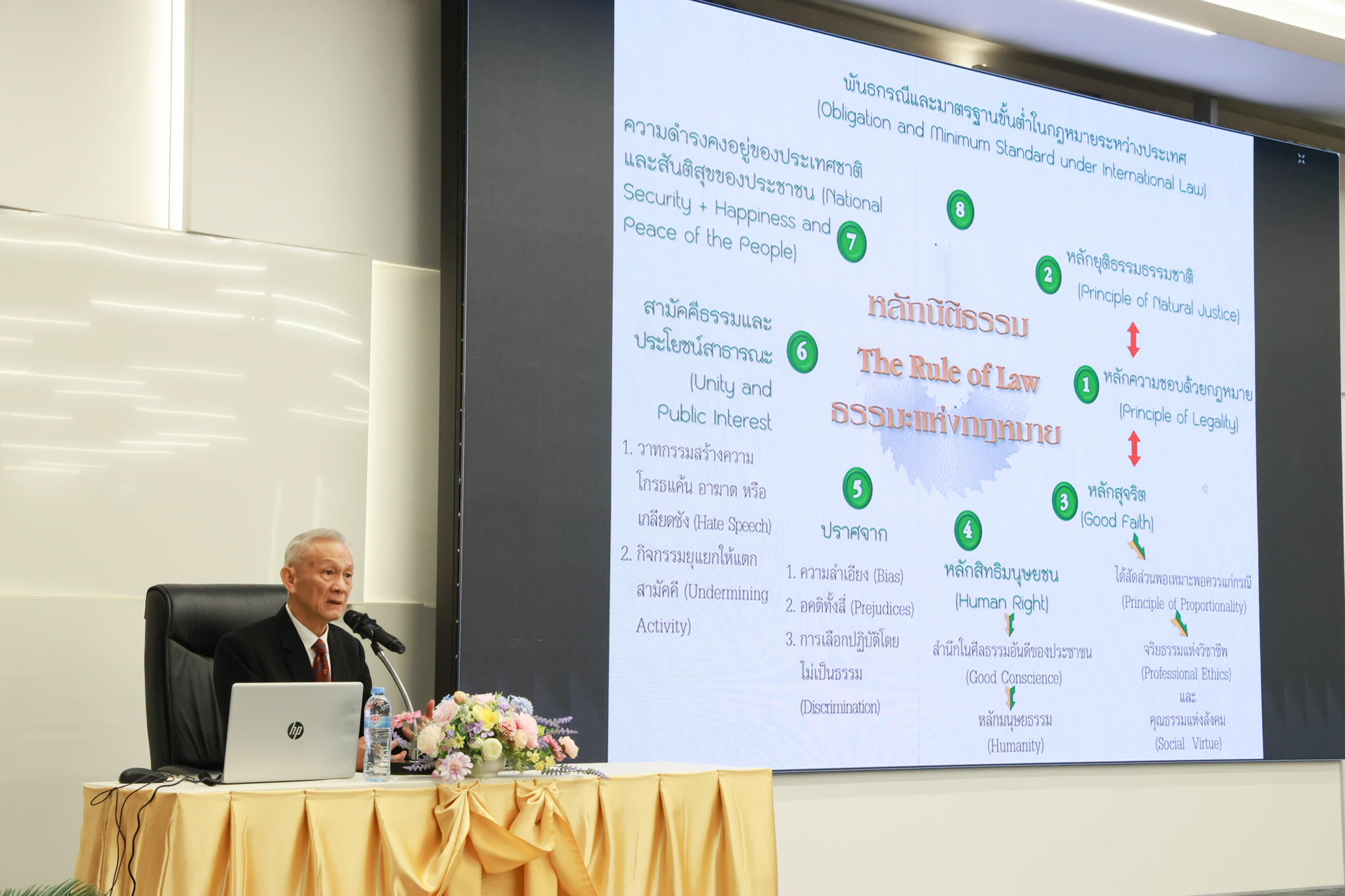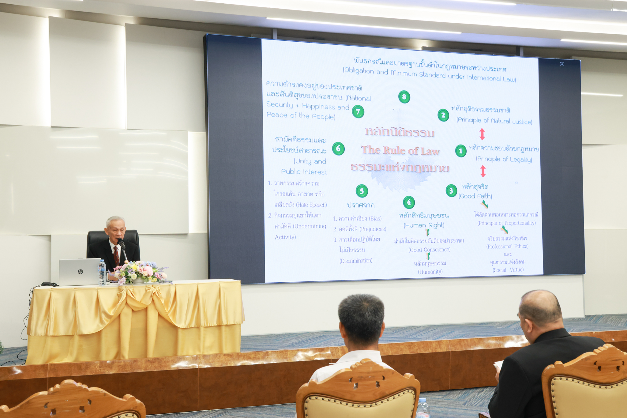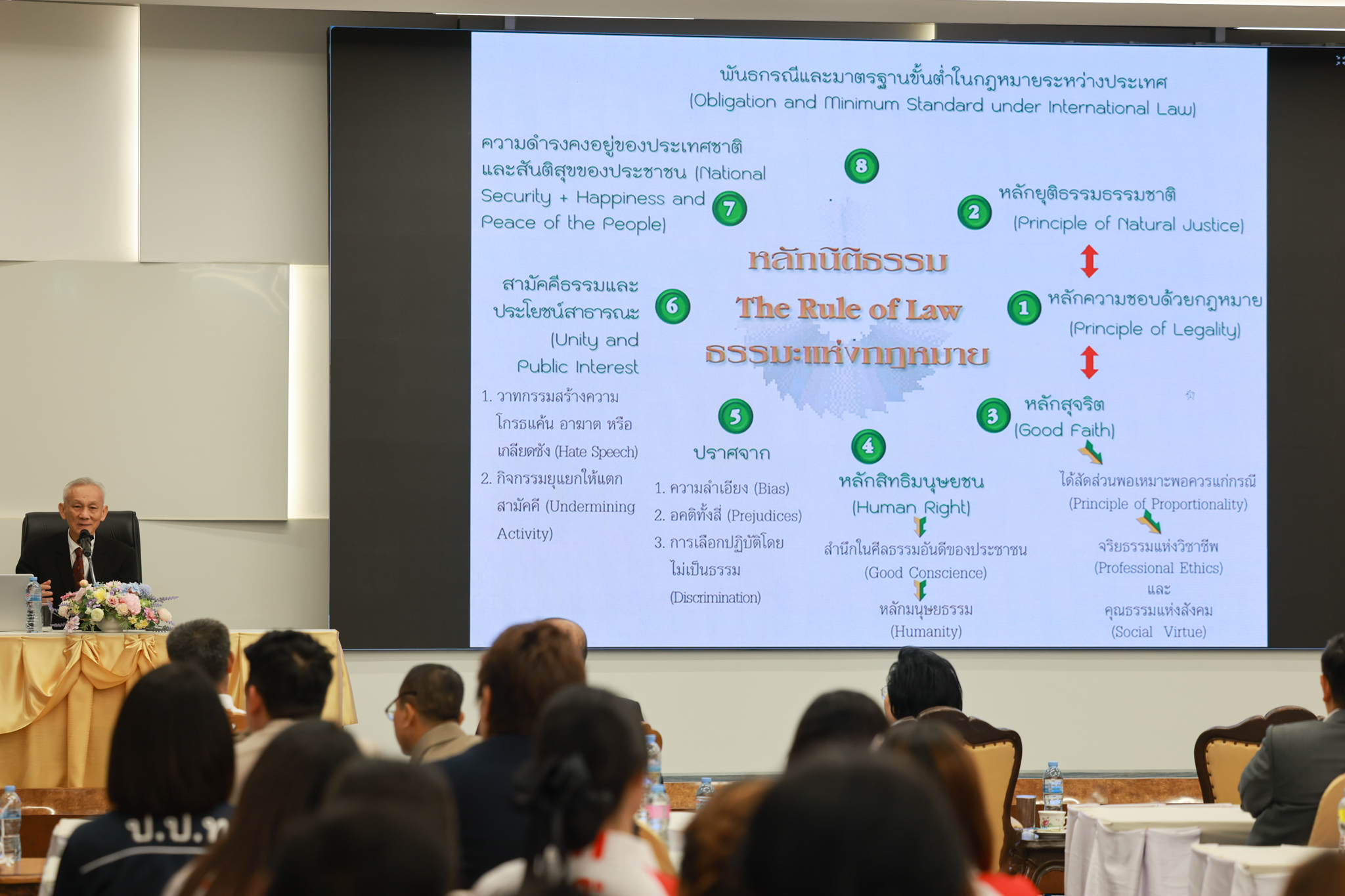 โรงเรียนกฎหมายและการเมือง จัดปาฐกถาพิเศษและเสวนาวิชาการ ในโอกาส ครบรอบ 8 ปี โรงเรียนกฎหมายและการเมือง : อัตลักษณ์ใหม่แห่งมหาวิทยาลัยสวนดุสิต โดย รศ.ดร.ธนภัทร ปัจฉิมม์ ประธานกรรมการดำเนินงาน กล่าวต้อนรับและวัตถุประสงค์การดำเนินงาน กิจกรรมในช่วงแรก ปาฐกถาพิเศษ ได้รับเกียรติจาก ศาสตราจารย์พิเศษ จรัญ ภักดีธนากุล อดีตตุลาการศาลรัฐธรรมนูญ/กรรมการกฤษฎีกา คณะที่ 11 ในหัวข้อ ภาวะผู้นำกับหลักนิติธธรม : เส้นทางยุติธรรมในสังคมไทย โดยความร่วมมือของ โรงเรียนกฎหมายและการเมือง ร่วมกับ สถาบันศิโรจน์ ผลพันธิน