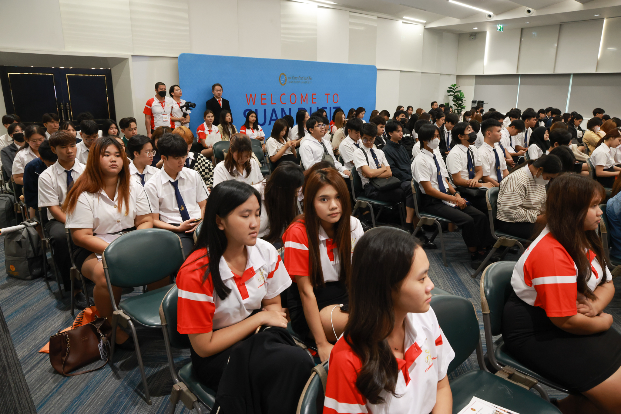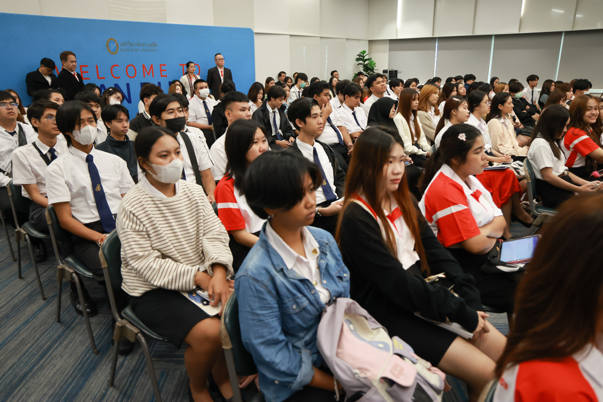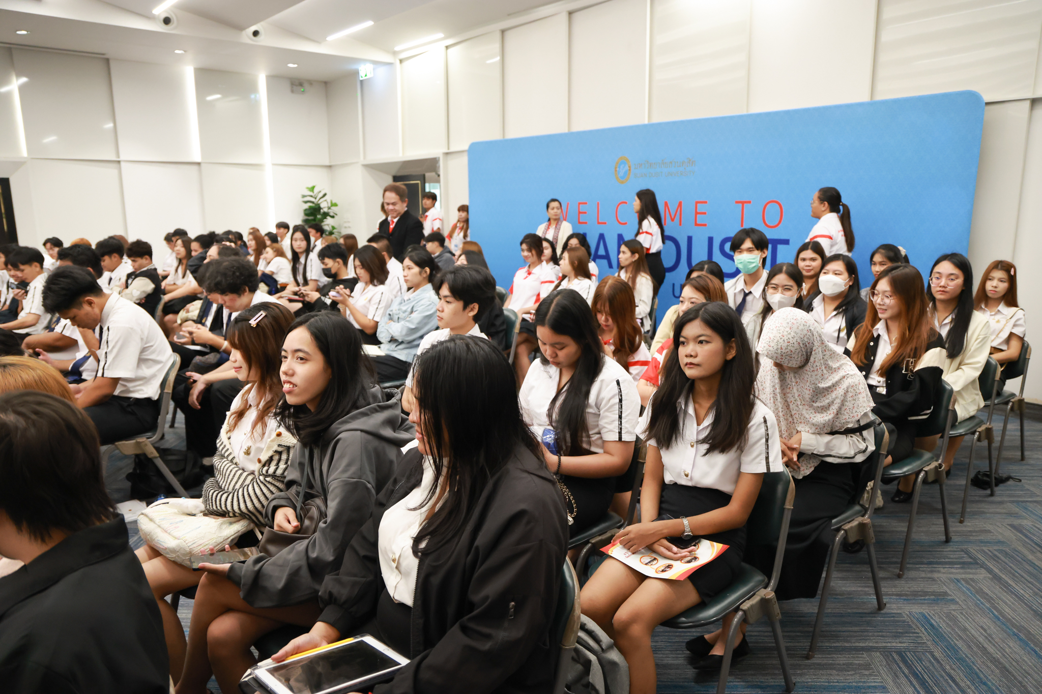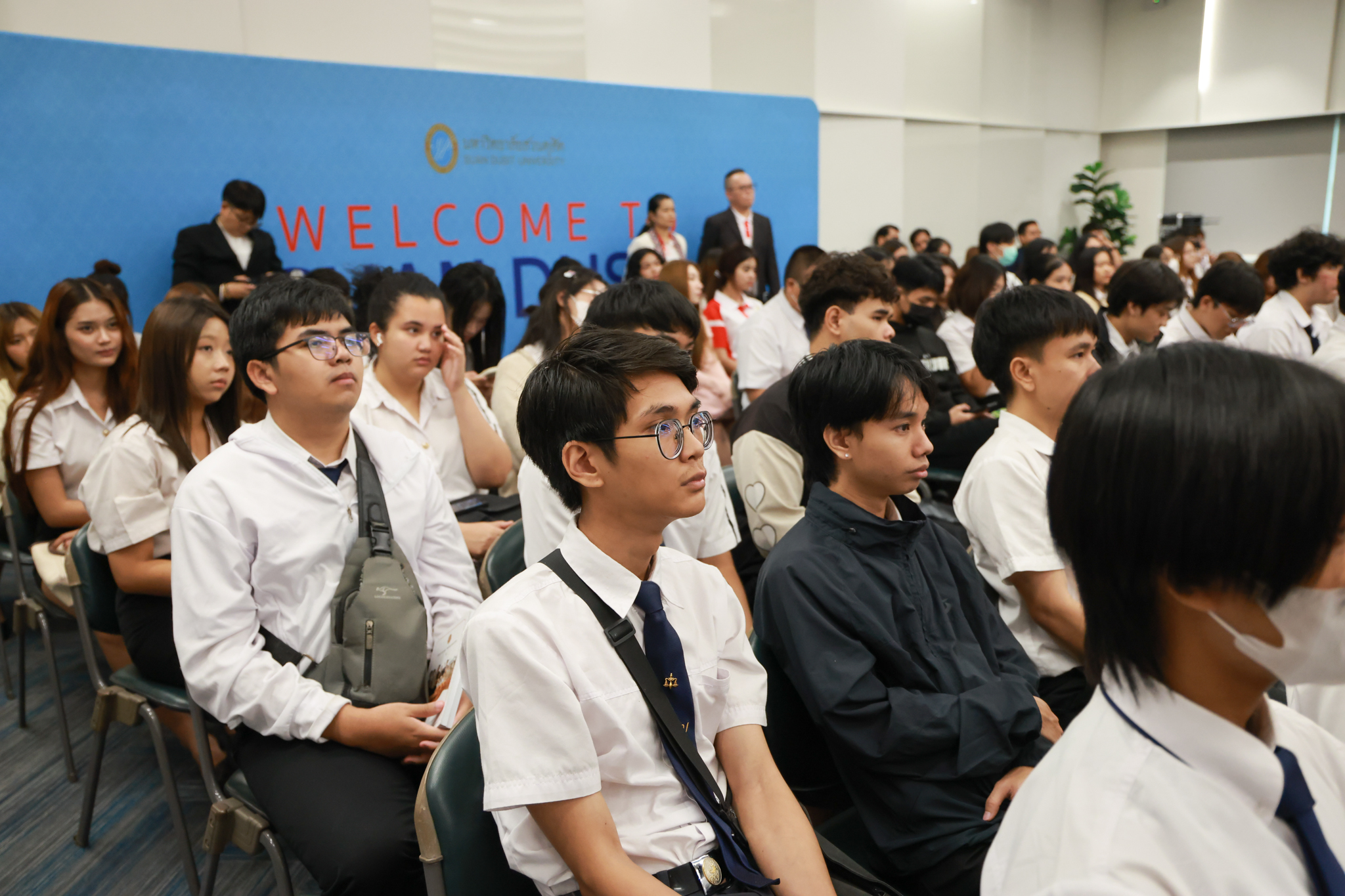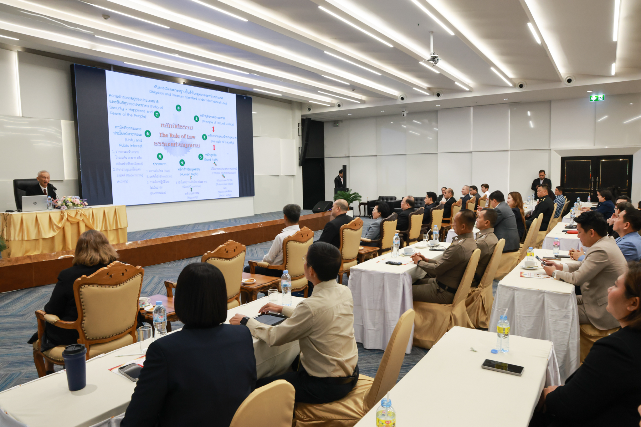 โรงเรียนกฎหมายและการเมือง จัดปาฐกถาพิเศษและเสวนาวิชาการ ในโอกาส ครบรอบ 8 ปี โรงเรียนกฎหมายและการเมือง : อัตลักษณ์ใหม่แห่งมหาวิทยาลัยสวนดุสิต โดย รศ.ดร.ธนภัทร ปัจฉิมม์ ประธานกรรมการดำเนินงาน กล่าวต้อนรับและวัตถุประสงค์การดำเนินงาน กิจกรรมในช่วงแรก ปาฐกถาพิเศษ ได้รับเกียรติจาก ศาสตราจารย์พิเศษ จรัญ ภักดีธนากุล อดีตตุลาการศาลรัฐธรรมนูญ/กรรมการกฤษฎีกา คณะที่ 11 ในหัวข้อ ภาวะผู้นำกับหลักนิติธธรม : เส้นทางยุติธรรมในสังคมไทย โดยความร่วมมือของ โรงเรียนกฎหมายและการเมือง ร่วมกับ สถาบันศิโรจน์ ผลพันธิน