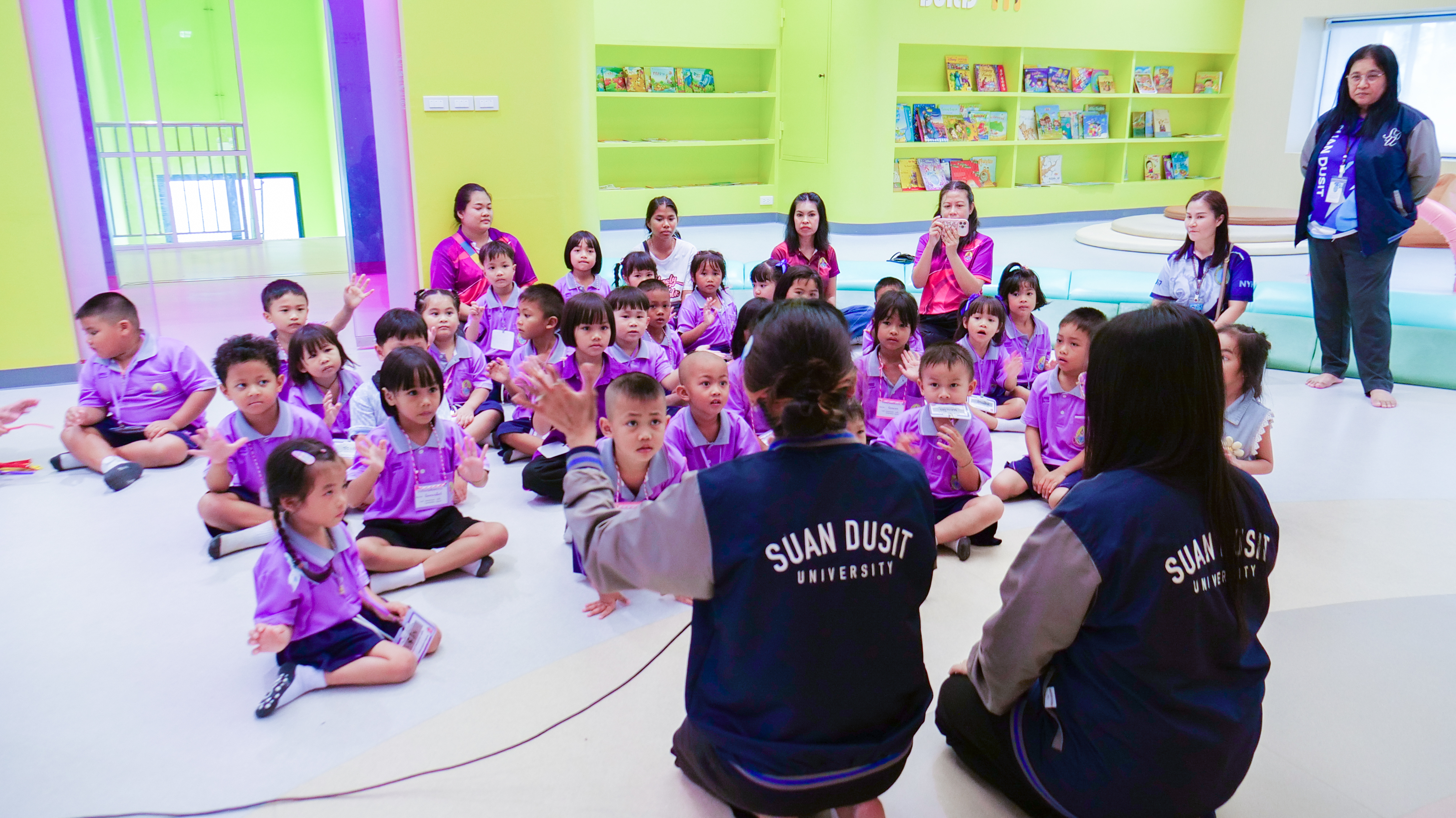 ในวันที่ 3 ตุลาคม 2568 เวลา 13.00 – 15.00 น. โรงเรียนวัดสันตยาราม อำเภอเมืองนครนายก จังหวัดนครนายก นำนักเรียนระดับชั้นอนุบาล 2 และระดับชั้นอนุบาล 3 คุณครูและพี่เลี้ยง จำนวน 34 คน เข้าศึกษาแลทำกิจกรรม ณ แหล่งเรียนรู้เพื่อยกระดับคุณภาพชีวิตของเด็กระดับประถมศึกษา มหาวิทยาลัยสวนดุสิต ศูนย์การศึกษา นครนายก (LONG KID DO) โดยมีทีมวิทยากรจากอาจารย์ประจำหลักสูตรศึกษาศาสตรบัณฑิต สาขาวิชาการศึกษาปฐมวัย และบุคลากรมหาวิทยาลัยสวนดุสิต ศูนย์การศึกษา นครนายก เป็นผู้จัดกิจกรรมให้แก่นักเรียน โดยมีวัตถุประสงค์ เพื่อพัฒนาและส่งเสริมพหุปัญญาทั้ง 8 ด้าน ให้เด็กปฐมวัยมีพัฒนาการการเรียนรู้ที่เหมาะสมตามวัย และเป็นการเปิดประสบการณ์การเรียนรู้นอกห้องเรียน ให้แก่นักเรียนระดับปฐมวัย