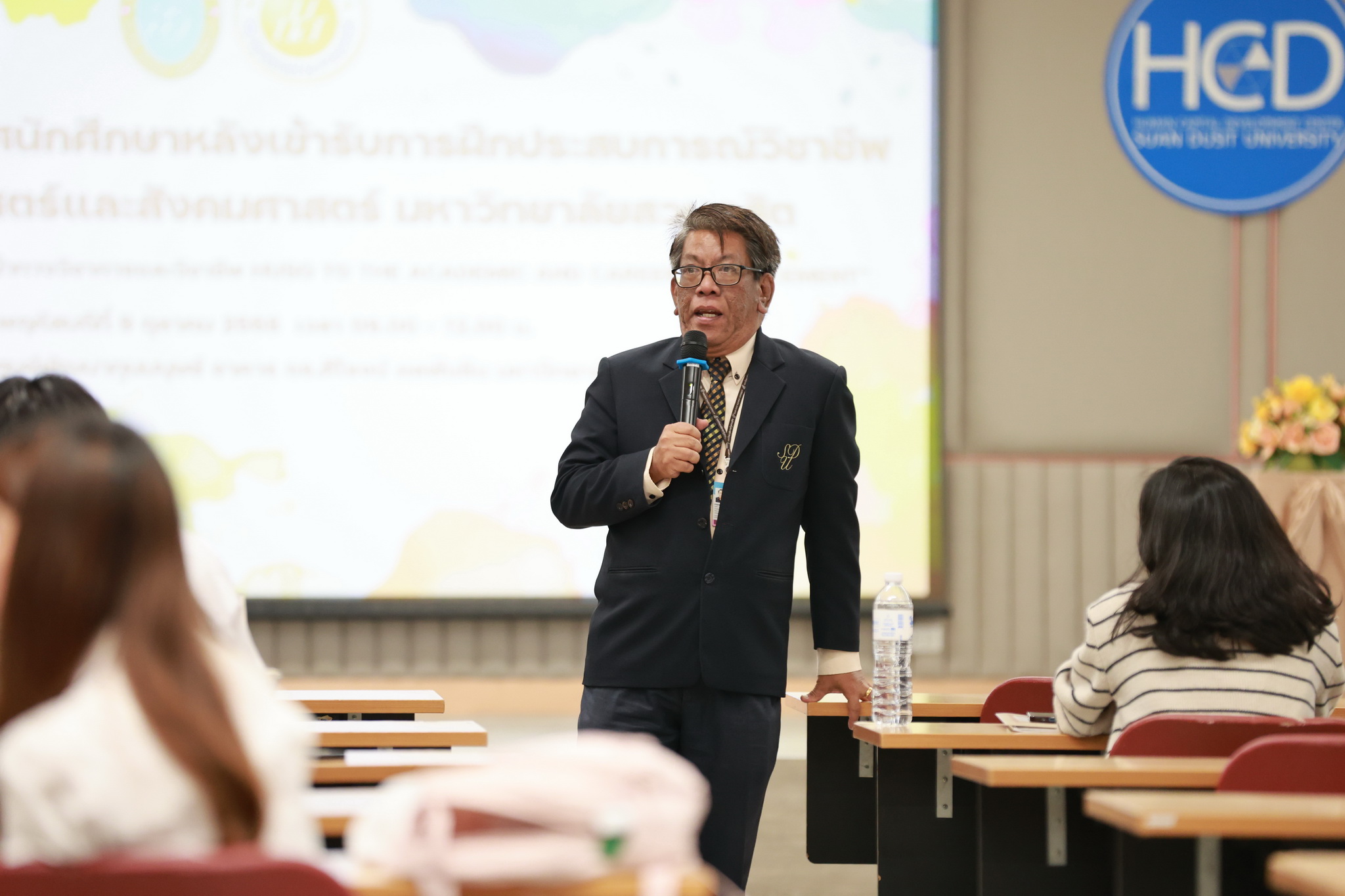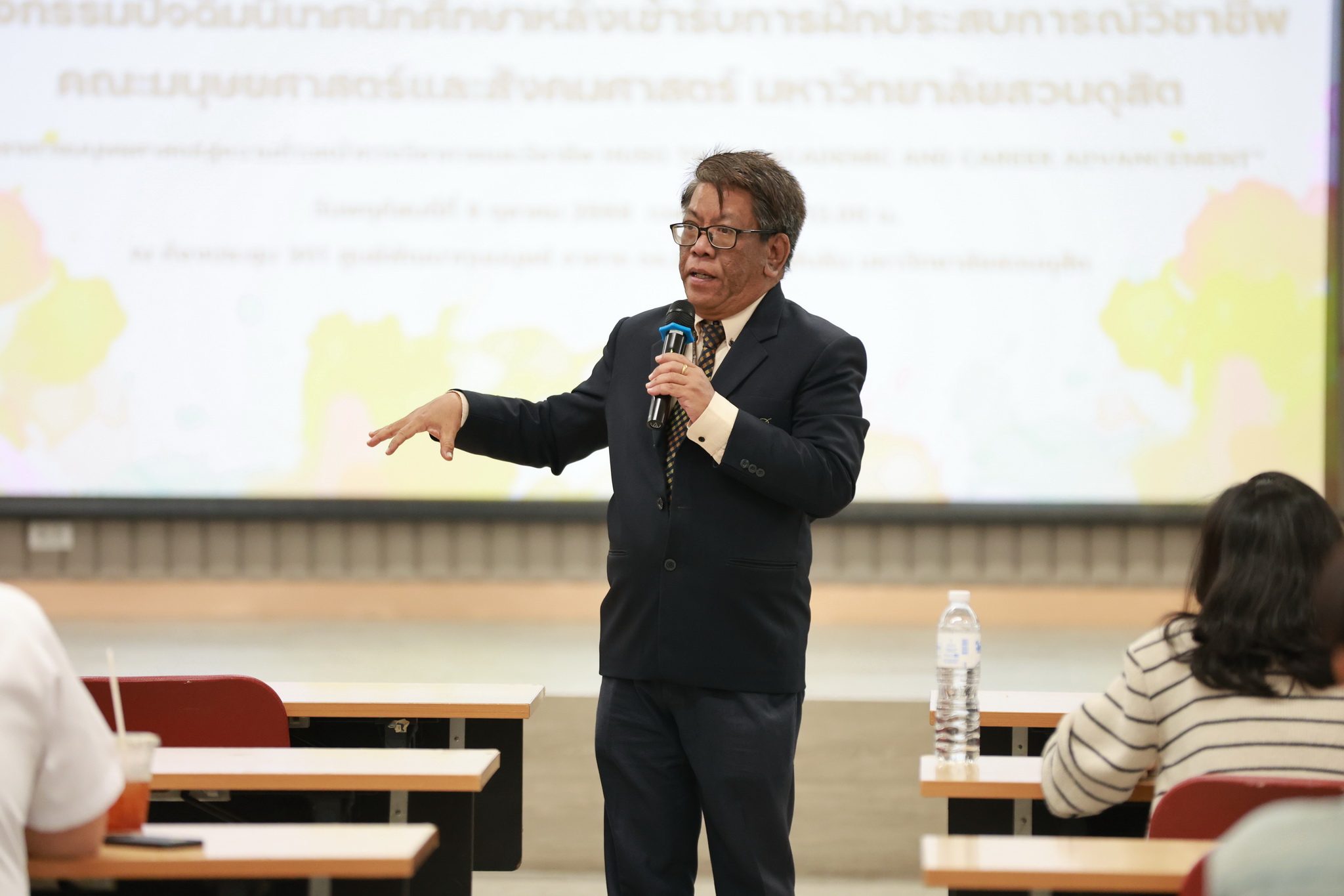 คณะมนุษยศาสตร์และสังคมศาสตร์ จัดกิจกรรมปัจฉิมนิเทศให้กับนักศึกษาชั้นปีที่ 4 ภายใต้โครงการมนุษยศาสตร์สู่ความก้าวหน้าทางวิชาการและวิชาชีพ HUSO to the Academic and Career Advancement โดย รองศาสตราจารย์ ดร.ยุทธพงษ์ ลีลากิจไพศาล คณบดีคณะมนุษยศาสตร์และสังคมศาสตร์ เป็นประธานในการกล่าวเปิดกิจกรรมในครั้งนี้ ได้รับเกียรติจาก คุณภูวดล ไชยสมบูรณ์ จากบริษัท JOBTOPGUN จำกัด เป็นวิทยากรบรรยาย และ คุณศุกมล เกษา คุณณิชา เตียวย่อง คุณธนพรรธน์ เอี่ยมสะอาด คุณพรชนัน วิมลภักดี เป็นผู้เข้าร่วมเสวนา ในวันพฤหัสบดีที่ 9 ตุลาคม 2568 ณ ห้องประชุม 301 ชั้น 3 อาคาร ดร.ศิโรจน์ ผลพันธิน ศูนย์พัฒนาทุนมนุษย์
