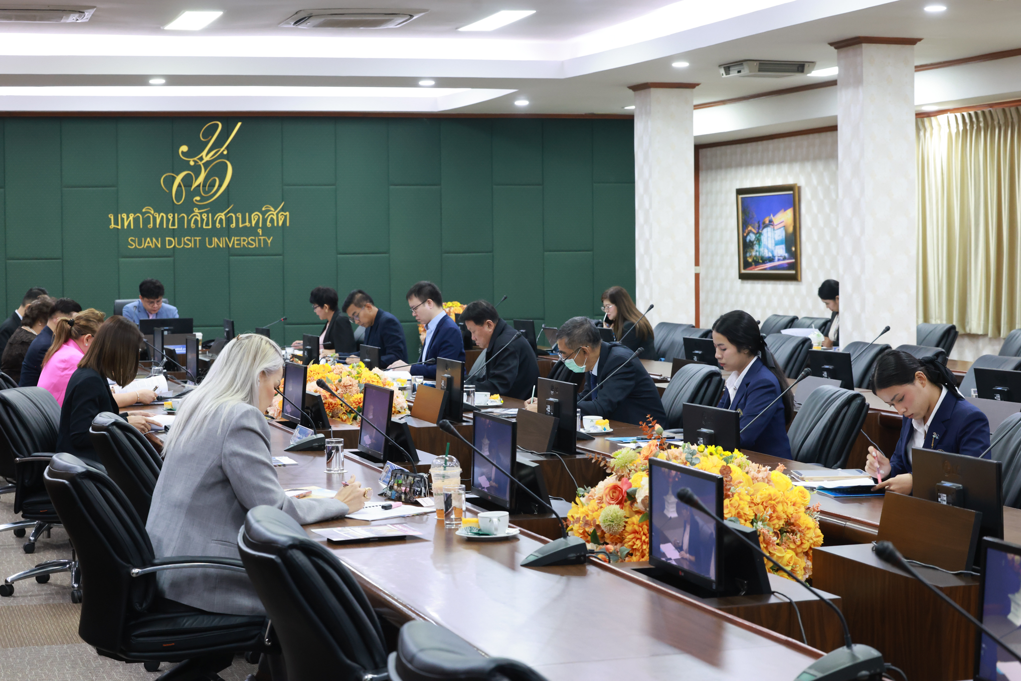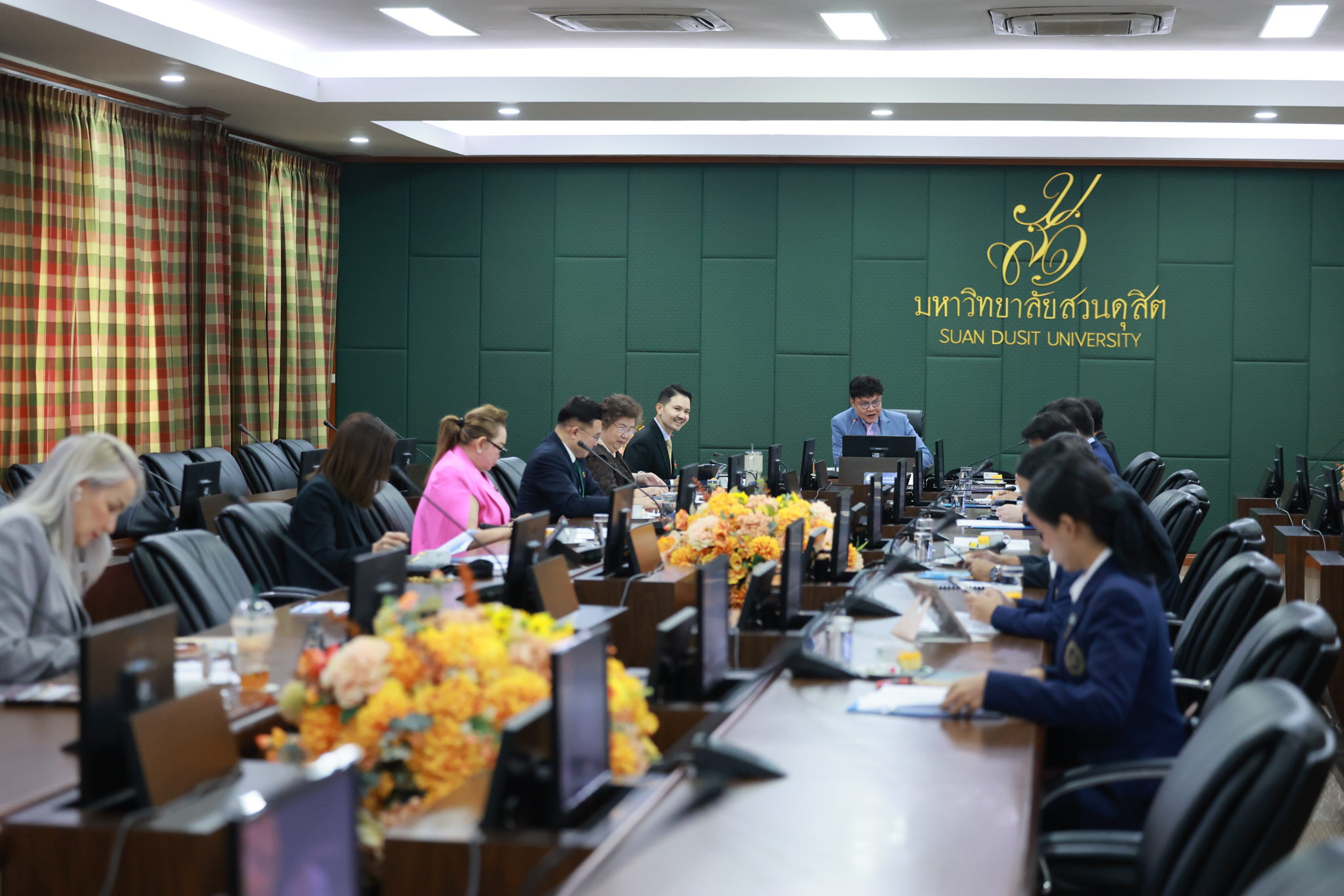นายกิตติศักดิ์ มาพะเนาว์ เป็นประธานการประชุมคณะกรรมการส่งเสริมกิจการมหาวิทยาลัยสวนดุสิต ครั้งที่ 2/2568 โดยมีเรื่องนำเสนอเพื่อพิจารณา การพิจารณากรอบการดำเนินงานของคณะกรรมการส่งเสริมกิจการมหาวิทยาลัย เรื่องสืบเนื่อง การสนันสนุนกิจกรรม SDU SMART IDOL 2025 และการสำรวจความคิดเห็นและความต้องการของนักศึกษาเกี่ยวกับการสนับสนุนและส่งเสริมกิจกรรมต่างๆ ฯลฯ เมื่อวันอังคารที่ 14 ตุลาคม 2568 ณ ห้องประชุมลำพอง 2 มหาวิทยาลัยสวนดุสิต