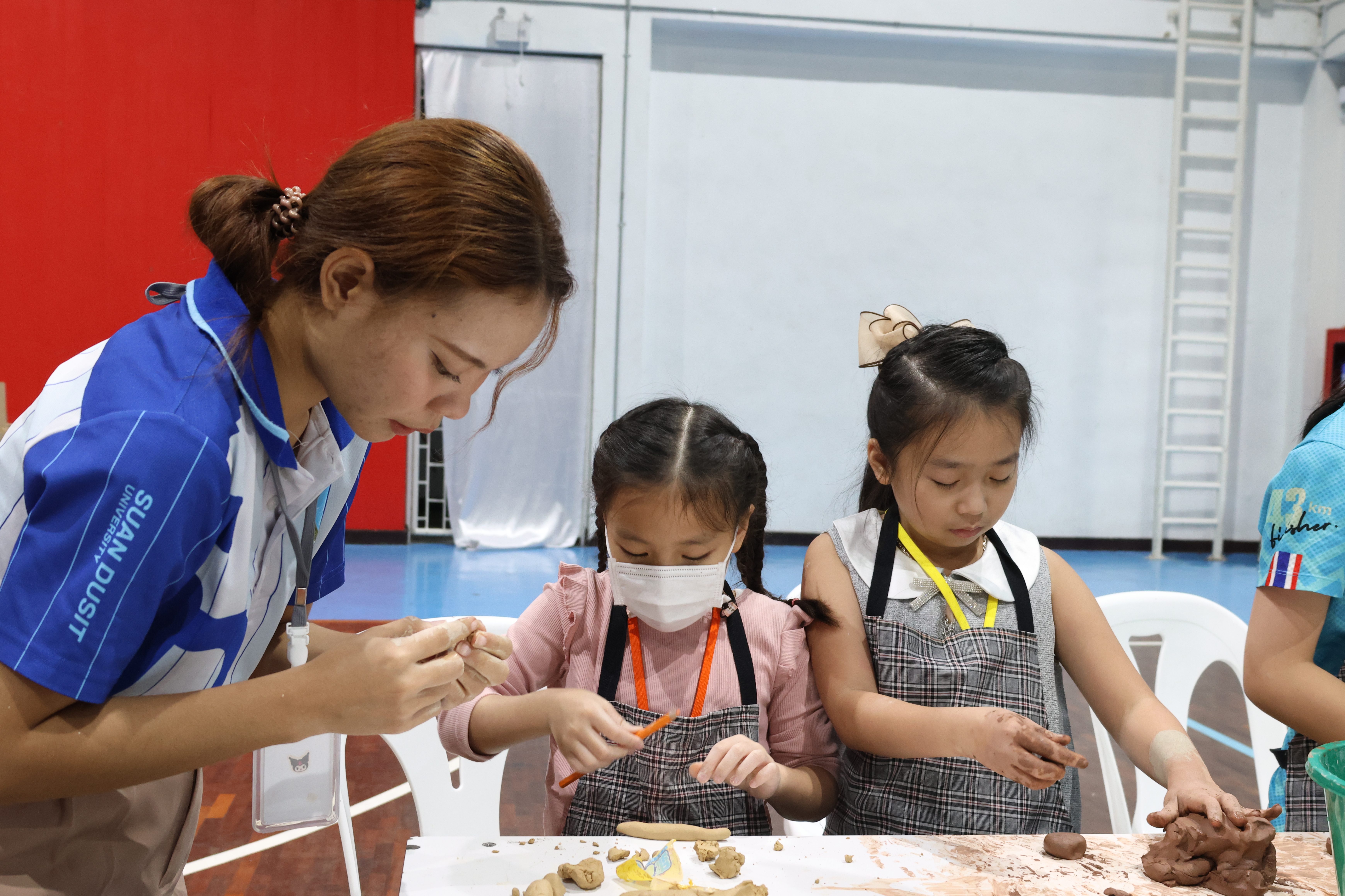 สำนักกิจการพิเศษ ร่วมกับ โครงการสอนดนตรีบุคคลภายนอก คณะมนุษยศาสตร์และสังคมศาสตร์ มหาวิทยาลัยสวนดุสิต จัดกิจกรรม “เสริมสร้างพัฒนาการสำหรับเด็กประถมศึกษา : Kids Creative Soft Power Festival @ SDU Smart Camp in October 2025” เพื่อสนับสนุนพัฒนาการด้านร่างกาย อารมณ์ สังคม และสติปัญญา สำหรับเด็กอายุ 5-10 ปี โดยนำองค์ความรู้ด้านวิทยาศาสตร์ เทคโนโลยี (IT) ภาษาอังกฤษ วัฒนธรรมจีน กีฬา พยาบาลศาสตร์ และวัฒนธรรมอาหาร มาบูรณาการร่วมกัน ซึ่งกิจกรรมจัดขึ้นระหว่างวันที่ 6-17 ตุลาคม 2568 ทั้งนี้ กิจกรรมวันที่ 7 (วันที่ 15 ตุลาคม 2568) ประกอบด้วย กิจกรรมศิลปะ (การทำโมบายไทย และงานปั้นดิน) โดยโครงการสอนดนตรีบุคคลภายนอก และกิจกรรม Cooking Class (ขนมโค) โดยศูนย์ฝึกปฏิบัติการอาหารนานาชาติ ณ ห้องลิขิต 1 โรงแรมสวนดุสิต เพลส ห้องเดมอน ศูนย์ฝึกปฏิบัติการอาหารนานาชาติ อาคาร 12 ชั้น 6 และอาคารพลศึกษา (โรงยิม) ชั้น 2