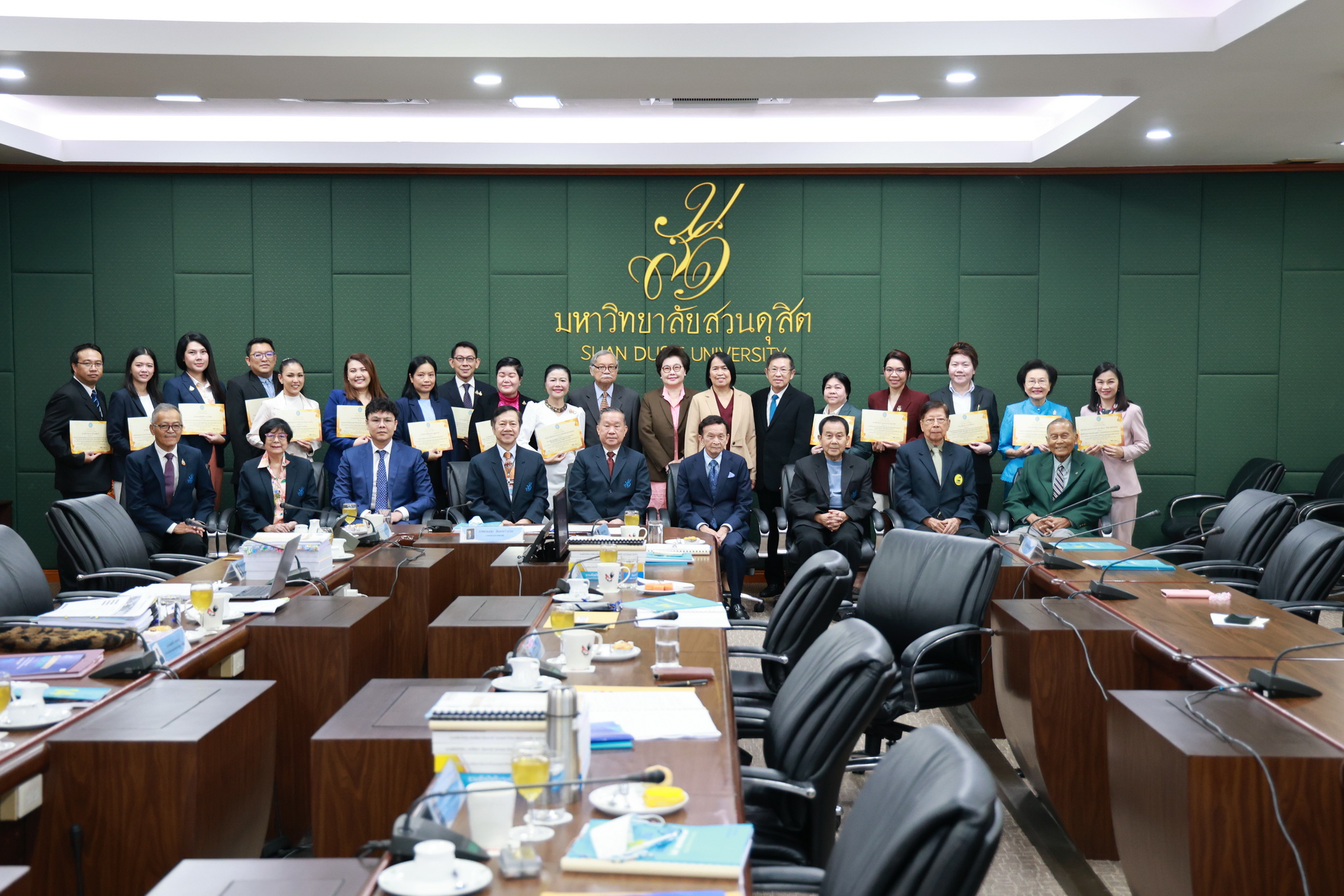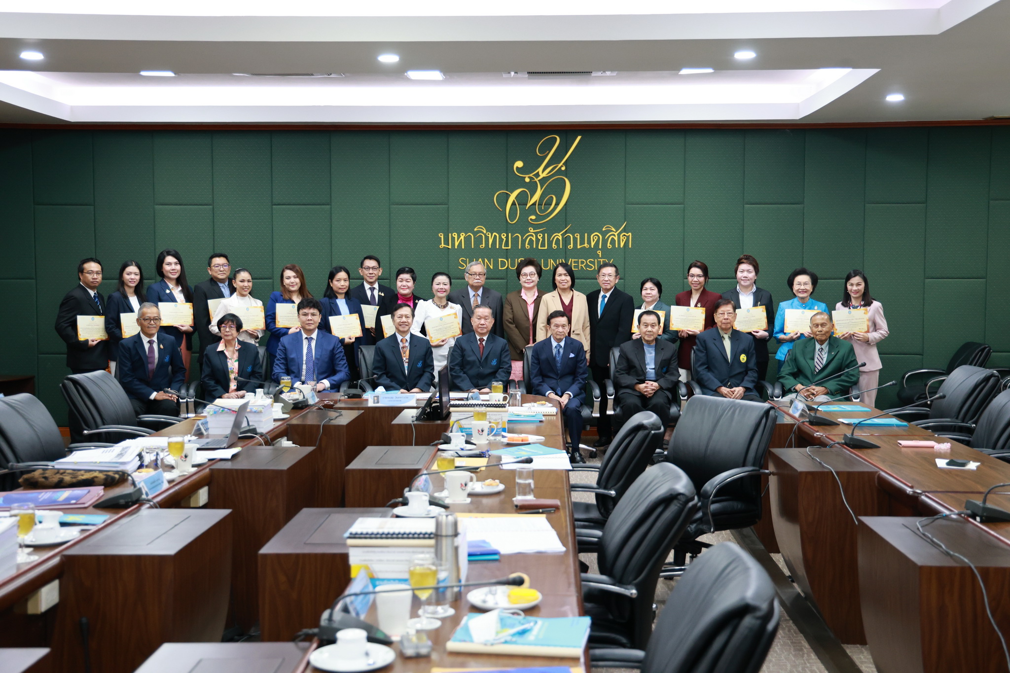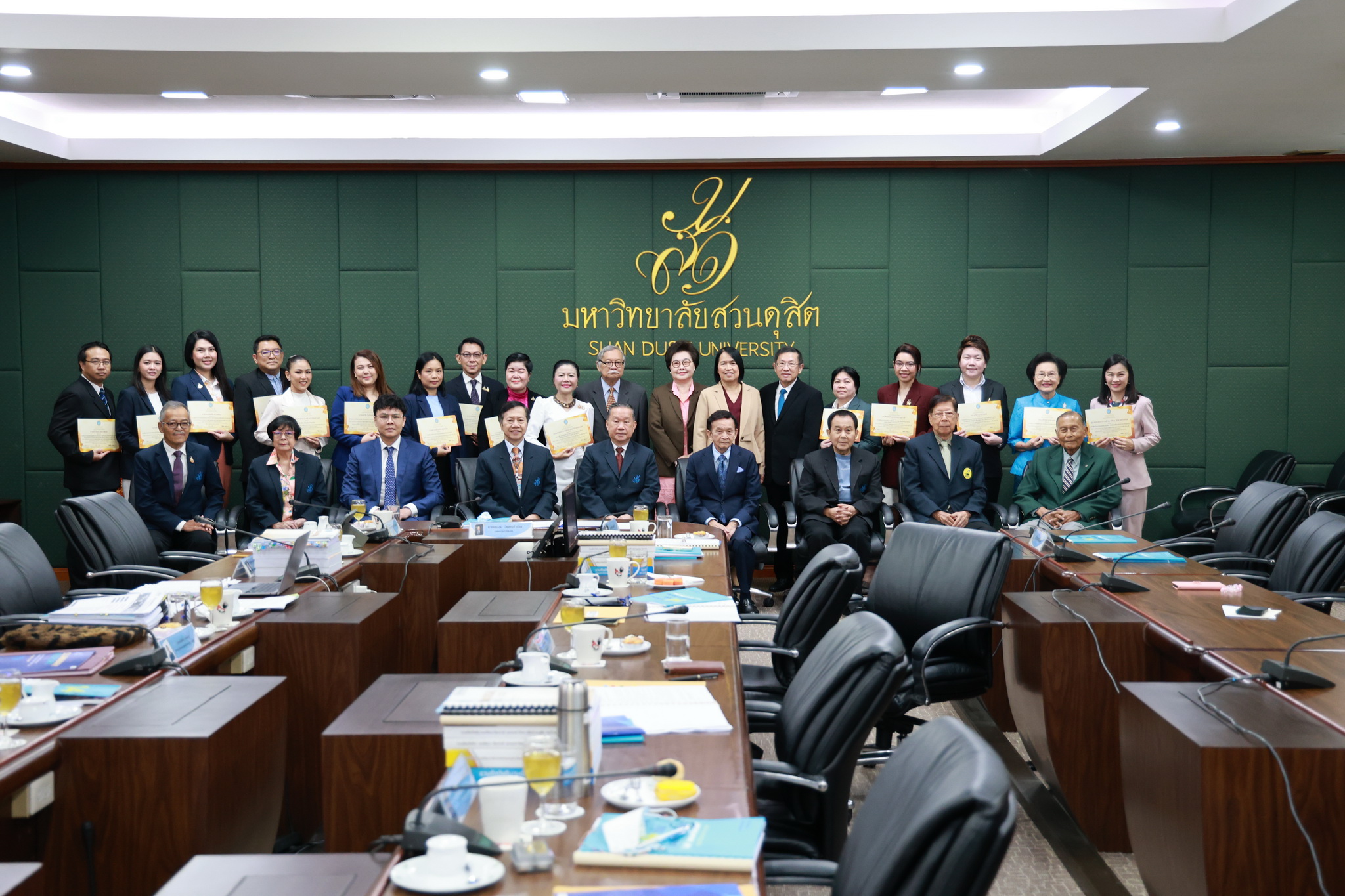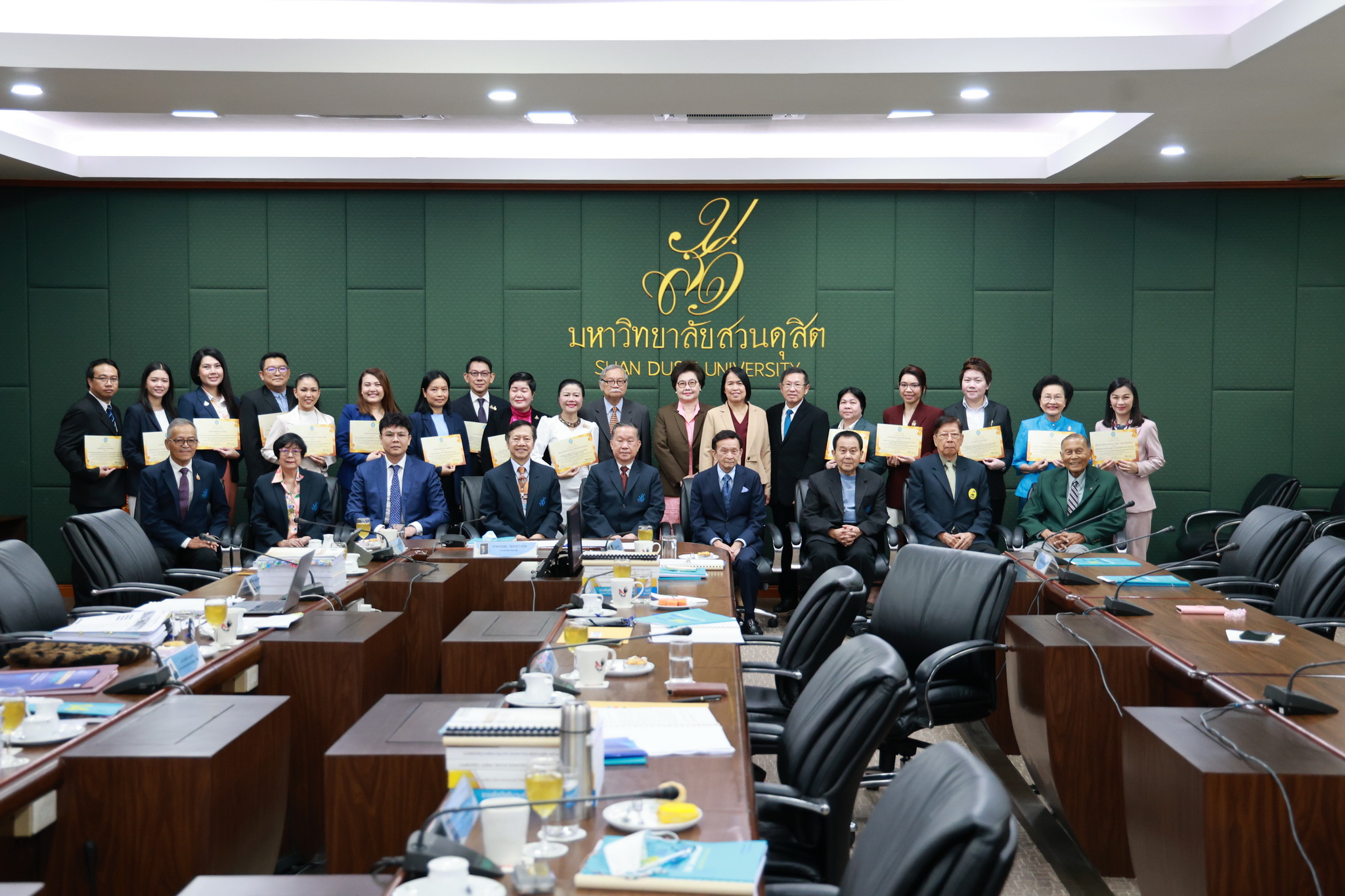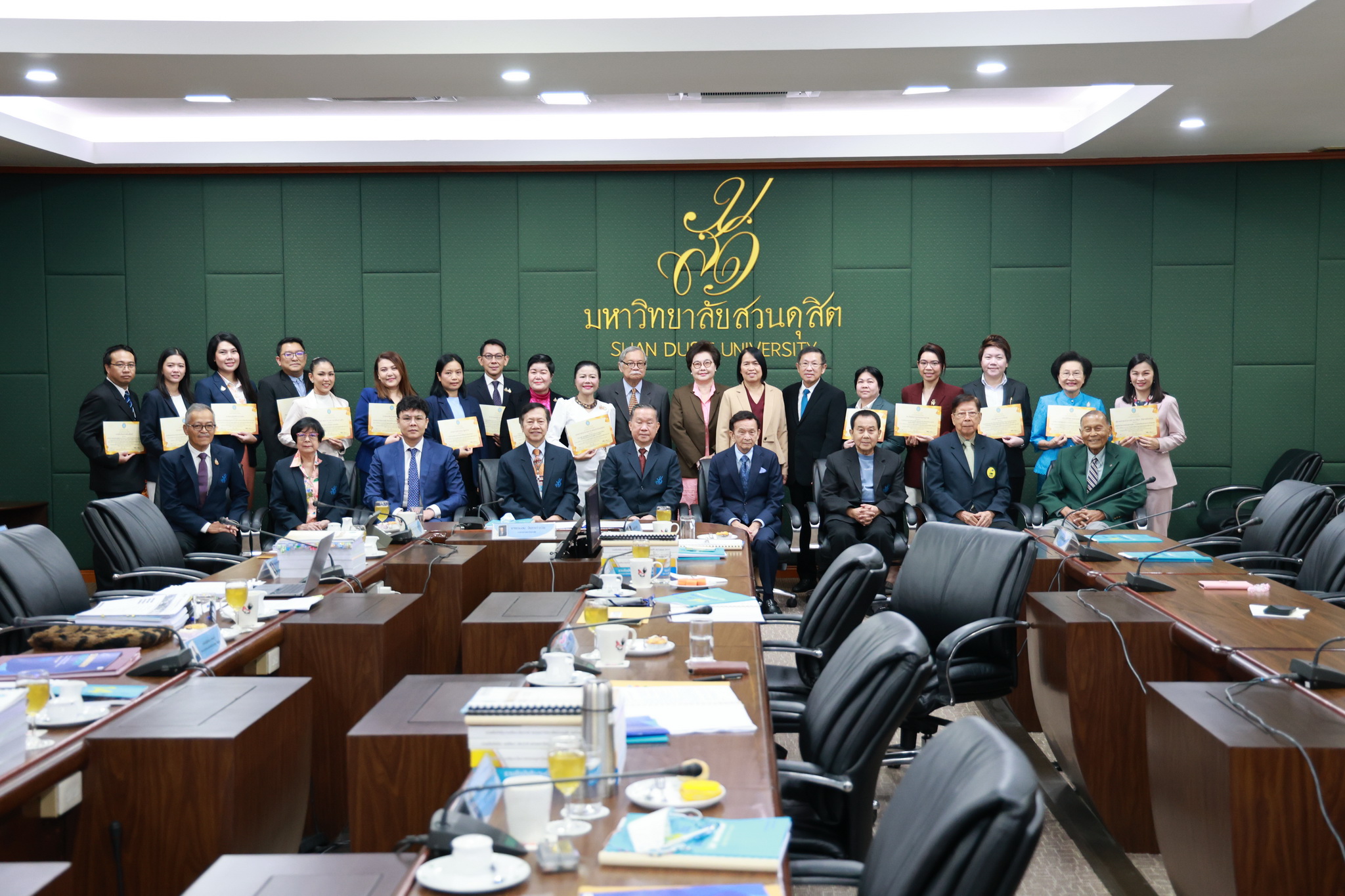 โดยการประชุมสภามหาวิทยาลัยในครั้งนี้ได้จัดให้มีพิธีมอบใบประกาศและเงินรางวัลสำหรับอาจารย์และบุคลากร จำนวน 14 บทความที่ร่วมส่งผลงานดีเด่นจากโครงการคัดเลือกผลงานดีเด่น 236 ผลงานคนสวนดุสิต ในรอบ 1 ปี โดยได้รับเกียรติจาก ดร.ถนอม อินทรกำเนิด มอบใบประกาศและเงินรางวัล โดยอาจารย์และบุคลากรที่ได้รับรางวัล ดังนี้