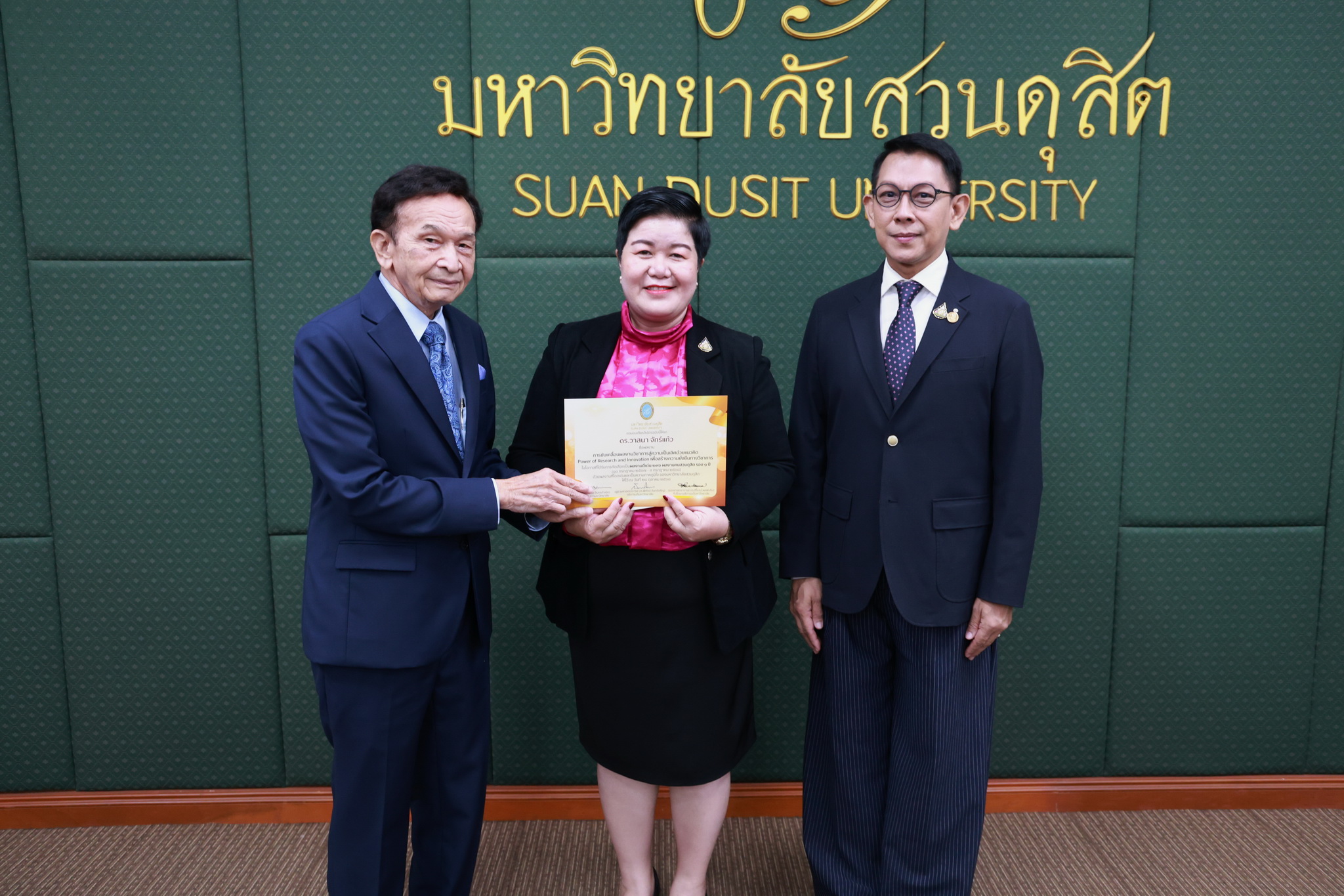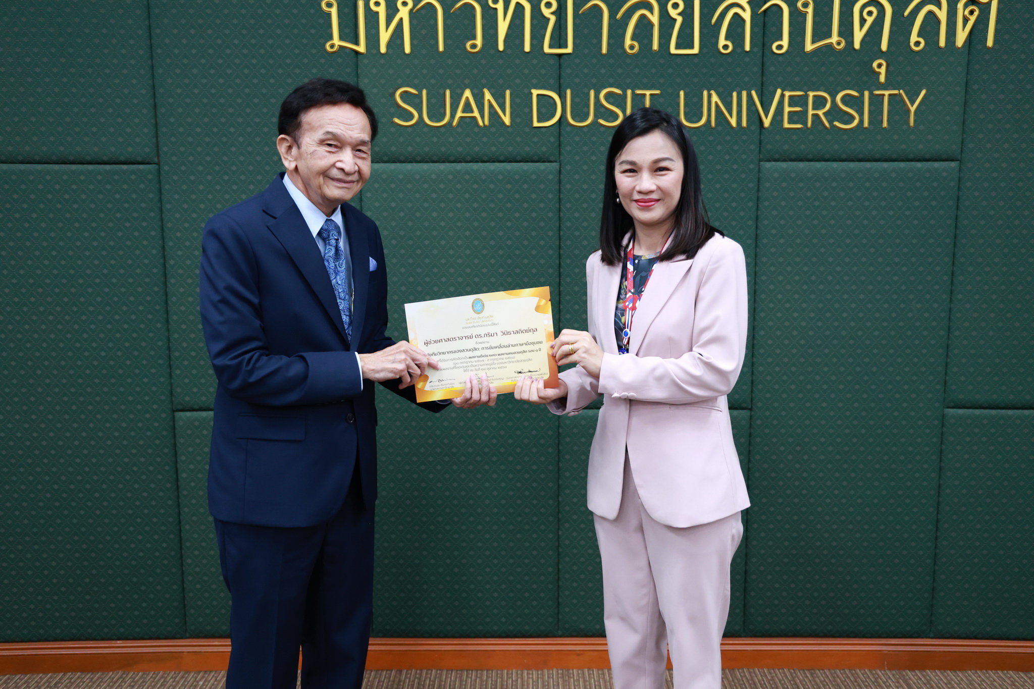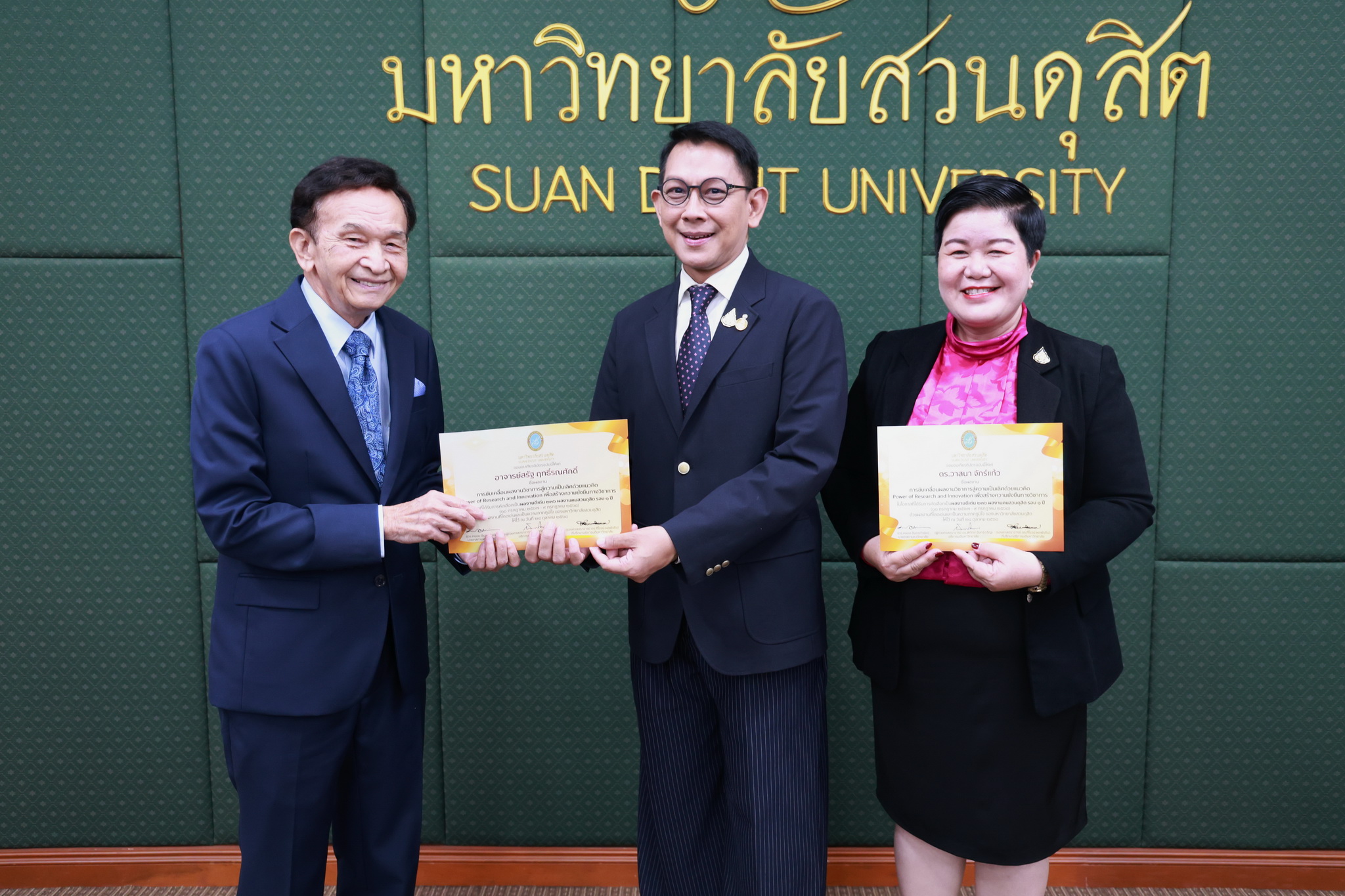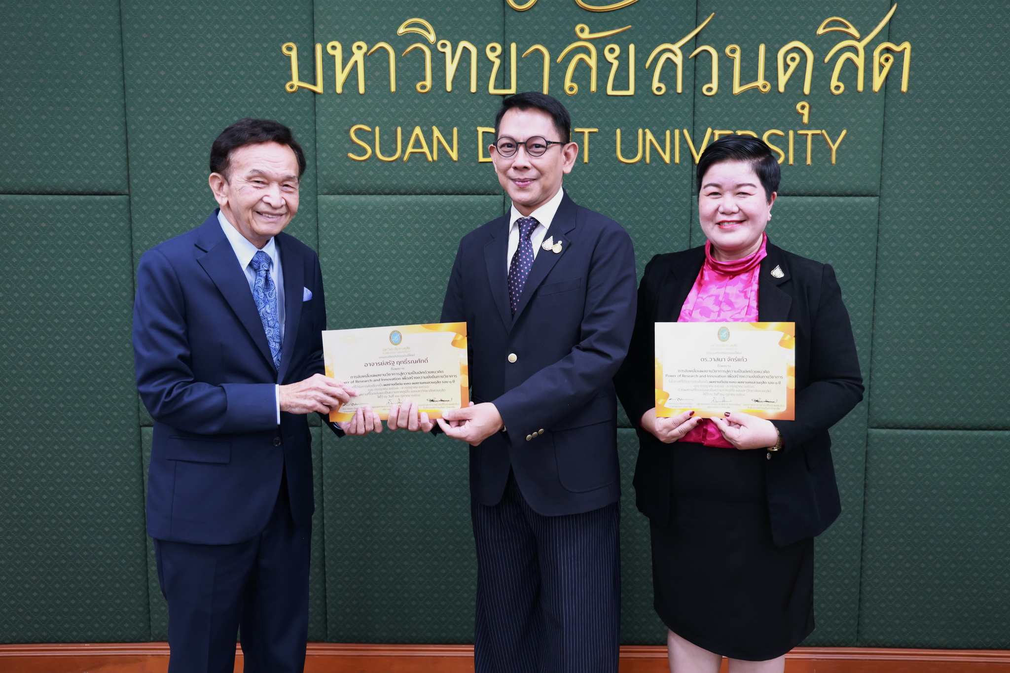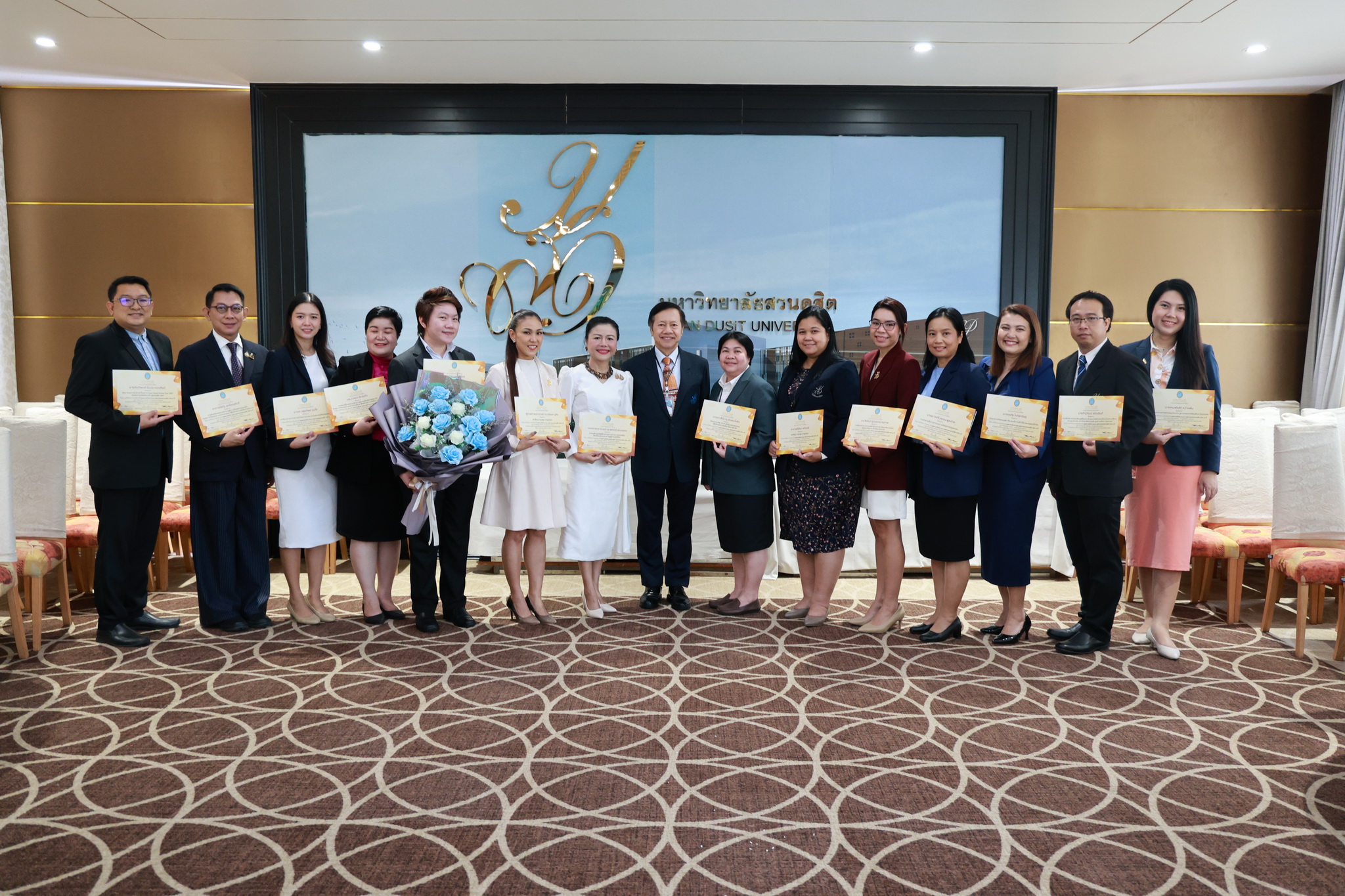 โดยการประชุมสภามหาวิทยาลัยในครั้งนี้ได้จัดให้มีพิธีมอบใบประกาศและเงินรางวัลสำหรับอาจารย์และบุคลากร จำนวน 14 บทความที่ร่วมส่งผลงานดีเด่นจากโครงการคัดเลือกผลงานดีเด่น 236 ผลงานคนสวนดุสิต ในรอบ 1 ปี โดยได้รับเกียรติจาก ดร.ถนอม อินทรกำเนิด มอบใบประกาศและเงินรางวัล โดยอาจารย์และบุคลากรที่ได้รับรางวัล ดังนี้