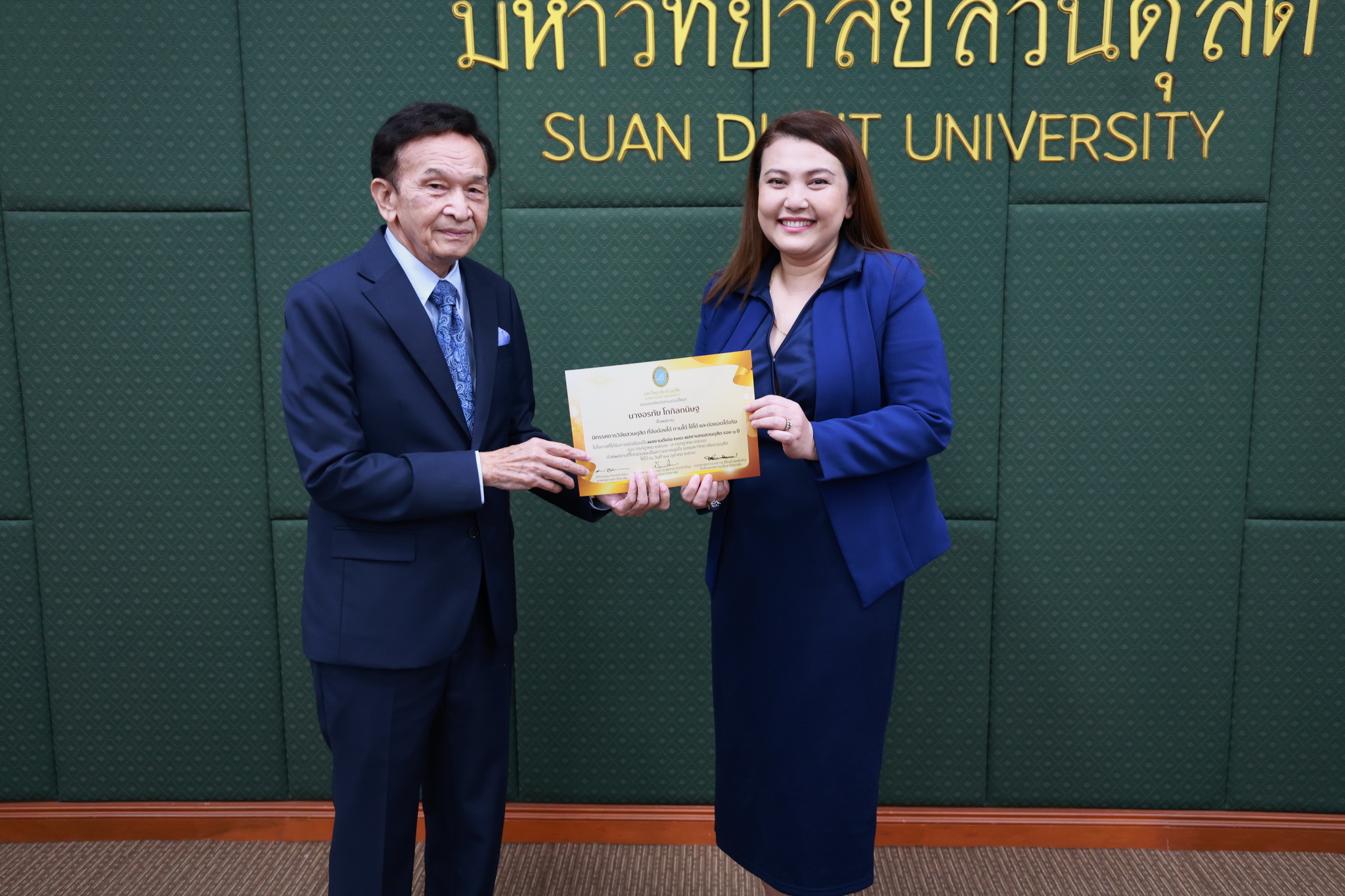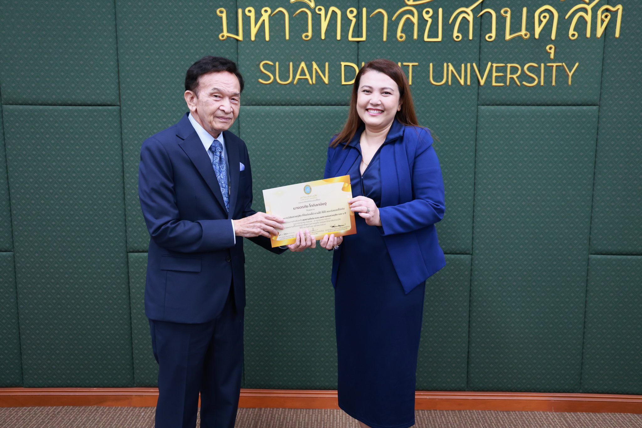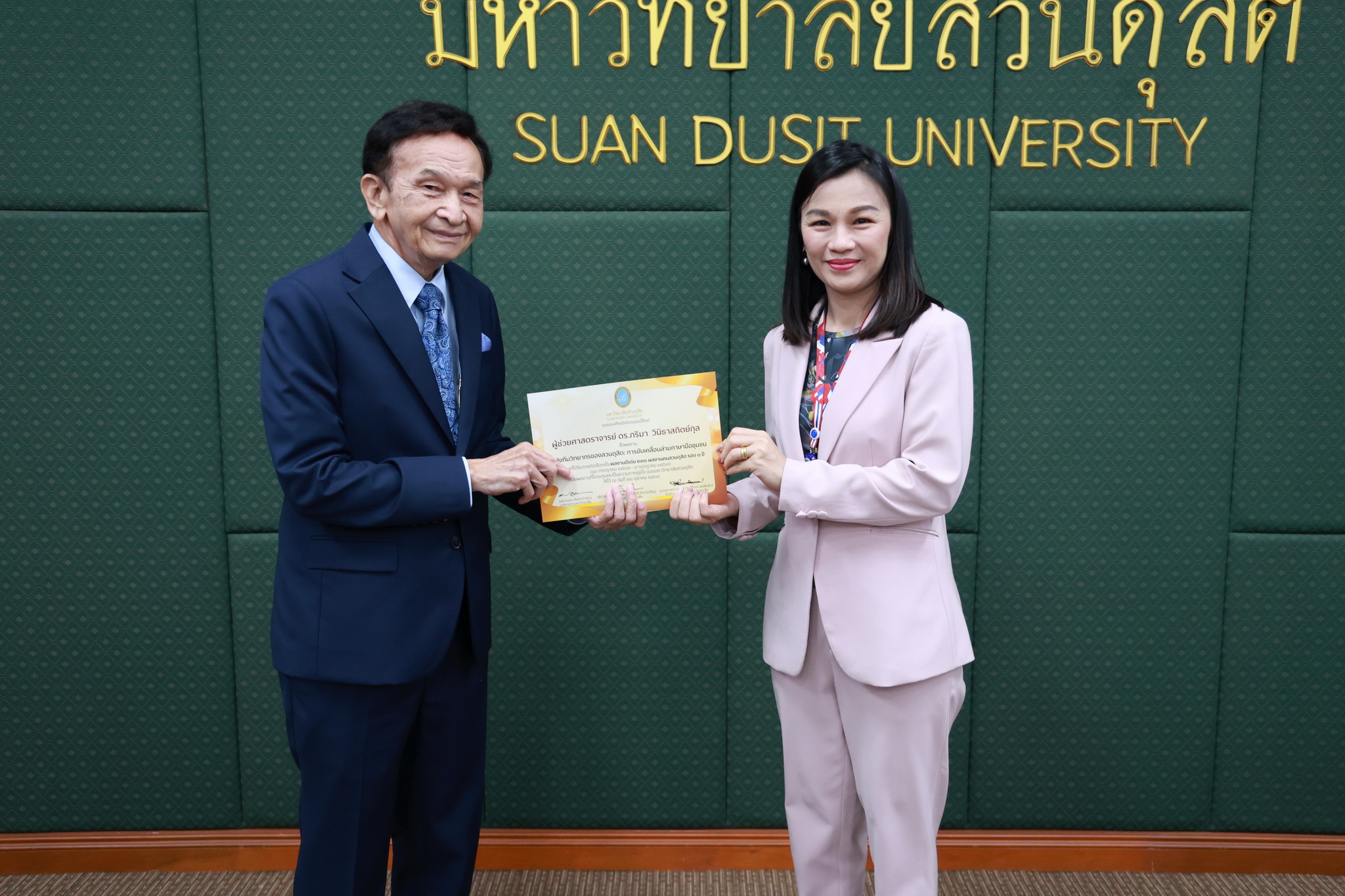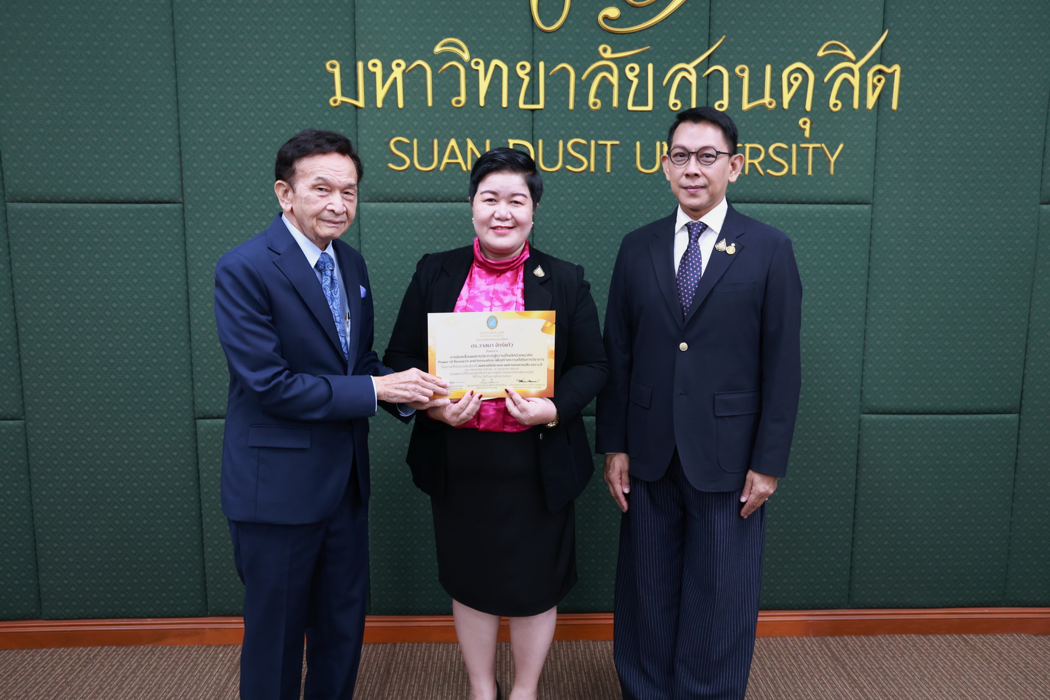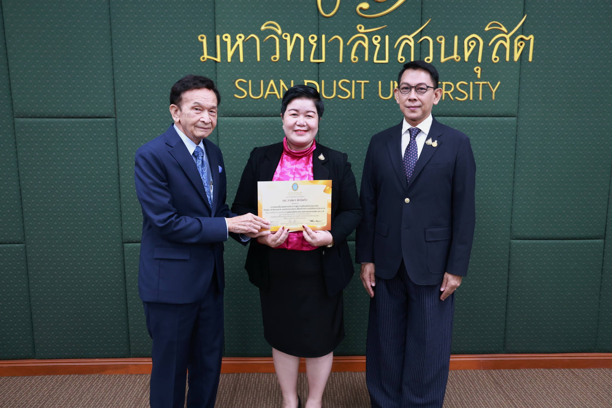 โดยการประชุมสภามหาวิทยาลัยในครั้งนี้ได้จัดให้มีพิธีมอบใบประกาศและเงินรางวัลสำหรับอาจารย์และบุคลากร จำนวน 14 บทความที่ร่วมส่งผลงานดีเด่นจากโครงการคัดเลือกผลงานดีเด่น 236 ผลงานคนสวนดุสิต ในรอบ 1 ปี โดยได้รับเกียรติจาก ดร.ถนอม อินทรกำเนิด มอบใบประกาศและเงินรางวัล โดยอาจารย์และบุคลากรที่ได้รับรางวัล ดังนี้